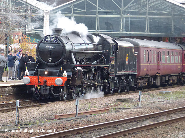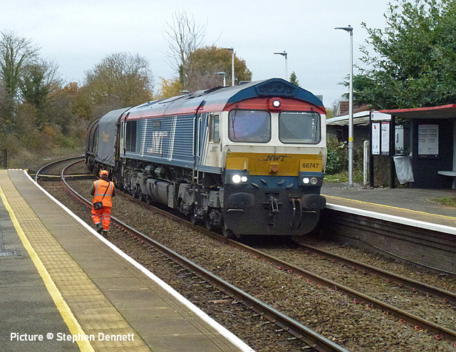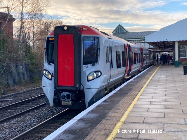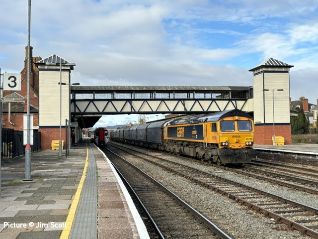 ![]() Amid an array of gantries and signals, 197 017 arriving at Manchester Piccadilly on Thursday 30 November on the the 14:25 Manchester Airport to Llandudno. Picture by Chris Taylor. News pictures![]() Friday 1 December saw a light loco move from Clitheroe cement to Penyffordd cement, 66 722 Sir Edward Watkin seen at Balderton crossing (Bob Greenhalgh). ![]() The stone trains from Penmaenmawr to Longport have resumed: on 29 November 70 017 passes Beeches Farm (Bob Greenhalgh), ![]() The other type of Rail Head Treatment Train, the Mon-Fri run from Chester to Wrexham and back, seen here at Green Lane crossing on 29 November, DR93951 leading (Bob Greenhalgh). ![]() On 30 November the New Measurement Train with 43 277 leading (43 013 on the rear) enters Llandudno Jcn, with the 1Q30 10:55 Derby to Holyhead run (Garry Stroud). ![]() 67 014 departing on the 14:30 Manchester Piccadilly to Cardiff on 30 November: departed 2 minutes late having arrived from Cardiff 10 minutes late. Picture by Chris Taylor, who comments: 'I fail to see how Cardiff and the Welsh Government manage to screw-up such a service other than it is mostly in England - is this deliberate? On 30 November the 12:30 Piccadilly to Cardiff was a single 2-car 197 (instead of a 67), and the 13:30 was the same: both trains left Piccadilly with passengers standing. On the previous day the 12:30 from Piccadilly was three 153s. Is it not about time the ORR and the UK government took Transport for Wales to Task?' On the Dee Marsh Steel - by Driver Jim Scott![]() On Monday 20 November 66 792 Collaboration on the Dee Marsh steel train in the arrivals siding at Shotton steelworks. ![]() Waiting for the signal at Hawarden Bridge. ![]() Hereford with a 197 heading north. ![]() Tuesday saw a loco swap for ‘celeb’ 66 747 in NWT livery named Made In Sheffield, again in the arrivals siding. ![]() Waiting at Hawarden Bridge again, plenty of time to get a photo from the other platform. ![]() Waiting in Shrewsbury. ![]() Thursday morning in Hereford, Chirk to Baglan Bay logs waiting to head south. ![]() Steelworks ‘internal shunter’ 08 823 Gavlar coming to pick up the inbound wagons from the exchange sidings to take them into the works. A visit to Cardiff - by Graham Breakwell![]() Firstly, two from the roof garden of the Jacobs building with its panoramic view over the station and the complex of overhead wires. New FLIRT 231 003 is departing on a Penarth to Ystrad Mynach service... ![]() ... Followed by 153 362 on a Radyr to Coryton trip with 150 255 entering the station with an Aberdare to Barry Island service. ![]() Old and new, 150 217 in platform 7 and alongside in platform 8 FLIRT 231 003 on a Rhymney to Penarth run. TfW are building up their fleet of Stadler FLIRT Class 231s (Fast, Light, Intercity and Regional Train), with the 11 four-car trains now all in service, with another 24 class 756 tri-mode units to follow. I was very impressed with the quality of the ride, comfort, spaciousness, rapid acceleration and step-free access with the platform. ![]() The power pack of four diesel engines are housed in a short centre vehicle, two on each side of the narrow corridor running through the middle. ![]() The articulated bogies at each end connect with the adjacent passenger coaches with the end seats mounted on a raised platform to provide clearance for the wheelsets. Santa special![]() Bob Greenhalgh writes: On Saturday I ventured out to see the 14:00 Llangollen departure Santa train, seen above an Berwyn with D5310 topping and pannier tank 7754 tailing but pushing hard. Next weekend it's the Bala Santa trains, all fully booked: as the website says, cannot wait! Borderlands newsFrom the start of the new timetable, from 11 December, the Wrexham - Bidston trains will run on a 45-minute frequency, operated with two Class 197 units and one Class 230. Later, it is hoped that there will be two 230s and one 197. The trouble with such a system is that passengers will have to consult the timetable for every journey unless they have a very good memory for numbers. Looking at Real Time Trains, the number of train departures each day in the new timetable appears be the same, and turnround at each end is still four minutes but the trains should be able to run to time. Out and About - with Stephen Dennett![]() A selection of my photos from the last fortnight. More variety of engines on the “steel” these days, as seen on 22 November at Buckley with 66 747 ,,, ![]() ....and 28th at Buckley and Penyffordd. ![]() Royal Scot Class 46 115 Scots Guardsman charges through Helsby station on 24 November with empty stock from Carnforth to Chester ready to form "The Capital Christmas Express" from Chester to London on the following day. ![]() Scots Guardsman rests at Chester having arrived from Carnforth to Chester with ecs, ready to form "The Capital Christmas Express" from Chester to London on the following day. ![]() 70 817 at Chester with 6M33, Penmaenmawr Quarry to Longport LR. Taken at Chester, also on 24 November... ![]() ...and very grimy 56 051 and 56 113 leave Chester with the daily RHTT circuit from Coleham. ![]() Black 5, 44871, stalwart of the 'Jacobite' at Chester ready to return with "The Christmas Cheshireman" to Bristol on 25 November. ![]() 777 011 arrives at Capenhurst with a service from Liverpool Central to Chester. Taken at Capenhurst on 25 November. The new 777s are now well established on the Chester circuit from Liverpool. ![]() 67 005 Queen's Messenger passes Beeches Farm together with 67 020 running as 0M57 Holyhead to Crewe depot. 28 November. ![]() On 28 November 43 277 leads the New Measurement train through Flint station running as 1Q30 Derby RTC (Network Rail) to Derby RTC (Network Rail). ![]() 197 043, 1 197 new to me, leaves Flint with 1H88, the Llandudno Junction to Manchester Airport service on 30 November. A Day Rover - report by Paul Hajdasz![]() I decided to go on a North Wales day rover on 30 November as it was sunn