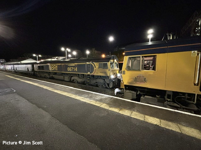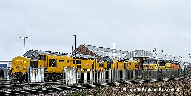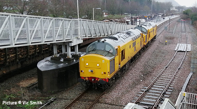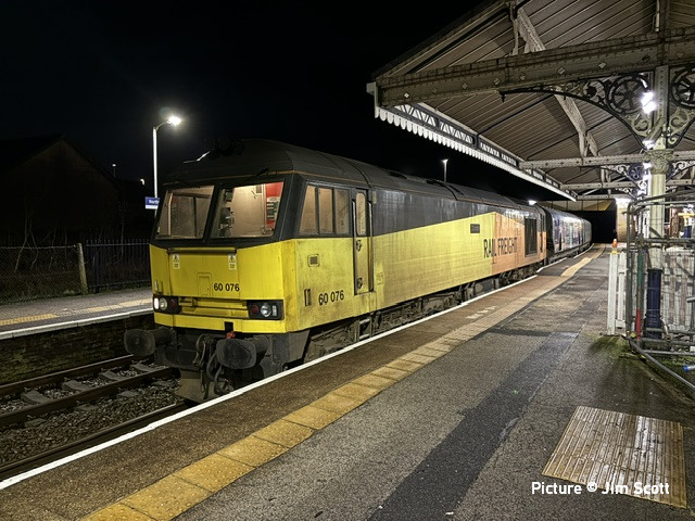 ![]() A splendid picture by Tim Rogers of 37 415 passing Sandycroft on 8 January 2000. Those were the days ... News pictures![]() 97 304 waiting in the shunt neck at Sutton Bridge Junction before delivering a Colas Rail tamper to Talerddig on 4 January. Note the absence of the John Tiley nameplate (Graham Breakwell). ![]() Another of the new Avanti class 805, 805 006, made an appearance in the last week Thursday and Friday. There were three runs from Chester planned: two to Rhyl and back and one to Llandudno Junction. In the end the third run to Llandudno Junction stopped short at Rhyl. Here are two photos from the 4 January, with the first run returning to Chester at Talacre (above) ... ![]() ... followed by the second run returning to Chester at Gronant (Gary Thomas).. ![]() Rhyl (Ivor Bufton). There will be 13 of these Hiatchi bi-modes to work London - Chester - Holyhead and London - Shrewsbury services. Presumably the daily London - Wrexham, worked by a unit detached at Chester from a London - Holyhead service, recently started after a period of bus substitution, will also continue. ![]() At Hereford this lunchtime, 8 January a rather dirty 66 766 Gail Robertson heads 6V75 09:31 Dee Marsh to Margam waiting to follow the 08:06 Holyhead to Cardiff operated by 197 017 (John Oates). ![]() 7812 Erlestoke Manor oozing steam at Hampton Loade at the Severn Valley steam gala, 6 January 2024 (Dave Sallery). [This Cambrian stalwart was the first and only 'Manor' I saw in British Rail service.- Charlie] News from the Forums: 197 104 suffered an underfloor 'thermal incident' at Manchester Piccadilly on 5 December, the fire promptly extinguished by the under-carriage fire-suppression bottle. Apparently there is also an issue possibly with all 197s, connected with the bogies, and all sets have to be checked. On a brighter note, 197 115 - the first to appear of the batch (113 - 126) with a first-class section has been noted in traffic. Seen at Chester (1) - by Geoff Morris![]() On Monday 8 January I noticed on Real Time Trains an STP (Short Term Plan) from Birkenhead North TMD to Crewe TMD timed for a class 230. These units have been notable by their absence from Chester since they were based at Birkenhead North and so I thought it worth a look, particularly as they were scheduled to run through to Crewe. ![]() 30 minutes early running from Wrexham meant that I had barely got to the Northgate Arena car park when 230 008 and 230 009 passed through but, fortunately for me, they were then held in Chester station to await their booked path to Crewe. ![]() This allowed me time to get to the station and take a variety of photos of them together with Voyagers 221 111 and 221107 on the 15:32 Chester - London. ![]() ... and Northern 195 114 on the 15:28 to Leeds. Seen at Chester (2) - by George Jones![]() Thursday 4 January I arrived at Chester 14:30 from Lime St via Runcorn to find 197 120 in the avoiding lines and noted the 'Made in Wales' bilingual message as a TfW promotional opportunity. (Depends what you mean by made as produced by CAF). ![]() It was in January 2023 that a ceremonial launch (one of several?) was held at Llandudno Junction with the first 197, Although one entered traffic on the Conwy Valley earlier. ![]() Also present DR73015 a Plasser & Theurer Unimat 09-4x4/4S Dynamic Tamper indicating a big job due somewhere soon? [A dynamic tamper differs from a conventional machine in that the conventional machine needs to stop and start as it “tamps” the ballast. This machine, however maintains constant movement. The tamping banks are in effect separate from the machine (Satellite system) itself making it more efficient and able to carry out tamping while the machine is still moving. Read more,] Interesting too: 777 002 was out of service in platform 7a awaiting recovery by the 14:57 departure back to Merseyside; seemingly the problematical battery option to Headbolt Lane is not the only issue with these new units,A A comment from elsewhere suggests TfW will have to issue a statement on the future of the 230s which remain unreliable on the Bidston line where the newly allocated 197s show them up for reliability ... and the disappearance of 150s will eventually mean North Wales is a 197-only zone to add to the boredom! More Log Manoeuvres![]() Vic Smith captured these scenes at Welshpool on 30 January. ![]() Locos 97 304 and 97 303 ![]() The two locos moved to the siding. ![]() Bach home at Coleham, 2 January (Graham Breakwell). Shropshire Sightings - by Richard Putley![]() The weekend of Saturday 6 January I had been toying with going to either the Severn Valley or the Swanage Railway, as both these lines had Galas on. But I have visited both recently. In the case of the Severn Valley, less than a fortnight ago: Wednesday 27 December to be precise. > That day I was lucky enough to see visiting ex US Army 2-8-0 2253 Omaha running and get hauled by it (above). ![]() It was only on the evening of Friday 5 January that I found out that there was a Statesman Charter train running from Hereford to Appleby-in-Westmorland on Saturday 6 January. So I got up very early and drove to Craven Arms to photograph it. I arrived there in good time and was > able to see the 05:30 Swansea to Manchester Piccadilly, formed by 150 231 call just as a 67 + Mk4 sped south on the 06:27 Manchester Piccadilly to Cardiff service. ![]() The Statesman arrived about 08:45 and was hauled by 47 810 Crewe Diesel Depot ... ![]() ... with 47 593 Galloway Princess on the rear. ![]() Afterwards I saw 150 264 arrive with the delayed 05:49 Swansea - Shrewsbury via the Heart of Wales service while 153 353 took the Heart of Wales line with the 08:56 Shrewsbury to Swansea service. ![]() Later in the morning, GB Railfreight 66 779 Evening Star hauled the Dee Marsh - Margam Steel empties. This was an added bonus which rounded up the morning nicely. Biomass at Christmas - report by Driver Jim Scott![]() I drove the diverted Biomass trains f