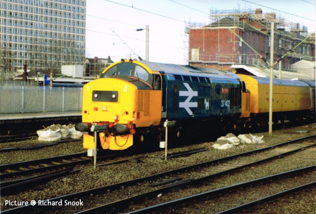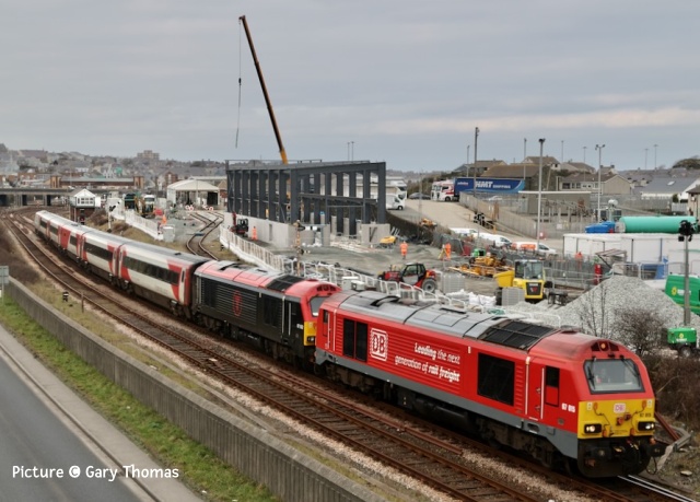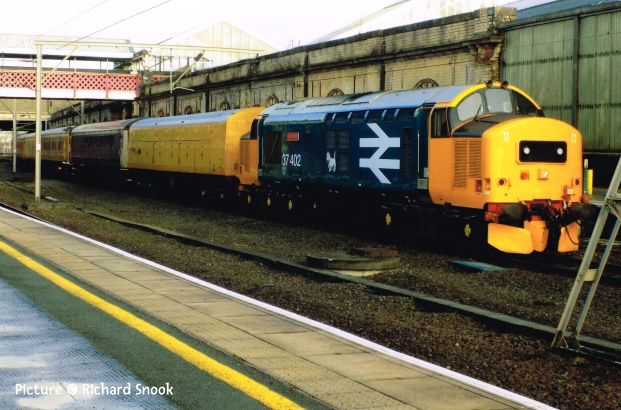 ![]() 37 402 is back in service, restored with its original name Oor Willie. Seen at Crewe on a 3Q45 Derby RTC to Derby RTC Ultrasonic test unit at Crewe on 5 February. Picture by Richard Snook. News Pictures![]() Another view of 37 402 and its 'Scottie Dog' .As usual with these restorations, the Double Arrow is very slightly odd and the number is in the 'wrong' typeface; the Rail Alphabet has a straight lower part of the 'N'. Never mind, it does look good, These trains get around: on 12 February it was in Cornwall. ![]() 37 099 on the other end. This loco was withdrawn in 1997, then saved by a private owner and worked on various Heritage Railway until purchased by Colas in 2016. ![]() Sutton Bridge Junction on 14 February: West Coast Railways moved the ECS from Carnforth Steamtown to Bristol Kingsland Road today in readiness for their 'Verney Venturer' on the following day. The locos are 47 802, 33 029 and 33 207 “Jim Martin”. The route included the new East-West line including a new station (not yet open) at Winslow. (Graham Breakwell). ![]() On Tuesday 11 February, 67 022 failed with high oil pressure before leaving Holyhead with the morning "WAG" to Cardiff Central. It was rescued on Thursday 13 February (above) by 67 015 which came down light engine the day before to recover the train as 5Z22 13:45 Holyhead to Crewe C.S. ![]() 67 017 at Bangor at 21:20 on 12 February with the 17:22 Cardiff - Holyhead (Logan Humphreys). ![]() Bangor on 12 September: 158 823 on 12:25 Shrewsbury - Holyhead passes Network Rail train with 37 057 unusually parked in the Tamper siding; perhaps there are track problems on the normal siding? (Logan Humphreys) ![]() A strange move: Wednesday 12 February saw 5S04 a Kings Norton to Eastriggs move. Made up of two HST power cars, two barrier vehicles and two HST power cars. The lead power car being 43467, others no I.D. Seen passing Balderton Crossing at 12:48 around 5 early. Any ideas? (Bob Greenhalgh) From Dave Sallery's Archive![]() 37 425 Concrete Bob, still in Railfreight Construction livery from its time working out of Peak Forest leads 37 405 Strathclyde Region, in 'Mainline Passenger' livery, out of Prestatyn on an Up service, 12 July 1995. Someone's enjoying the thrash! Today both locos are in the fleet of Swietelsky, the Austrian rail infrastructure firm, who have recently taken over the Harry Needle company. ![]() 47 798 Prince William (Today owned by the Science Museum Group and kept at York) leads a Northern Belle excursion to Blaenau Ffestiniog past Towyn on 7 October 2003... ![]() ... While 37 798 in the blue of the short-lived Mainline company, is on the rear. The 37 will lead up the Conwy valley. This is the only one of the three locos here that is no longer exist. It was cut up at CF Booth Rotherham in July 2009. ![]() 60 002 High Peak is ready to leave Penmaenmawr on a ballast train to Crewe Virtual Quarry, 10 May 2000. Today it works for GB Railfreight and carries the name Graham Farish – 50th Anniversary 1970 - 2020. In 2021 the locomotive was re named in recognition of the contribution made by Graham Farish to British outline N gauge model railways over the last 50 years. Looking back - North Wales Steam and Diesel - by David Pool![]() The Derby Lightweight units were working all the passenger services on the Conwy Valley line in 1963. On 28 March the 09:00 Blaenau Ffestiniog North to Llandudno was at Glan Conway with Trailer car M79654 leading Power car M79134. ![]() Later that day at Porthmadog, Standard Class 4MT 80096 was heading the 12:48 Pwllheli to Birkenhead Woodside, which would be routed through Barmouth Junction and Llangollen, then presumably reversed at Chester. The distance from Pwllheli to Chester would be 113 miles, in comparison with just over 91 miles for the London Midland Region route from Afon Wen via Caernarfon and Bangor. ![]() A freight train from Holyhead comprising mostly cattle wagons was passing Mochdre on 30 March 1963, headed by Black 5 45237. The A55 had not at that stage been diverted to use the trackbed of the two Down lines between Colwyn Bay and Llandudno Junction. ![]() I photographed the Ffestiniog Railway’s Prince at Porthmadog on 12 April 1963. The Water Tower at Harbour Station was later replaced, and recently has again been changed. The signal on the left is interesting – my understanding is that it was a Point Indicator, but I do not know if it has been preserved. ![]() Three days later the trains on the Ffestiniog Railway were being worked by Merddin Emrys between Porthmadog and Tan y Bwlch, the limit of passenger working at that time. Having run with a totally open cab in 1962, Merddin Emrys was now giving more weather protection to the footplate crew, although a roof had not yet been fitted. ![]() On Sunday morning 21 April 1963 there was a freight working from Holyhead. Black 5 45135 was passing Talacre with a large number of insulated containers on Conflats, plus a few vans. The well tended area between the Up and Down fast lines looks wide enough to have accommodated an island platform, but only platforms for the slow lines were ever provided. The absence of any out- of-control vegetation is a striking contrast to the usual situation found today. ![]() The 12:45 (Sundays only) Llandudno to Crewe on 21 April 1963 consisted of a pair of Class 108 units, the leading car being M56215, and was photographed leaving Rhyl. ![]() The 12:20 Holyhead to Euston followed, hauled by D216. My notes refer to a derailment of this locomotive later that day, and I think this must have been the accident at Kings Langley when a train on the fast line hit the tail counterpoise of a crane on the slow line which was obstructing the adjacent line. Fortunately there was only one minor injury - to the crane driver - but the locomotive and four coaches were derailed.