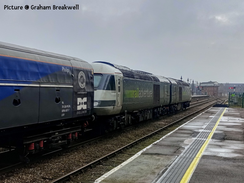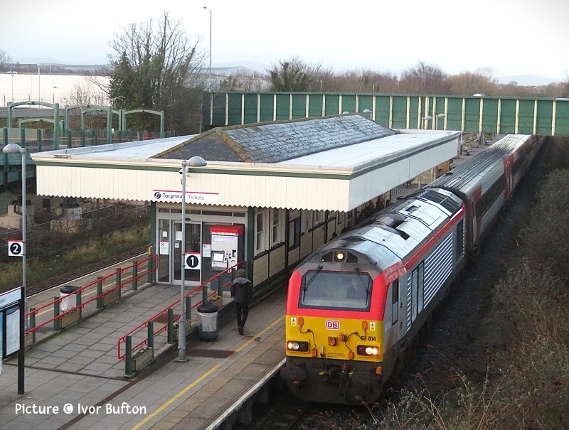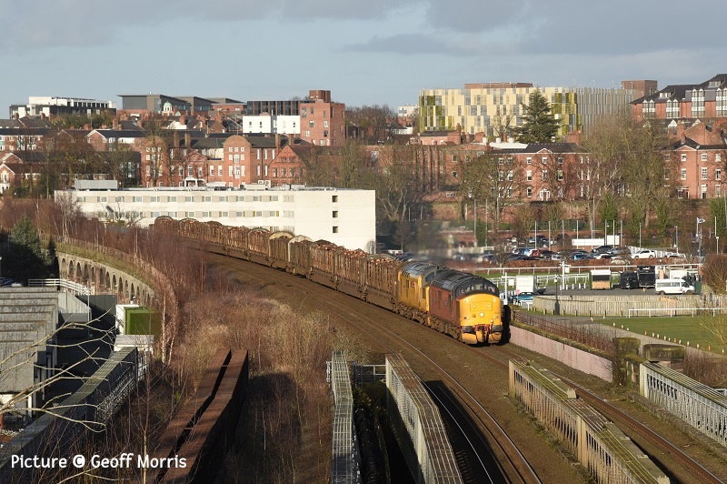 ![]() Royalty visits Bangor: 67 029 Royal Diamond with the 'WAG' from Cardiff on 17 February. Picture by Logan Humphreys. News Pictures![]() TfW upgraded 1V92 06:29 Holyhead to Cardiff Central to loco hauled on Saturday 22 February to cater for additional passengers travelling to Cardiff for the rugby games in Cardiff. 67 014 is seen making its booked stop at Prestatyn . ![]() There has been a Rail Grinder based in Rhyl Engineering Sidings (picture) since Saturday, It seems to be working at night west of Rhyl between Abergele and Penmaenmawr, the Rail Grinder has five individual segments numbered DR79231, DR79232, DR79235, DR79236, DR79237. ![]() A relatively uncommon appearance on 21 February in the form of 6Z36, the 12:00 from Whatley Quarry to Crewe Basford Hall. 66 557 brings 34 empty JNA hoppers through Shrewsbury station on the Down Main Line. (Graham Breakwell). Strange move explainedThe 'strange move' train mentioned by Bob Greenhalgh in the last issue was a movement by the 'Rail Adventure' company who use two back-to-back HST power cars as one locomotive. The train was 5S04, the 09:45 from Kings Norton OT Plant Depot to Eastriggs, a former MOD depot situated in Dumfries and Galloway about 5 miles west of Gretna Green. It appears that Rail Adventure stable their locos at Kings Norton. The job they have contracted for was to collect 769 002, one of the ex-319 bi-modes delivered to Transport for Wales and take it from storage at Eastriggs to Crewe EMD the next day for use by Northern Rail, one of two which will substitute for Northern's 769s as they are being overhauled. Here are some images by Graham Breakwell of the very shabby, unbranded HST power cars 43467 and 43423 hauling RA power cars 43080 and 43468, sandwiching two Universal Barrier Vehicles, passing through Shrewsbury station on the Down Mail Line. ![]() Incognito 43467 and 43423 up front. ![]() RA power cars 43468 and 43080. ![]() The barrier vehicles have names! Logging the LogsThe Aberystwyth to Chirk, takes an interesting route - let's 'follow' the run, headcode C656, on 22 February. Locomotives were 97 303 and 37 405; 37 405 is not equipped with the ETCS in-cab signalling on the Cambrian Lines, so it always has to be second in the pair. Departure is booked for 09:50 - the train departs 10 minutes early, and by reducing the booked stop at Talerddig and Newtown departs Newtown at 11:24, 44 minutes early, arriving at the shunt neck adjacent to Coleham depot at 12:20, 39 minutes early. It has been the practice to remove the locomotives here and replace them with a single Colas class 56 from the depot. However, this doesn't happen today and 97 303 and 37 405 carry on, and probably after a driver change. The train resumes the timetable times, departing from Shrewsbury at 14:34 and running more or less on time to Chester. ![]() The Cefn Mawr viaduct over the river Dee, 147 feet above the river with 21 arches, is one of the highlights of the Shrewsbury - Chester route, Gary Thomas found some sunshine ... ![]() ... to give us these two views of our train on the structure. Chirk is passed at 15:04; passing the destination of the train the Kronospan factory, which has a siding on the opposite line and there is no crossover, so the journey continues. ![]() After running round at Chester station sidings, 37 405 now in the lead for the last leg to Chirk, passing Chester Racecourse ... ![]() ... and Curzon Park Cutting (Geoff Morris). ![]() Rossett is passed at 16:18 (Gary Thomas) ![]() Passing Alastair Graham's camera at Wrexham at 16:25 ... ![]() ... and stabled in the loop at Croesnewydd from 16:28 to 16:52 to allow 1V97 14:28 Holyhead to Cardiff Central to pass (Alastair Graham). You might think it would be possible to run the locos round the train here, but there must be some reason - signalling perhaps? The train reached the Kronospan siding at 17:10. After some swift unloading, the train (departed as 6C37 at 19:04 to Shrewsbury Coton Hill sidings, More about 'Llandudno Junction 40' - by Alan RobertsAfter enjoying reading Stuart Cawthray's 40-year-sold report for Llandudno Junction new signal box, I can provide some more information to the commissioning of the new box on 10 February 1985. I took early retirement in July 2018 after 42 years employed by the railway, mainly as a relief signalman, nowadays called signaller! ![]() The new signal box at Llandudno Junction first appeared in sections in Thursday 7 December 1982. It arrived loaded in three open wagons on the Speedlink service from Arpley Sidings to Llandudno Junction. The box is classified as a 'BR Type 15' modular construction mainly for the Midland Region which covered the former LMS lines. About 150 were constructed from 1959 until 1985, some of the later ones were second hand from closed ones. ![]() The box was constructed using a mixture of second-hand Type 15 boxes off the West Hampstead Resignalling Scheme of the late 1970s with some other additional sections from other sources in storage. The new box measures 60' 4" long and front and rear panels made up of seven 8-foot window sections bolted together. The end panels measure 13' 10" which includes a door at each end; one being the fire escape door. The sliding windows have aluminium frames instead of the original steel ones in which most earlier Type 15 boxes were constructed. ![]() After the top half of the box arrived by train, a start was made soon after to construct the new box on a brick structure which housed the relay room for the old mechanical box installed prior to the first stage of the resignalling back in 1980. Crossing the line![]() Network Rail has identified that two foot crossings at Pensarn – Pen Uchaf and Ty Gwyn – need replacing with a bridge or safety reasons before capacity along the route can be increased; it is hoped to add an hourly Llandudno - Liverpool service in 2026 . There have been six near-misses and 14 incidents of mis-use across both crossings in the last two years, as we