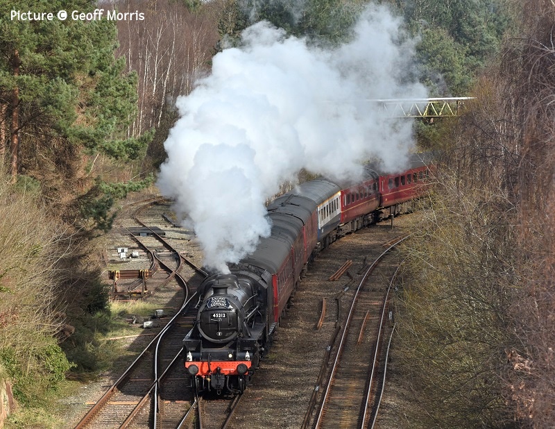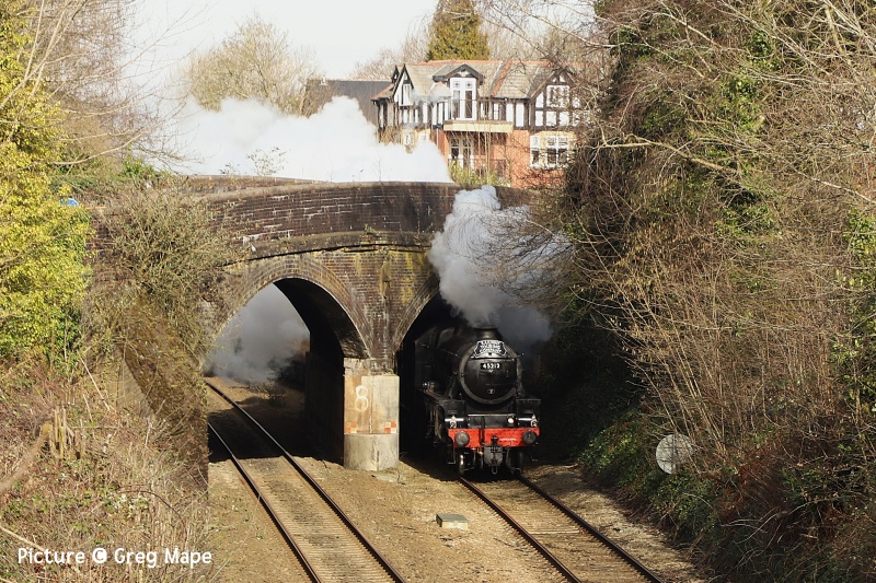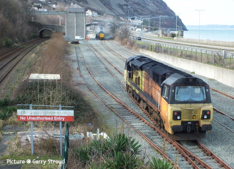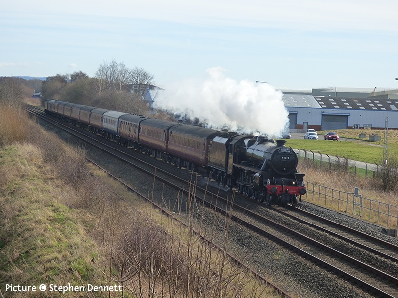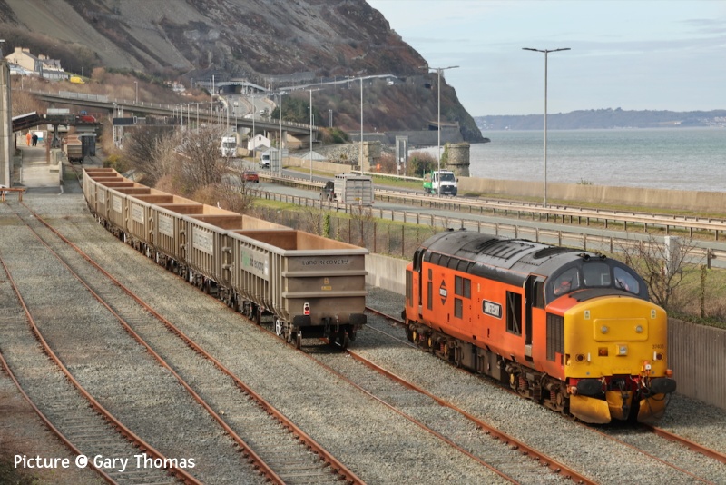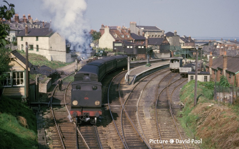 ![]() 197 119 seen near Penmaenmawr working the 16:29 Holyhead to Cardiff, a journey of 234 miles, arriving Cardiff at 21:20. Picture by Greg Mape. News pictures![]() The Aberystwyth - Chirk logs on 2 March departed Aberystwyth around two hours late but arrived on time at Chester by omitting the booked layover at Coleham, which ensured that the class 37s worked the train throughout. They were photographed from the City Walls approaching Chester ... ![]() ... and later at Chester Northgate heading for Chirk after the locos ran around at Chester station. 97 302 and 37 405 were again in charge (Geoff Morris). A Landslide of imagesThis week brought two events for contributors' reasons to send their pictures - the steam excursion on 1 March and the surprising use of 37 405 on a freight train on 3 March; the weather played its part also. Below is a selection of the images received. To go straight to steam click this. For the heritage items click this. Some other items are 'held over' to next issue due to lack of time. 37 405 to PenmaenmawrThe event on 3 March seems to have occurred when the 'booked' loco for a train of 22 empty stone-carrying wagons (6K33 13:56 Penmaenmawr to Bradwell Up Sidings) was temporarily unavailable, and the loading of the stone at Penmaenmawr Quarry had to be at an agreed time. 37 405 was found to be available, so it took the train. It did not return with the heavy loaded wagons, however, it returned light-engine and 70 803 was sent to work the train, as is normal. ![]() Rhyl (Ivor Bufton). ![]() Dwygyfylchi (Gary Thomas). ![]() Penmaenmawr (Ken Robinson). ![]() At the quarry yard (Gary Thomas). ![]() Prestatyn (Ivor Bufton). ![]() Conwy with 70 803 heading west (Logan Humphreys). ![]() Ready for the 'swap' (Garry Stroud) ![]() Dwygyfylchi on the return (Gary Thomas). 37 405. A look back - by Garry Stroud![]() A flashback of 37 years ago, when in large logo livery complete with 'scottie dog' 37 405, then named Strathclyde Region was a regular on the far North Line from Inverness and the Mallaig line from Fort William. Seen here it waits its next duty outside Fort William depot on Thursday 28 July 1988. [As D6982, this loco originally entered service in South Wales on 13 May 1965, 60 years ago] The MancunianThis was an excursion organised by the Railway Touring Company on 1 March, from Manchester Victoria to Holyhead and back powered by steam loco 45212. This loco has been preserved in working order since it was withdrawn in 1968. It had the honour of working the very last 'normal' fare-paying steam -powered journey, from Preston to Blackpool on 4 August 1968, not counting the Vale of Rheidol narrow-gauge line. Unfortunately, the train suffered delay; on the outbound leg there were problems with the pressure of the booked water supply at Denton station. ![]() Climbing Miles Platting bank on departure from Manchester Victoria. New construction is rapidly changing the background to this shot (Dave Jepson). ![]() Stockport outbound ... ![]() ... Departure (Stuart Broome). Stuart writes: 'To get this picture I ran from platform 2, through the subway, and along platform 3! I must remember I am not eighteen anymore, but still chasing steam.' ![]() Ashley Road bridge, Hale (Greg Mape) ![]() Northwich viaduct (Ian Pilkington) ![]() Chester Northgate (Geoff Morris). ![]() Beeches Farm (Stephen Dennett). ![]() 'Portrait of a Black 5' at Beeches Farm (Bob Greenhalgh) ![]() Beeches Farm (Gareth Prestidge) ![]() Passing the inlet at Bagillt (Dave Jepson) ![]() Abergele (Ian Pilkington) ![]() Llandudno Junction (Jim Ikin). ![]() Conwy (Ian Pilkington) ![]() Rhosneigr (Gary Thomas). ![]() Rhosneigr (Logan Humphreys). ![]() Holyhead (Jim Ikin) ![]() Llandudno Junction (Jim Ikin). 'One at a time, please'. ![]() Altrincham on the return (Dave Jepson). ![]() Stockport (Jim Ikin). From Dave Sallery's archive![]() 20 082 and 20 049 cross the Weaver Navigation at Frodsham Junction on a freight for Ellesmere Port, 22 December 1986. The pipeline has since been removed. ![]() 31 125 passes the disused Connahs Quay power station with empty ballast wagons for Penmaenmawr, 4 July 1991. ![]() 37 421 The Kingsman is between Mold Jct and Sandycroft with a down service to Holyhead, 31 May 1994. ![]() 47 767 and 47 627 are returning to Crewe with a loco test train at Prestatyn, 28 June 1995. Looking Back: Isle of Wight steam 1953-1963 by David Pool![]() My first visit to the Isle of Wight was in 1953, by which time the Ventnor West branch had been closed, while the Freshwater branch was in its final year. The Freshwater line trailed into the Cowes line just North of Newport station, so trains from Newport to Freshwater had to reverse out of the station to beyond the junction. In August 1953 W34 Newport had arrived from Cowes, making a connection with the Freshwater train on the left, which was headed by W25 Godshill. ![]() The line from Newport to Shanklin via Merstone was closed in 1956, leaving just the line from Ryde to Cowes via Newport and the busiest line from Ryde to Sandown, Shanklin and Ventnor. All the passenger services in 1958 were being worked by the Adams Class O2 tanks, while a few of the Stroudley Class E1 tanks survived on freight services. The Stroudley Terriers, which used to work the Ventnor West and Bembridge branches, had been repatriated to the mainland as 32646 and 32677, being replaced by Class O2 locomotives numbered W35 and W36 in 1949. Class E1 W4 Wroxall was photographed at Cowes on 17 July 1958. ![]() Lake is a village near Sandown which gained a station in 1987 after the line between Ryde and Shanklin had been electrified. On 9 September 1963 the 09:27 Ryde to Ventnor was passing Lake headed by W35 Freshwater. ![]() Most of the Isle of Wight railway was single track, but the lines at Ryde were double track in view of the frequent trains needed at peak times. The 1420 Ryde to Ventnor on the 9 September 1963 was apparently a Special working. with W18 Ningwood and four of t