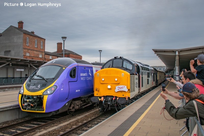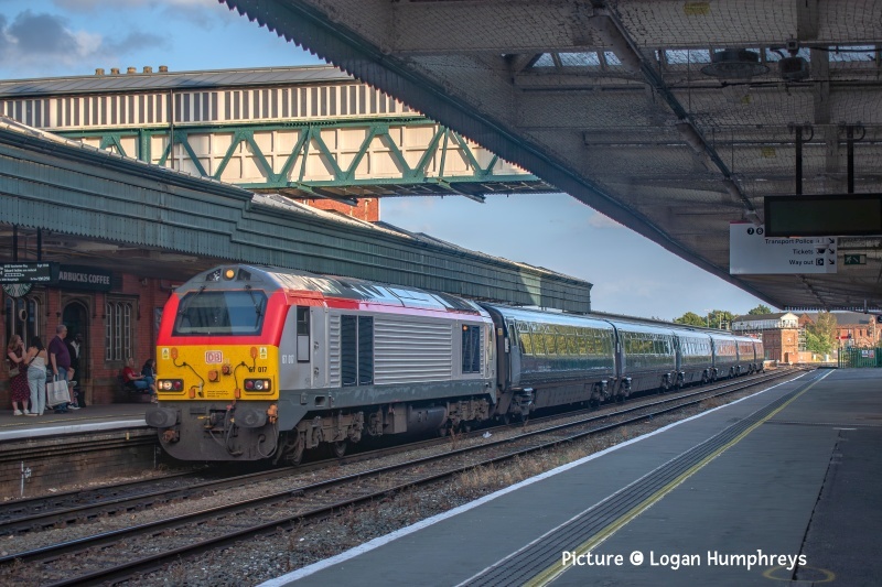 ![]() On 9 August the 16:27 Manchester - Cardiff arrives at Shrewsbury with 67 017 leading. Picture by Logan Humphreys, News Pictures![]() Friday evening on 8 August at Ashley, Cheshire. Apart from a flow that hasn't worked yet (possibly once), this must be the first regular freight (engineers trains aside) to work between Mouldsworth and Mickle Trafford for many years. The train is 4D02 18:02 Hope (Earles Sidings) to Llandudno Junction empties to collect a load of slate waste for the Cement Works. Picture by Trevor Tyms. ![]() The loco is Freightliner 70 008 in its special '60th Anniversary of Freightliner' livery is seen approaching Rhyl on 8th August whist working the second run 4D02 18:02 Hope (Earles Sidings) to Llandudno Junction empties. ![]() Approaching Abergele and Pensarn (Gary Thomas). The routing for empties is Chinley - Northenden Junction - Chester - Llandudno Junction (20:36). The return working, 6H67 02:15 from Llandudno Junction takes a longer route Chester - Crewe - Stoke - Uttoxeter - Chesterfield - Totley Tunnel - Hope. On this occasion, the locomotive began to have problems, and the train stopped near Hathersage (or Bamford, or in the tunnel take your pick) 142 minutes late. ![]() Mirrlees engined 37 901 was sent to haul 70 008 plus 22 loaded MWA wagons to Earles sidings 142 minutes late. Europhoenix, operator of the 37 have issued the above picture of the pair at Earles Sidings. 37 901 is stationed at Manchester Piccadilly at present, in case a loco was needed by the team working on the rebuilding of the roundabout / bridge near Stockport station. ![]() In other news: Making its debut visit along the coast, the latest Class 197 to have a test run No 197 025 enters Conwy station with the 5Q71 11 08 returning Holyhead to Crewe test service on 11 August (Garry Stroud). Class 37 Corner. pictures by Logan Humphreys![]() Pathfinder Tours, 'The Heart of Wales Rambler', with 37 516 Loch Laidon and 37 668. on 9 August. Pictured near Craven Arms. ![]() Derby station was the place to be on 3 August Thanks to the 'Great Gathering' and the trains to carry visitors. Above, 37 240 and a purple Pendolino which had been 'dragged' to the event with 57 307 Lady Penelope. ![]() In the show, 37 508 and 37 418. In the background, a Royal 67 and coach 'Caroline' ![]() Back at the station, 37 407 Blackpool Tower. From Dave Sallery's Archive![]() 37 520 and 37 521 cross over the Weaver Navigation at Frodsham, 13 November 1990, ![]() 142 037 at Liverpool Lime street after arriving from Blackpool in November 2007. ![]() 37 107 on a test train returning to Crewe at Prestatyn, 15 March 1992. ![]() 37 421 with Shell name removed prepares to run around its train after arriving at Llandudno from Birmingham, 9 June 1993. Looking back: A Day Trip from Dover, 1969 - by David Pool![]() Following the end of steam in the UK in 1968 I had decided to search for steam in Europe before it was too late. On holiday in Kent in 1969, I arranged to join an LCGB Railtour on 18 May which was to be steam hauled in France. Participants from London had arrived at Dover Marine, where I joined the group to board the St Patrick. On arrival at Calais the weather was overcast and drizzling, so I decided that photography from an open carriage window was the best option, and did not join the crowd trying to get a shot of 141R338 on our train. At Calais Ville a pair of “Caravelle” Autorail Class X4300s was my introduction to the diesel multiple units in use for most of the local services. ![]() As we passed the SNCF Depot at Calais, the sight of a steam heating van between a pair of Class BB 66000 diesels was interesting. These mixed traffic locomotives could then be used on passenger trains which were steam heated, but the growth of electrified lines with electrically heated coaches was ending the use of the vans. ![]() A scrap line at Calais was a depressing sight, with a couple of 231G Pacifics visible. These would once have worked the expresses to Paris, such as the Flèche d’Or (Golden Arrow). The number on one was not fully visible, but later that day I passed the location and was able to confirm it was 231G42. Only one 231G locomotive has been preserved. ![]() The Railtour headed to Hesdigneul and the branch to Desvres, which had been closed to passengers in 1968. Our Alco built 141R338 was running round our train and being waved forward by the railwayman on the front buffer beam. In 1951 the Class 141R locomotives had accounted for 15% of the SNCF’s steam fleet, being powerful and reliable. ![]() Having arrived at Arras for a locomotive change, I photographed another Autorail, this being a Renault ABJ 3, X3217. I didn’t get the numbers of the trailer or other coaches. ![]() We were then hauled by electric locomotive BB16538 to Dunkerque, by which time the sun had briefly appeared. Another scrap line displayed an assortment of steam locomotives - I have since identified them as an 040D, an 050TQ and a 242TA amongst others. ![]() BB 16569 was a sister locomotive to our BB16538, and conveniently posed. ![]() We had a Baldwin built 141R680 for our return to Calais via Gravelines, arriving at Calais Maritime at 1815, where the St Patrick was waiting to return us to Folkestone. My final shot was of 141R680 after it came off the train and headed back to Calais Depot. I am grateful to the Railtour Files website for the information reminding me of the route and timings of the Railtour. Home page | Archive | Previous Notice Board |