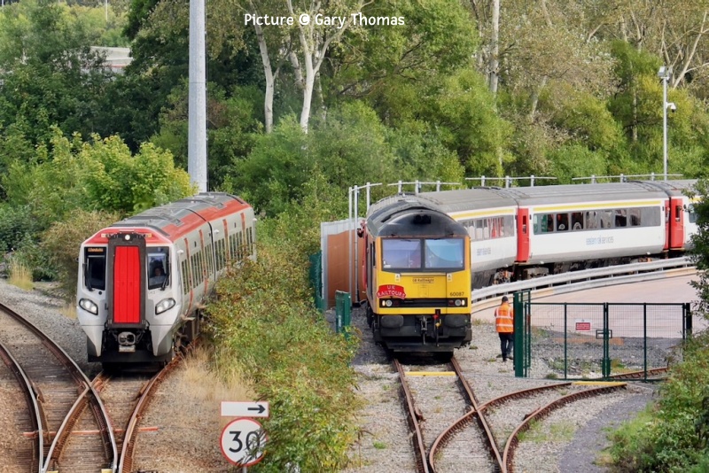 ![]() 97 302 and 37 668 pass Llanbedr on the return 'Cambrian Coast Express' on 5 September Picture by Gary Thomas. Some items have been held over to the next issue. The Industria DitatOn 6 September UK Railtours ran a train with the name shown above, which is the motto of the town of Widnes; translated from the Latin means 'Indistry Enriches'. The aim of the day was to travel on as many section of line which normally does not see passengers. Extracting from the organiser's text: The month of September marks the 200th anniversary of the modern railway age, a time when the Industrial Revolution was firmly underway, creating a period of great change in Britain. To celebrate these events which had an impact on every aspect of life, we were inspired to arrange a September freight line tour.The Railtour visited several sections of non passenger track in the North West and North Wales, departing from Watford Junction behind 57 303, the tour was routed via the Crewe Independents before reaching Ditton Reception Sidings where 60 087 Ingleborough was attached and the tour then visited Alstom Widnes Train Care Centre. From here the tour headed to Warrington via the Ditton to Latchford freight only line, then heading for North Wales via the Hartford Chord and a reversal at Northwich, in North Wales the tour traversed the Mostyn Up Goods Loop (from the down main - this allowed both crossovers to be traversed) and the slate loading sidings at Llandudno Junction. A selection of the many pictures received follows. Hopefully everyone is represented! ![]() Greg Mape writes: Parked in Runcorn I saw 57 303 pulling out of the station ... ![]() ...and rode my bike via the Runcorn-Widnes old bridge & then along the side of the Sankey Canal to get pictures of the Watford Junction to Llandudno Junction railtour. passing the remaining part of the former Power Station at Fiddlers Ferry (Greg Mape). ![]() A sooty approach to Chester... ![]() ... and the two locos together (Logan Humphreys) ![]() 57 303 at Chester (Geraint Williams) ![]() The Indistria Ditat Railtour heads for Llandudno, 6 September. Picture by Bob Greenhalgh. ![]() 60 087 Ingleborough is seen approaching Rhyl with 1Z16 11:45 Widnes to Llandudno Junction ... ![]() ... with 57 303 on the tail. ![]() The train has crossed to the to the Up line to enter the Goods Loop the Mostyn Goods Loop, 57 303 on the rear (Roland High). ![]() Arriving at Llandudno Junction (Garry Stroud). ![]() (14:29) 60 087 taking the train out of the station so that it could access the yard and the slate waste loading facility. This was an unusual move, thanks to co-operation from Breedon, the company who own the quarry at Bethesda (Ken Robinson). ![]() (14:34) Reversing towards the siding, with 57 303 now leading. 197 124 is seen on the right coming off the Llandudno branch with the 15:04 from Llandudno to Llandudno Junction (Ken Robinson). ![]() 197 043 coming off the Conwy Valley line, passing 60 087 in the siding (Gary Thomas) ![]() More 'clag' from 60 087 (Greg Mape) ![]() 57 303 starts the return train to Watford Junction (Gary Thomas). Cambrian Coast Express![]() Pathfinder's 'Cambrian Coast Express' from Cardiff to Pwllheli on 5 September at Barmouth (Kate Jones) ![]() 97 302 and 37 668 taken near Black Rock at Criccieth on 5 September ![]() Penchain (Gary Thomas) From Dave Sallery's archive![]() Class 25 No. 25 191 in Rhyl yard after permanent way duties, 12 October 1986. Where the loco is standing is now part of the Home Bargains car park. The rest of the once extensive goods and carriage sidings area is a Morrisons supermarket. ![]() 31 201 + 31 163, Tal y Cafn, 1 July 1994. On the Conwy Valley line with nuclear flasks from Trawsfynydd. ![]() 33 039, Llandulas, 17 August 1985. Working a Crewe to Bangor train during that tragically short period when 33s were daily visitors to the coast. ![]() Knottingley depot, 5 September 1993. Classes 08, 09, 56, 58 and 60 are in view. Railfreight Coal at its finest. Looking Back: Steam, Diesel and Electric 1969 part 3 - by David Pool![]() In 1969 the Kent and East Sussex Railway preservation activities were mostly concerned with the acquisition of rolling stock, since there were difficulties in getting permission to operate a passenger service, initially between Tenterden and Rolvenden. Passenger services on the whole line between Headcorn and Robertsbridge had ended in 1954, but some freight workings continued. The final train was a railtour in 1961. At the time of my visit to Rolvenden on 25 June 1969 there was an interesting collection of locomotives, some recently painted, but few signs of any movements. The ex GWR Railcar W20W was a surprise, and has been on the line ever since. ![]() Several steam locomotives had come from the Sproxton Ironstone Quarry in Leicestershire, such as Hastings, Hunslet No.469 (1938). ![]() A rather small (10 ton) Peckett No.1631 (1233) was now K&ESR No.12. This locomotive originally worked in Scotland. but ended its working life at Pendleton, near Manchester. in the works of the chemical manufacturers Hardman & Holden. It had been named Marcia after the wife of the Managing Director. In 2024 it was purchased by a driver from the K&ESR and the model manufacturer Rapido. and its future on the K&ESR now looks to be secure. ![]() Another locomotive from Sproxton was Charwelton, Manning Wardle No.1955 (1917). Although the Manning Wardle company ceased trading in 1927, the name has lived on, the property rights for the designs being held by Hunslet and the trademark name by a company wishing to preserve it for the Lynton and Barnstaple Railway. Visible in my shot is Gervase, another locomotive built by Manning Wardle, but later rebuilt by Sentinel. This locomotive was more recently based at the Elsecar Heritage Railway, but its present location and condition are unclear. ![]() The Bluebell Railway in 1969 was by contrast a thriving attraction, with steam trains operating from Sheffield Park with a Stroud