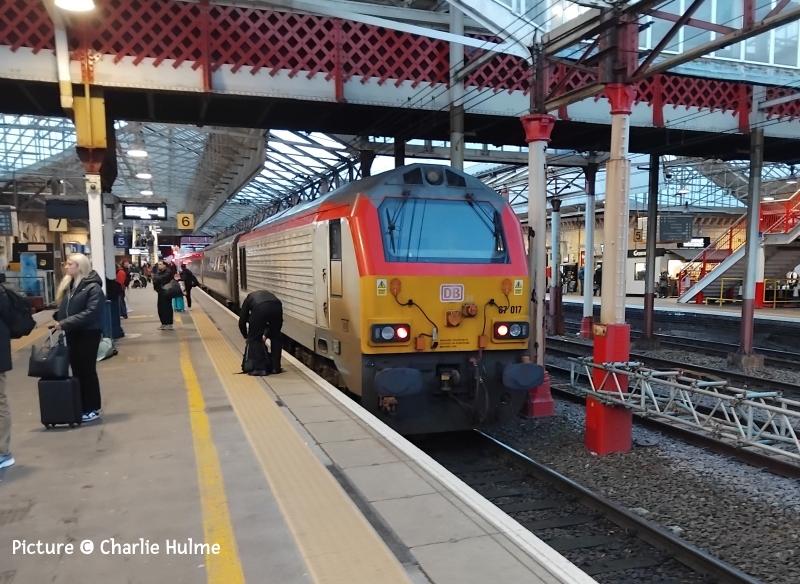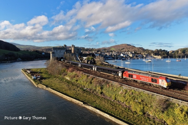 ![]() On 13 November at Conwy 3S71 56 302 and 56 078 at 10:08 with 21:13 Coleham to via Holyhead to Coleham Rail Head Treatment Train. Picture by John Wilkinson. Time for changeFor various reasons, including lack of interest in the Coast trains, neglect of other websites and projects, and slowing down of my old brain, as from this issue the updates will be fortnightly. This also gives time for myself and hopefully other contributors to write more text to go with the pictures. I hope people understand my reasons; I had considered closing down altogether, but we'll try this. The next update will be on 5 January. On the subject of photographs, back in the 90s every took pictures with digital cameras, and knew how to edit using a computer how to easily alter the file name to the format which is essential for my system. In particular, the filename should begin with your initials e.g. ch so the pictures are together when I upload them. Today many use a phone camera, but it would be a big help if you could read the contributions page. All the best for Christmas - Charlie Newsreel![]() Colas Rail's 70 812 made a couple of trips to Penmaenmawr on Thursday 18 and Friday 19 December. On the Thursday it arrived quite late so only 6 wagons were loaded. It left Penmaenmawr with just the loaded wagons. The following day it returned with these now empty wagons and left Penmaenmawr pretty much on time with a fully loaded train. ![]() TfW's 67 010 also ran an additional Holyhead to Crewe return service on 20 December as a 'crowd buster'. It was good to see the initiative being taken. Interestingly, a coach ran from Bangor to Chester at pretty much the same time. ![]() On 17 December DRS ran one of their twice-yearly 68 009 to keep the path, and insure that the equipment at Valley is available. 68 009 is seen leading the outbound flasks past Conwy as 6D43 09:50 Crewe Coal Yard to Valley Nuclear Electric. 68 005 was on the rear. In other news: Ivor Bufton reports that ex-TfW unit 175 001 has become the first Class 175 to enter revenue earning service with GWR today on 15 December, working: 2C26 13:40 Plymouth to Penzance 2P21 15:52 Penzance to Plymouth Shrewsbury oddity - report by John OatesHere’s something I’ve not seen before on my occasional visits to Shrewsbury: ![]() Saturday 6 December, 1D12 Birmingham International to Holyhead / Aberystwyth was a platform change into platform 3. Formed of 158 819 & 158 823, the train was split with 823 then being signalled using rarely-used signal SBJ99 southwards. Above, the now 1J09 10:33 to Aberystwyth approaching signal SBJ99 ... ![]() ... and then disappearing around the corner. It was a very busy morning at Shrewsbury with not only the beginning of Christmas shopping, but also Wrexham playing away at Preston. 1D12, formed of the aforementioned 158 819 left Shrewsbury 11 minutes due to problems in the Birmingham area, but then 16 late from Ruabon and 21 late from Wrexham General (after 7 minutes loading passengers – or not ….). The newly introduced doubling of the service between Wrexham and Chester should prove very successful. We hope all the fans made it to Preston on time! Riding the loco-hauled - by Charlie Hulme
