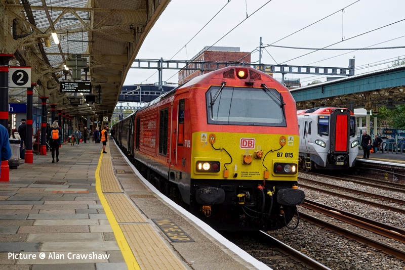 ![]() ... 197 050 and 197 108 on 1V40 Manchester Piccadilly to Milford Haven at Crewe. Picture Paul Hajdasz. This is a rather short issue: some items will be added before 10am Tuesday, others will be held over for next time. - Charlie Miscellany![]() Paul Hajdasz writes: 'On Thursday 9 October I observed a couple of light engine moves whilst at Crewe. The first was 66 114 awaiting on the adjacent line to platform 11 with DB 0K54 from Toton TMD to Crewe ETMD ... ![]() ... Making my way quickly to platform 1 66 570 passed on Freightliner 0Z72 Crewe Basford Hall to Crewe. ![]() The large loco 66 789 working from Tunstead sidings to Banbury Reservoir Tarmac negotiating the Skelton Junction - Deansgate Junction curve near Altrincham. The anchors in the centre 'four foot' are to prevent the track from moving sideways. (Greg Mape). ![]() A busy scene at Chester on 8 October recorded by Roland High. MPV DB98954 at the front and DB98904 at the rear wait for the road to Wrexham... ![]() ... Colas Tamper DR73921 a Plasser & Theurer 08-16/4x4C80-RT sits under the Signal Box... ![]() ...in company with Swietelsky/SB Rail's DR75013 a Plasser & Theurer Unimat 09-4x4/4S Dynamic Tamper. Llangollen Railcar Weekend - report by Ken Robinson![]() Class 108/104 railcar combo arriving at Corwen, with an interesting destination! ![]() Services arrived at, and departed from, Glyndyfrdwy during the weekend - here the class 108/104 units are seen on the left with the Wickham (class 109) on the right. The 109 had a 127/108 hybrid on the rear! ![]() The 127/108 are seen (with the 109 behind) preparing to depart from Glyndyfrdwy. Did not have time to take photos at Llangollen! All taken on Sunday, 5 October. A Traveller's Tale - by Alan Crawshaw![]() 67 015 is seen here bringing the Holyhead to Cardiff into Newport on Friday. I should have been travelling in the opposite direction by then, but the 09:23 Cardiff Central to Holyhead started 15 minutes late. I was surprised to find two Central Wales line 153s tacked onto the advertised class 158 unit, one being a refurbished example with enhanced cycle capacity. The conductor announced that we'd be losing them at Shrewsbury, from where the two car unit was well filled but nobody had to stand. ![]() We'd lost a further ten minutes by Chester. A Manchester Airport to Llandudno service arrived, and passengers for intermediate stations were told to transfer so we could run non-stop to Llandudno Junction, which recovered ten of the lost minutes. We reached Bangor a minute after my bus departure time but luckily it was a few minutes late, saving me an hour's wait for the next one. The Impossible Dream![]() 71000 Duke of Gloucester, newly returned to operation, on a test run, Wrexham, 7 October (Anthony Thomas) Below is a selection of its test runs in 7 - 8 October, not necessarily in any order. ![]() The 7 October run near Beeston Castle (Ian Pilkington) ![]() On 8 October the run was Crewe - Shrewsbury -Crewe Above: Approaching Tattenhall... ![]() ... and passing Walcot (Dave Jepson). ![]() Gresford Bank, by Peter Neve, who remembers: 'I last saw Duke of Gloucester on the main line in early 1962 (from memory). I spotted “her” one Saturday afternoon at Chester General station as I was riding my bicycle across Westminster Road bridge. She was waiting for the “off”, standing on the freight road (near to where Chester PSB is now) with a train of box vans bound for Crewe, I seem to recall. It was good to see her some 63 years later, looking immaculate and sounding wonderful. All credit to those who have made this possible. Indeed, the Impossible Dream'. ![]() Chester Locks (Logan Humphreys). The name refers to the history of this unique loco after it was consigned to Barry scrapyard, minus the cylinders and valve gear to be a museum item. The right hand cylinder was removed at Crewe Works and used as a “guinea pig” for the final sectioning of the left hand cylinder which was later exhibited at the Science Museum, South Kensington, London. This sectioned cylinder together with its valve gear currently resides at the Heritage Centre, Crewe. The loco stood at Barry for seven years, deteriorating. seemingly lost for good with no hope of running again - an impossible dream. But a group of enthusiasts in 1973 thought different, an impossible dream. The history is told on the Some news clippingsTfW plan to introduce a shuttle service between Chester and Wrexham, worked with a 197 unit, to relieve the crush on the existing services. Part of the route is single track, which might cause problems for the timetablers. The Britannic Explorer has suffered yet another 'door problem', this time when during the service with passengers aboard. They were evacuated to hotels, and the train was returned to its depot. Well-known railtour company Pathfinder is closing down, the owners wishing to retire. They will be missed by the many people who have enjoyed their well-organised tours, often including non-passenger lines. Back Track magazine in the October issue includes a detailed, but readable article called Observations at Conway and Llandudno Junction in British Railways' Indian Summer in North Wales by Paul Bowen. From David Sallery's Archive![]() 101 685 is on a Llandudno - Blaenau Ffestiniog service near Dolwyddelan on 1 July 1994. This unit is now preserved on the North York Moors Railway. ![]() 31 224 and 31 134 have just arrived at Llandudno Junction with the flasks from Trawsfynydd, 15 July 1994. ![]() 47 347 nears Tal-y-Cafn on a Pathfinders Tour from Kings Cross to Blaenau Ffestiniog on 26 June 1993. 47 347 has since been rebuilt as 57 004. ![]() 56 010 nears Buckley on empty coil wagons from Shotton to South Wales, 3 June 1997. Looking Back: Steam and Diesels 1969 part 7 - by David Pool![]() Most railway enthusiasts will be familiar with Stroudley’s Terriers, but perhaps less so with his final design, the Gladstones. These were successful locomotives intended for express ser