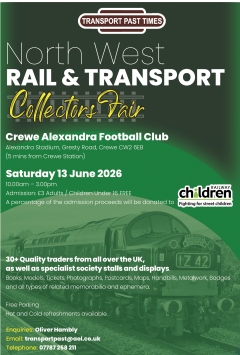 22 December 2025![]() ![]() ![]() ![]() In Cardiff Museum Forthcoming events See our Calendar Page for operator details. December 2025 Monday 1 December Midland Pullman Edinburgh Christmas Pullman from Bangor to Edinburgh January 2026 Thursday 8 January Clwyd Railway Circle David Jones 'Footage of Railways in the 1960s' Altrincham Electric Railway Preservation Society Friday 9 January John Hooley "A Midlands Miscellany". February 2026 Thursday 5 February Clwyd Railway Circle Annual General Meeting followed by David Jones 'Recollections of CRC Railway Trips 2005 to 2017, Still Images and Video Footage' Friday 13 February Altrincham Electric Railway Preservation Society Paul Shackcloth "People and Places 8". March 2026 Thursday 5 March Clwyd Railway Circle Peter Hanahoe 'North Wales Railways in the 1980s' April 2026 Thursday 2 April Clwyd Railway Circle David Parry 'Swiss Rack Railways' May 2026 June 2026 ![]() Saturday 13 June North West Rail and Transport Collectors Fair July 2026 Friday 3 July Saltburn Railtours Saltburn to Llandudno (one way, WCRC diesel hauled) Monday 6 July Saltburn Railtours Llandudno to Salburn (one way, WCRC diesel hauled) August 2026 September 2026 Thursday 3 September Clwyd Railway Circle To be announced October 2026 Thursday 1 October Clwyd Railway Circle To be announced November 2026 Thursday 5 November Clwyd Railway Circle To be announced December 2026 Thursday 3 December Clwyd Railway Circle Ian Mainprize 'German Railway Development' Other useful sites: For up-to-date North Wales information join the North Wales Trains News group North Wales Coast Railway website created and compiled by Charlie Hulme |