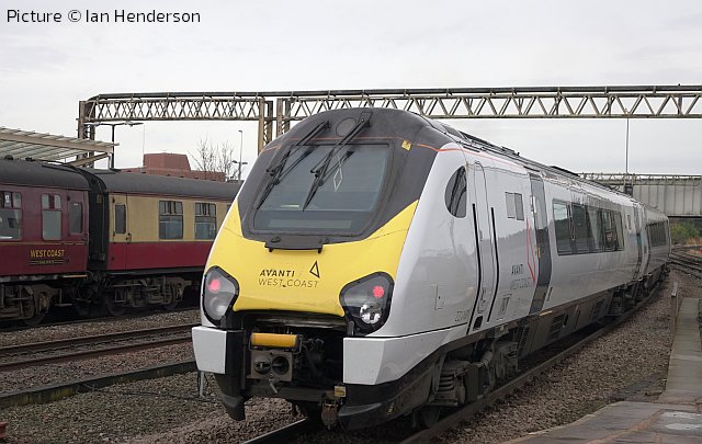 ![]() Class 221 are diesel-electric railcar sets built in 2001-2003 by Bombardier Transportation in Belgium, with some of the assembly work being done in England. They differ from the Class 220 'Voyagers' in that the 221s are equipped with tilting equipment offering up to six degrees of tilt to allow them to take curves faster without affecting passenger comfort. They were all built for the Virgin Cross-Country fleet, but reorganisation of franchises, under which Virgin lost the Cross Country franchise, divided the Class 221 fleet in 2007 between Virgin West Coast and Arriva's CrossCountry operation. December 2019 saw a further change, when the West Coast franchise was transferred to Avanti West Coast, a joint operation by First Group and Italian national railway Trenitalia. CrossCountry units are not seen on North Wales trains. The succesot companies are now are not using the name 'Voyager' and the 'explorer' names have been removed from all the trains. 221 114 - 118 were CrossCountry units for a few months until December 2008 when they returned to Virgin. (Oddly, their nameplates were included with others sold by Virgin at a charity auction.) All the non-tilting Class 220 types are with CrossCountry; the tilting equipment on the CrossCountry 221s has apparently been isolated. The coach bodies, the engines and most of the equipment of the two types are the same, but the bogies are very different; the 220s have inside bearings which expose the whole of the wheel faces, whilst the 221s have a more traditional-looking outside-framed bogie. To aid identification by staff, the two types had different Virgin 'shield' logos on the nose: the 221s have a red background to the shields, and the 220s a silver background, but Cross Country and Avanti have removed the shields from their units. The 221s as built featured an interesting naming theme, the trains being named after various 'voyaging personalities' with dark blue backgrounds to their plates (fixed to one of the intermediate coaches). Virgin have retained ownership of the plates when the trains passed to other companies, and a number have been auctioned for charity. The fleet numbers of the units are marked low down on the corner of the driving ends and very hard to see when the trains are in service: best best is to note the name and refer to the table below; alternatively each coach of a 221 has a number of which the last two digits are the last two of the unit number plus 50, e.g. coach 60360 is part of 221 110. The 221 fleet is owned by Halifax Asset Finance, managed by Angel Trains, and leased to the operators. There were 44 Class 221 trains built, numbered 221 101 to 221 144. 101 to 140 were five-car trains built for Virgin Cross Country, and 141 to 144 were four-car sets which were intended for use by Virgin West Coast on the London - North Wales service. However, things have not worked out like this. All coaches are equipped with a Cummins QSK19 diesel engine of 560kW (750hp) at 1800rpm, powering a generator which supplies current to motors driving two axles per coach. Maximum speed is 125 miles per hour, and 1200 miles can be travelled between refuellings. A five car set provides 26 seats in First (originally 'Club') class and 224 in standard. All vehicles are air-conditioned and fitted with at-seat audio entertainment systems and power sockets for laptop computers and mobile phone charging. The train formation as built was: Standard Class with driving cab and reservable space for four bikes (coach F) Standard Class with Shop/Buffet counter (D) Standard Class (C) Standard Class (B) Club Class with pantry and driving cab(A). In 2008 they were reformed and re-equipped in preparation for taking over North Wales 'business' services at the start of 2009. The main change is to the 'shop' coach (D) was positioned second in the train, next to the first class coach (A), and has been fitted with new seating 'for use as standard or first class as required.' The 'shop' itself is at the end of the coach nearest to the three 'normal' standard class cars. Presumably the seating in coach D will become first-class on 'business' trains between North Wales and London which will be serving meals as the current Pendolinos do. The 'hybrid' seating is '2 + 2' layout, all but four of the seats are arranged round tables and match the windows. The 'galley' in first-class coach A has been refitted with new equipment, and interior closed-circuit TV has been fitted throughout the train, as well as forward facing CCTV in the driving cabs as found in Arriva's 175s. The re-forming also required to changes to electrical arrangements, as the trains are set up for each coach's electrical supply to be fed from the adjacent one if necessary. A further change in late 2010 was the disbandment of four-car unit 221 144, its two centre vehicles being used to strengthen the other two 4-car sets to 5-car, while the two power cars were stored as spares. During 2014 all West Coast units underwent a programme of modifications, most obviously including the replacement of the front 'skirt' with a different version similar to that used in the East Midlands Trains Class 222 'Meridians', requring the unit number to be placed in a different position, higher and further back. Trains
