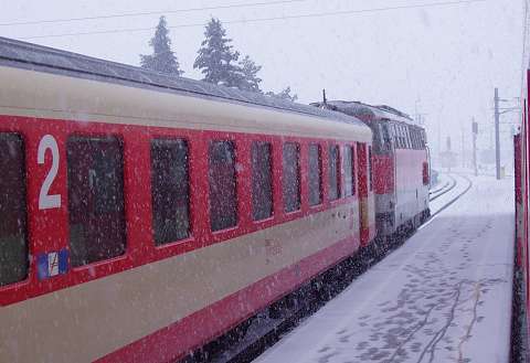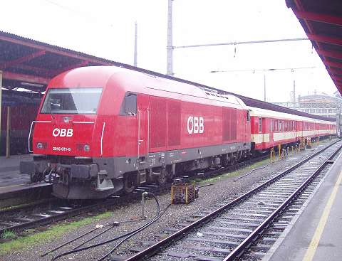 through train from Salzburg, due at 17:52, arrives.