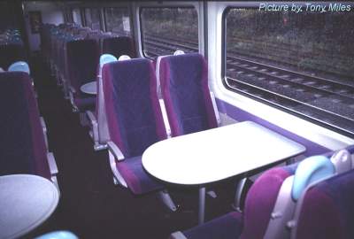 The first 2-car set, 175 001, is fully fitted-out with seating, and gives us a first glimpse of the interior style, which uses FirstGroup house colours. As can be seen, the layout looks very good, with comfortable seats which align with the windows in both face-to-face and face-to-back areas. The next complete train is at the Old Dalby test track: it was planned to deliver it to Newton Heath depot, but the SVR-based units have failed to obtain certification. It is believed that main-line test running has been suspended, perhaps because the units have been found to be marginally outside the permitted structure gauge.