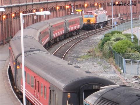 1H90 13:20 Holyhead - Manchester pulls away from Chester... and