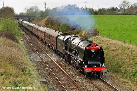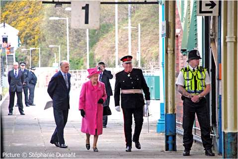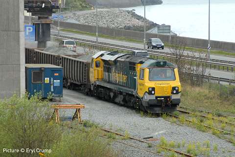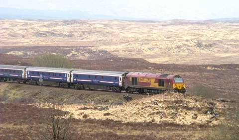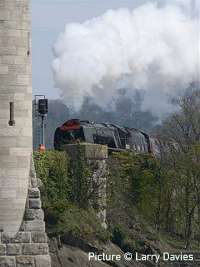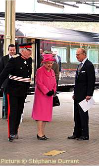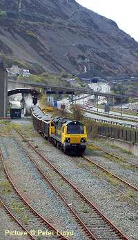 ![]() HM The Queen rides the sunny Llandudno branch, 27 April. See report below. Picture by Peter Lloyd. Editorial rantings![]() As some may have guessed, I have been away from base (special mention again to the marvellous Moor of Rannoch Hotel - the picture above was taken - a second too late - from our room) and the last two updates were prepared in advance and loaded by remote control ... sorry the RSS feed did not work properly. So many news events have happened while I was away that we'll have to temporarily abandon the weekly cycle and insert some extra pages including this one. I hope you like it. My Internet connection here is via NTL/virginmedia, and once I used their email system too, until I found that the file space for incoming mails was so limited that emails with large pictures would fill it before I could get to download the messages. So I began using email from my website supplier, and set up the Ntlworld account to forward all messages and then delete them from the NTL server. Unknown to me, at the beginning of April the settings were changes without my knowledge, so the forwarded messages were not deleted, until the space filled up, and some of you may have received error messages, for which I can only apologise. I did receive all your emails. You are encouraged to use the address given on the contributions page rather than the NTL one. ![]() And if that is not bad enough, NTL/Virgin email is being transferred to a service supplied by Googlemail, and, as part of the transfer process. Users (not me fortunately) who have been relying on Virgin Media's Webmail service to store mail have found that all their messages - including the 'sent' mailbox - older than 90 days have been deleted, without any warning, and cannot be recovered. Unbelievable. Anyway, above is a view at Rannoch station, a couple of minutes from the hotel. The rail-wheeled Land Rover used by track workers has reversed out of the section ahead to allow the 11:05 to Mallaig to arrive. Thanks as always for all the contributions. - Charlie. Wrexham and Shropshire news![]() The day after the problems which led to the use of a Class 168 railcar set on a Wrexham train, 67 015 appeared hauling the spare set of blue ans grey coaches, seen here pausing at Gobowen with the 1144 for Marylebone on 22 April. Thanks to everyone who wrote to tell us that the W&S crew training on the North Wales line was not part of some sneaky Deutsche Bahn master plan as we light-heartedly hinted, but the result of W&S having volunteered to crew the train for this year's Three Peaks Special to raise funds for the 'Railway Children' charity. The event takes place from Thursday 24 June to Saturday 26 June, transporting up to 200 walkers around the country to climb the highest peaks in Wales, England and Scotland. This year will see a new partnership between Railway Children, Rail Blue Charters and Wrexham & Shropshire. A rake of Blue and Grey Mk3 first class coaches and a W&S Class 67 will be used throughout the trip: this formation is likely to be supplemented by one of the red 'constellation' Class 86 electrics of ETL hauling the train from Euston to Crewe and on part of the return trip up the West Coast Main Line on the Saturday. The Charity is very grateful for all the help they have received from the parties involved over the past few months which has ensured that the train was viable to run during these difficult times. Train crew will be provided by W&S, First GBRf and DRS. (EWS have provided the train in previous years.) Approximate timings: Departing Euston 18:00 Thursday, Crewe 21:00, Bangor 23:00. The train will spend the night at Holyhead, while the walkers go by coach to Pen-y-Pass and walk up and down Snowdon in the dark, returning to Bangor for an 06:00 departure Friday to Ravenglass. The walkers then travel by Ravenglass and Eskdale train to Dalegarth to walk up and down Scafell Pike, then by train from Ravenglass departing 20:00 on Friday to Fort William arriving 04:30 Saturday. A coach to Glen Nevis visitor centre, then a stroll to the summit of Ben Nevis and back in time for the return train which departs Fort William 12:30, for Motherwell 17:30, Crewe 21:00 and Euston 23:30 Saturday. The train is, of course a private charter, the only way to get to travel is to take part in the challenge! There may be some places left ... More details at The Railway Children website. On the subject of charity fund-raising, the plan is for one of the winners of our recent charity cab-ride auction will be travelling from Holyhead to Crewe aboard the Virgin Class 57 on 8 May. Class 70 down the Coast![]() A 'first' occurred on 27 April when one of the new General Electric Class 70 locos visited Penmaenmawr quarry to collect a load of stone. Elwyn Greenhalgh photographed the westbound empties, 6D22 from Crewe Basford Hall, at Llandudno Junction. ![]() Under the loader at the quarry (Eryl Crump) ![]() A closer view (Eryl Crump) ![]() Portrait of the locomotive (Peter Lloyd) The 'bulge around the fans is very typical of North American locomotives; unlike the homeland versions, though, the 70 does not have handrails for the crew to walk along the outside, as the UK structure gauge does not have enough width. ![]() 70 002 hauls its train away from the quarry sidings in an exhaust and stone dust haze. Picture by Corrie. ![]() The loaded train at Llandudno Junction (Garnedd Jones) Royal Visit, 27 April![]() HM The Queen visited North Wales on 27 April, travelling in the Royal Train to Bangor, where Stéphanie Durrant was able to photograph the train arriving. ![]() 'Mind the gap between the train and the platform edge.' Note the lack of the traditional red carpet (Stéphanie Durrant) ![]() Her Majesty was accompanied by HRH The Duke of Edinburgh, and was met by the Lord-Lieutenant of Gwynedd, His Honour Huw Morgan Daniel. ![]() The party returned later in the day from Llandudno (picture by Stéphanie Durrant)... ... where the train was photograph