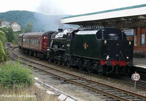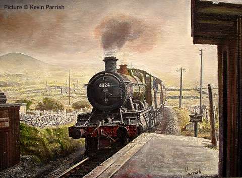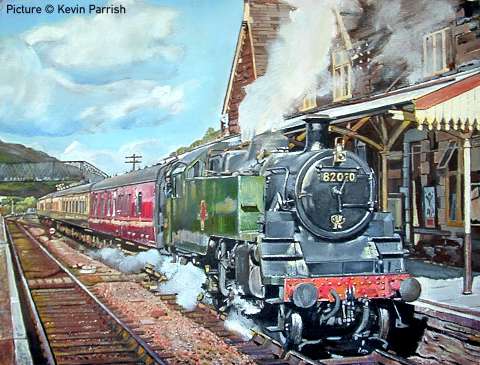 Both adopt the familiar style of content with black and white photos from the archives showing installations along the route, supplemented with sections of Ordnance Survey maps and traffic figures for the various stations. Few modern comparison shots appear in these two volumes because the lines have been mostly swept away, but strangely the once-extensive rail installations at Oswestry and Wrexham Central both now feature single lines as a token rail presence. Worthwhile buys for those with an historical interest, even at £15.95 each for around 120 photos in a hardback. The series is gradually making its way northwards and further local coverage can be expected. Standard Splendour![]() The above picture and the heading view are reproduced here by kind permission of the artits, Kevin Parrish, who writes: Cambrian Halt is in fact a depiction of Llandanwg Halt around 1960 (12in x 9in original size in oils). Standard Splendour (above) is a limited edition print showing an 82xxx Standard Class 3 tank Machynlleth station around 1964. (16in x 12in original size in oils) Kevin writes: 'From any sales, trade or retail, from the print, I the artist, am donating sale proceeds to the 82045 Locomotive Trust who are building a new locomotive to this design. Prices for the A3 prints are £25 each. I am a railway artist and have always been inspired by the Welsh rail network in the days of steam. I used to holiday at Porthmadog and Harlech (Llandanwg) when I was younger. A beautiful part of the world.' Kevin can be contacted through his website. Llangollen Railway extension- report by George JonesThe Llangollen Railway is pleased to announce the successful outcome of its application for a Transport & Works Order to extend the line two miles from Carrog to Corwen where a new station will be built. The detailed application was submitted in September 2009 after four years of work to assemble the required documentation. The Order has been granted after two periods of public consultation, the resolution of issues raised by statutory authorities and a further review of the line by an independent inspector to satisfy the requirements of the Welsh Assembly Government. The Llangollen Railway Trust received a letter from the Welsh Assembly Government on 19 August confirming that the Order had been granted, details as follows:- The Llangollen and Corwen Railway