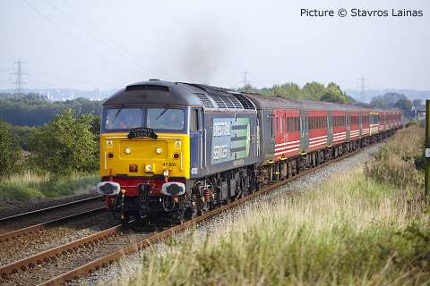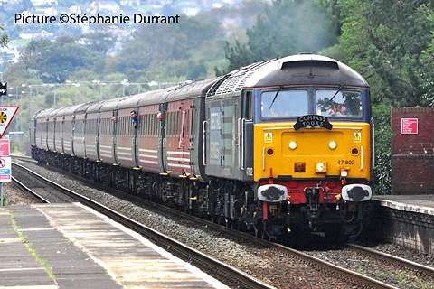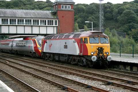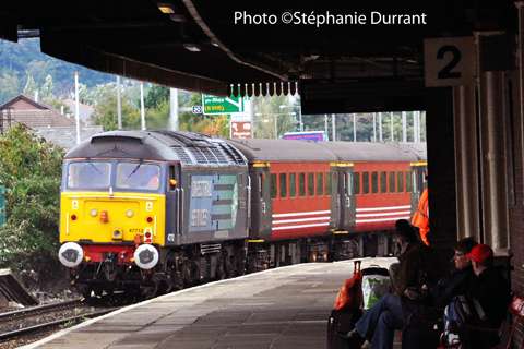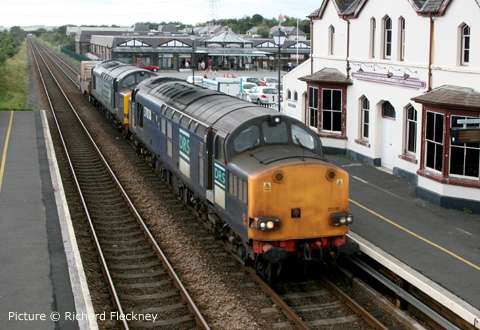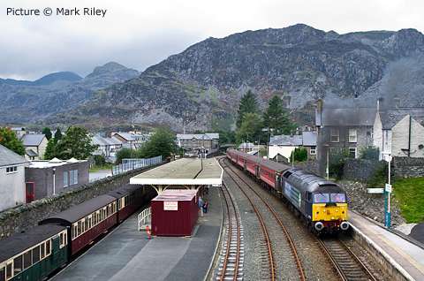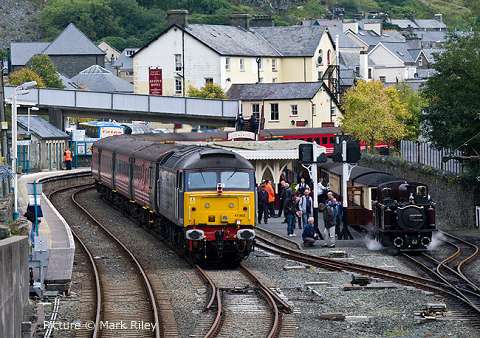 Some marvellous pictures were among the many sent from the 10-12 September Steam Gala at the Llangollen Railway. Above is a YouTube slide show of selections from the three days, with soundtrack from one of Charlie's favourite albums. You can see the pictures at a larger size if you go to the Youtube website.Our thanks to all who sent pictures and of course, as always, to everyone at the Llangollen Railway. The new bridge in Llandudno![]() 2D15 11:46 Blaenau Ffestiniog to Llandudno approaching the recently-opened new Maesdu bridge, as seen from Conwy Mountain on 17 September (Peter Lloyd) Manchester Model Railway Show 2 - 3 OctoberThis year the annual Manchester Model Railway Exhibition, has a new venue, the Armitage Centre, Moseley Road, Fallowfield, Manchester M14 6ZT. Opening hours are 10am to 6pm on Saturday 2 October and from 10am to 5pm on Sunday 3 October. (No Friday evening opening.) The Armitage Centre is a University facility about three miles south of the city centre in Fallowfield. If arriving by train from North Wales, get off at Oxford Road station, walk down the approach and cross the road to the bus stop on Oxford Road outside the main entrance of the Palace Hotel. Buses 41, 42, 43, 44, 46, 48, 140, 142 and 143 from there go to 'Owens Park' in Fallowfield which is the nearest stop for the Centre. A Manchester PlusBus ticket bought with your train ticket will cover the bus fares. (Welsh over-60s bus passes are, of course, not valid in England.) Here's the full information about the exhibition. The Snowdon Mountain Ranger![]() 22 September saw North Wales visited by a Compass Tours excursion 'The Snowdon Mountain Ranger' from Burnley Manchester Road, Rose Grove, Accrington, Blackburn, Cherry Tree, Bamber Bridge to Blaenau Ffestiniog are return. Above, the train passes Hapsford near Helsby at 10:10, with 47 802 Pride of Cumbria in the lead. ![]() Colwyn Bay (Stéphanie Durrant). ![]() On the rear was 47 712 Pride of Carlisle (Stéphanie Durrant) ![]() Above, with 47 712 now on the front after the reversal at Llandudno Junction, the train arrives a little late at Blaenau Ffestiniog after being delayed by an Arriva service train. A nice bit of 'clag' from the 47 heralds its arrival. (Mark Riley) ![]() Passengers disembark and cross the footbridge for an afternoon jaunt on the Ffestiniog Railway. (Mark Riley) ![]() The empty train was shunted into a holding position on the centre road for the afternoon, providing an interesting comparison between standard and narrow gauge, steam and diesel. Merddin Emrys is about to leave with the 13:40 Blaenau Ffestiniog - Porthmadog. ![]() In the centre of the eleven coach consist was InterCity liveried Mark 2F Buffet First 1203; many readers will have fond memories of these RFB vehicles, which were converted by British Rail from open firsts for use on Cross-Country trains, later passing to Virgin Cross Country - your editor remembers comfortable holiday journeys to Devon, and also some particularly notable runs behind Deltic D9000 Royal Scots Grey. The other 10 coaches were red and black ex-Virgin Mark 2s. For the record, these were 9507, 6054, 5987, 5952, 6024, 3304, 3386, 3344, 3325 and 3333. ![]() 47 802 would be the lead loco for the return as far as Llandudno Junction later in the afternoon. (Mark Riley) Railway Society Meeting 5 OctoberThe opening meeting of the season for the Railway Correspondence and Travel Society takes place on Monday 4th October at 7.30 p.m. in the upstairs room at the Lever Club, next to Port Sunlight railway station. The evening will have Harry Madden, a well known Cheshire bookseller, as the guest speaker presenting his Memories of Merseyside Transport. Visitors will be made most welcome after making a £2 donation. Telephoned enquiries about this meeting can be made to 0151 – 608 4296. At the Welshpool and Llanfair Gala![]() The Welshpool and Llanfair Light Railway held a Steam Gala event on 3-5 September, featuring both the railway's original Beyer Peacock-built locomotives. Above, 823 Countess prepares to move empty coaching stock at Welshpool Raven Square with all three of the recently-built replicas of the line's original coaches. The originals, built by the Pickering company, were scrapped many years ago when passenger services on the line were withdrawn by the Great Western Railway. (David Parry) ![]() Sister engine 822 The Earl arrives at Llanfair Caereinion with the 12:05 goods train from Castle Caereinion on Friday 3 September as the signalman prepares to collect the single-line token. The picture is from the picnic area which offers a superb view of trains arriving and locos being serviced. (David Parry) ![]() Visiting loco Chevallier (two 'l's is the correct spelling) taking water at Welshpool, Saturday 4 September. This Manning Wardle 0-6-2T of 1915 was built for the Admiralty's Chattenden and Upnor Railway, was sold to Bowaters' Paper Mill railway in Kent in 1950, and later worked the first passenger train on the railway at Whipsnade Zoo. Sold to Bill Parker in 2006, it has been given a full overhaul over the last year at his Flour Mill workshop in the Forest of Dean. (David Parry) ![]() Teething troubles: Chevallier 'ran hot' (overheated bearings) on both days and consumed copious amounts of oil; the above view by Glyn Jones shows some attention being given to the mechanical lubricator. She slipped to a stand on the notorious Golfa Bank on Sunday in the rain and failed to move after stopping at a level crossing further up the line. This necessitated sanding of the track by a member of the mobile Permanent Way staff before she finally got away. ![]() Above, Romanian loco 764 425 takes water at Welshpool, 4 September (Glyn Jones). This loco seems to be jinxed as it failed yet again on the Saturday evening and was seen next day dumped out of steam at Llanfair Caereinion. ![]() Former Bowaters 0-4-4-0T Monarch was on display at Welshpool (Glyn Jones) ... ![]() ... standing on rails rolled by the Do