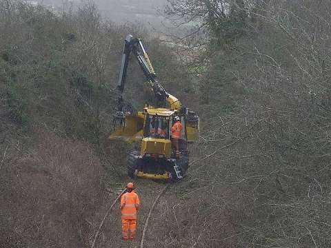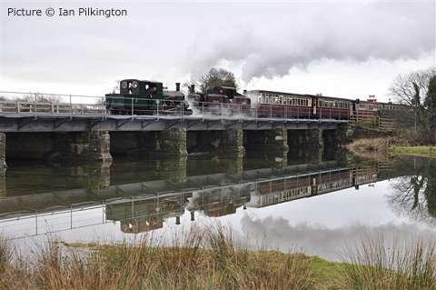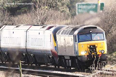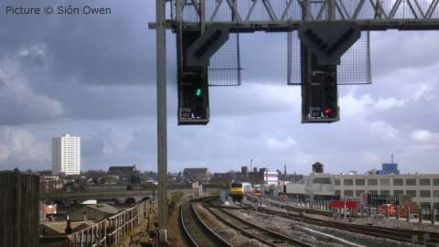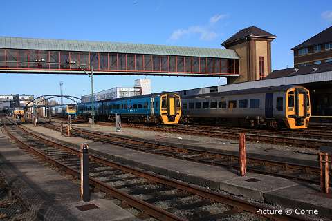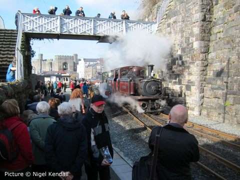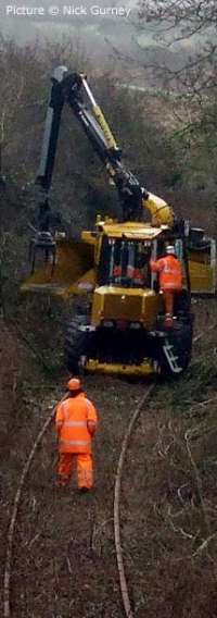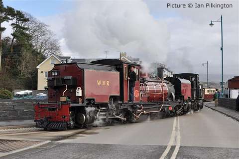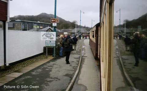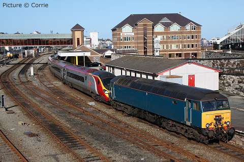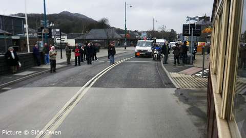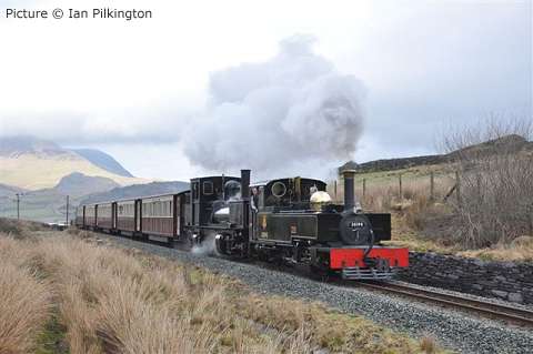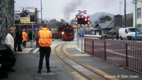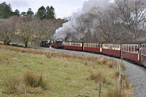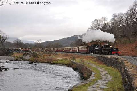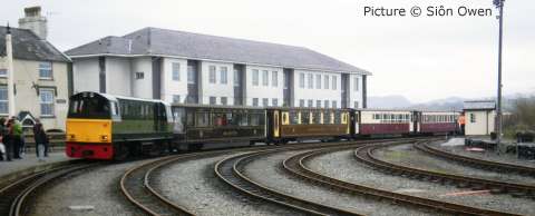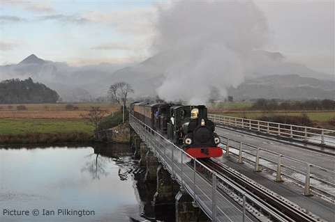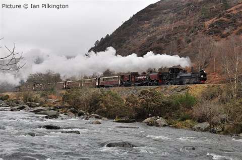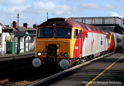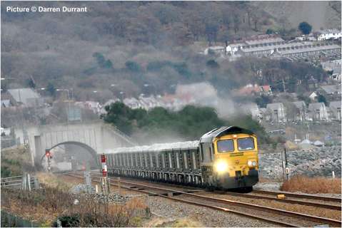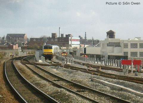 Unlike the trains you are used to, the doors on these trains are not automatic. When boarding and alighting you will need to open and close them yourself. So, if you're the last on or off the train at your stop, please remember to 'slam' the door shut behind you, after ensuring there is nobody following you. This will help avoid delays to your service. Please pick up a leaflet for more details about the effects on your regular journey. Diplomacy, Arriva styleThe Operations Director of Arriva Trains Wales, Peter Leppard, interviewed on the radio as the drivers' strike approached, was asked why train drivers in Wales should be paid less than train drivers in other parts of the UK. There is a great difference between driving high-speed trains and local ones, he opined. 'It's the difference between driving a jumbo jet and a milk float.' Not a good way to win friends, one might think. ![]() Trains resting at Holyhead, 28 February: no Arriva trains ran, but Virgin did continue to serve North Wales. Picture by Corrie. Welsh Highland all the way![]() The February half-term week saw Welsh Highland Railway trains operating into Porthmadog Harbour for the first time in public service, while the Ffestiniog Railway's line was blocked for the construction of a bridge over the new road by-pass. Nigel Kendall was aboard the first train from Porthmadog to Caernarfon, seen above at Rhyd Ddu. ![]() Above: preparing for the return working at Caernarfon. Nigel writes: 'Nigel writes: 'I know Blanche ran services on the WHR when first opened to Dinas but I think this is the first time a double Fairlie in the shape of Merddin Emrys, has been to the town, unless someone knows differently? Next, some reports from the first few days, starting with Ian Pilkington's view of 19 February: ![]() Saturday 19 February: Blanche & Merddin Emrys cross the Glaslyn at Pont Croesor with the 10:45 opening special from Porthmadog to Caernarfon. ![]() K1 & 138 in the Aberglaslyn Pass with 11:00 opening special from Caernarfon to Porthmadog. ![]() 138 & K1 leave Porthmadog with the 14:15 return special to Caernarfon. ![]() Blanche & Merddin Emrys approach Rhyd Ddu with the 14:30 return special Caernarfon - Porthmadog. Sunday 21 February: by Ian Pilkington ![]() Blanche & Merddin Emrys climb the 1 in 40-48 section through Beddgelert Forest with 10:45 Porthmadog - Caernarfon, the first public train over the complete railway. Monday 21 February, by Ian Pilkington ![]() Lyd & K1 approach Rhyd Ddu with the 11:00 Caernarfon - Porthmadog. ![]() Lyd & K1 approach Pitts Head Summit. ![]() Lyd & K1 enter the Aberglaslyn Pass. ![]() Blanche & Merddin Emrys cross the Glaslyn at Pont Croesor with the 1430 Caernarfon-Porthmadog as the peak of Cnicht emerges from the clouds. Tuesday 22 February by Siôn Owen Garratt 138 arrives at Porthmadog on the 11:00 from Caernarfon, negotiating the street-running section. ![]() Diesel Vale of Ffestiniog was on hand for the reversal move into the platform. The street scene from aboard the 14:15 to Caernarfon. Leaving the street, and heading for the main line crossing. Class 37/4 newsRecently, DB Schenker advertised all its 13 remaining Class 37/4 locos for sale, most of them having been out of service from some years: 37 401, 402, 405, 406, 410, 411, 416, 417, 419, 422, 425, 426 and 427. Several of these were very familiar in North Wales in the 1990s; it appeared in early February that they had all been sold, DRS being the most likely buyer. Further developments in the story will certainly be reported as they happen on the excellent 'End of the Line' website www.wnxx.com. Another look at 31-12-2000 - by Chris Morrison![]() 'Dave Trains' great article (3 January issue) on 37 429's last official run up the coast on 30 December 2000 prompted me to look for the transparencies I took that day. After searching the 'vaults' I found them. Above, 37 429 Eisteddfod Genedlaethol runs into Stafford on 1G96 08:53 Holyhead- Birmingham New Street. ![]() Cameras at the ready on the train, as 37 429 waits for the off at Stafford on 1G96 08:53 Holyhead - Birmingham. ![]() 37 429 heads 1D71 12:07 Birmingham - Holyhead into Prestatyn, with Dave Trains driving, past the original station building. ![]() 37 429 powers away westward from Rhyl with 1D71. Picture miscellany![]() 57 308 Tin Tin and Pendolino 390 026 forming the 08:50 London- Holyhead 'drag' head across Anglesey, passing Llanfair PG (Richard Fleckney) ![]() Saturday 26 February saw 57 313 on the eastbound 'drag' seen above ready to depart Holyhead (Picture by Corrie) ... ![]() ... and hurrying through Llanddulas (Darren Durrant) ![]() Train 6H45 Penmaenmawr - Guide Bridge, with 66 545 The Drax Flyer crawls through Llandudno Junction at 14.55 on 22 February with a ballast train for Guide Bridge (Peter Lloyd) ![]() Great name for a loco (?). Picture by Peter Lloyd. ![]() Stone train. 25 February (Darren Durrant) ![]() The Network Rail track recording train, 1Q06, at Bidston, 24 February, 21:22. Lead loco is 31 233 (Stavros Lainas) Sealand narrow gauge mystery - by John MurrayOn 22 February I was on my way to an appointment at Deeside industrial Estate at Sealand. Alighting from the bus on Welsh Road I set about walking the short distance along the Millennium Greenway route which uses the track bed of the former Great Central Railway Chester Northgate to Hawarden Bridge line towards the estate. ![]() First I came across a surviving lamp standard from the former Sealand station. This halt opened as Welsh Road in 1918 for military personnel at the adjacent RAF Sealand base only, before becoming a public station the following year (above). ![]() Just beyond the station site the remains of goods yards and the remains of a set back siding leading into the base was evident on the left. Now surrounded by trees, a gate marks the point where the standard gauge line entered the camp. (above). ![]() About 250m further towards Hawarden Bridge, I came across narrow-gauge railway buffe