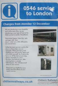 Above: a Youtube slideshow of some view by 'Corrie' taken in early February, including a visit to Holyhead by a Class 70. Cefn freight resumesThe Cefn viaduct on the Shrewsbury - Wrexham line is now open again to all traffic, as from 24 February. Wrexham and Shropshire in exile - report by Sion Owen![]() Wrexham & Shropshire rolling stock continues in use on a Chiltern Railways diagram: the pictures from 22 February show the view from the platforms at Birmingham Moor Street of the train stabled in the sidings. ![]() Unfortunately the only way to get a close shot of it was from a train to Small Heath and back but I didn't get anything worthwhile from that. A poster (left) at Moor Street station explains to passengers how to use the train: We are introducing a new