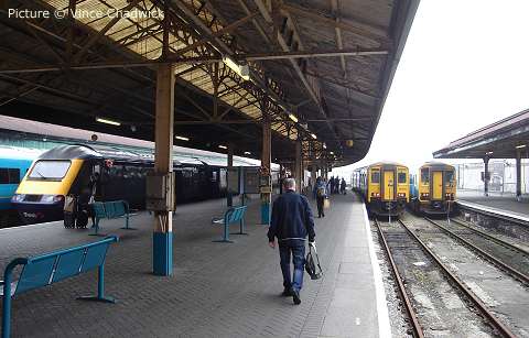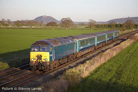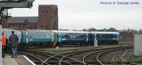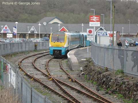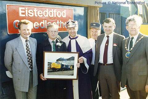![]() 57 313 at Hargrave with the evening Cardiff - Holyhead express, 8 April (Stavros Lainas). 37 429 in its heyday![]() Further to our previous adulation of 37 429 Eisteddfod Genedlaethol, by courtesy of Dafydd Roberts and the National Eisteddfod archives we can bring you some pictures from summer 1987 when the loco starred in a naming ceremony. The first two show it outside (we believe) Cardiff Canton diesel depot having been prepared for the big day. ![]() This was the second name carried by 429; for a few months in 1987 it carried the Sir Dyfed / County of Dyfed plates transferred from 37 180. In order for 429, at the time Cardiff-allocated passenger loco, to become the Eisteddfod celebrity, they were removed, and later appeared on 37 799. ![]() Here's the naming ceremony, carried out on 4 August 1987 on the station at Porthmadog, the town hosting the National Eisteddfod that year. The presentation photograph was clearly taken at the same time as the one above. Dafydd Roberts writes: ' I can identify Dafydd Elis Thomas (who was at that time MP for Meirionnydd) on the left hand side; in his Eisteddfodic gown is John Gruffydd Jones who won the Crown at that Eisteddfod. But who are the others?' ![]() Any identifications would be very very welcome. Notice how the loco side was so highly polished that the assembled spectators can be seen reflected. We don't expect any identifications of any of them ... but was any reader present on the occasion? The ceremony was conducted in Welsh, according to Marsden & Ford's Encyclopaedia of Modern Traction Names. ![]() A couple of years later, 429 was transferred to the Railfreight sector, and repainted in 'construction' colours. In 1993 it was chosen to return to passenger work, on the North Wales Coast, and as such is seen in Larry Goddard's picture (from the website archive) at Conwy in early 1993. Note that the nameplate is missing. ![]() Finally, one from our own archives, showing 429 after repainting in Regional Railways colours, and its nameplates restored with a black background. The place is Manchester Piccadilly on arrival with the 'Irish Mancunian' from Holyhead. Date unknown, but quite early in the 'North Wales 37' era as the first coach can be seen to be still in the modified Network SouthEast livery in which a number of these vehicles ran after being transferred from the London - Exeter route. Today, neither the loco nor London Road signalbox, seen in the background, still exists. First refurbished 158 enters traffic![]() Fast-forward to 2011, and another shiny train posing at Cardiff Canton depot. Thanks to Ben Davies of Arriva Trains Wales for this view of 158 840, the first Class 158 to complete the Welsh Assembly Government -funded makeover programme, the work being done by Arriva at their LNWR works in Crewe. ![]() On 15 April the unit entered service, on the Cambrian lines. Above, it stands in Platform 5 at Shrewsbury (Richard W. Jones) ![]() The interior features the high-backed seats which have been used in recent refurbishments by other train companies, mostly arranged in airline' format. The upholstery pattern matches that being installed in the Class 175 units (Richard W. Jones) ![]() Particularly welcome is the opening out of the bike space. The old version (left) was a nightmare to manoeuvre two bikes into; the new version (right) is a vast improvement. ![]() Wheelchair space (Richard W. Jones) ![]() The Government gets a credit in the livery, which otherwise is the same as that first seen on the Class 57/3 locomotives. ![]() Arriving at Shrewsbury from Birmingham; 158 820, attached, shows the previous Arriva livery (George Jones). More pictures next time. Club 55 to the Heart of Wales - with Vince ChadwickOn 29 March, a friend and I decided to make use of the ATW 'Club 55' offer of any destination on the ATW network for £15 return - £13 with a senior railcard. But where to go? We live in Wilmslow, so we are on the ATW Manchester to South Wales route and decided on Swansea as our destination. Outbound, we'd use the picturesque and delightful single-track 'Heart of Wales' line. We'd return by the faster direct route via Cardiff and Marches through Hereford and Ludlow. ![]() We caught the 07:47 class 175 Milford Haven service from Wilmslow as far as Shrewsbury, where we boarded the lightly-loaded 09:05 train formed of 150 262 (above) for the Heart of Wales line journey. This follows the main line to South Wales as far as Craven Arms, where it turns sharp right onto the delightful single track Heart of Wales line. The weather was dry but misty so we didn't get all the glorious views that this line usually offers. However, the journey was delightful. ![]() The tiny halt at Dolau has an active group of station-adopters, who have won awards for their care of the place, and provide this interesting exhibit on the platform. ![]() The 121 miles between Swansea and Shrewsbury includes the Radnor Forest between Llandrindod Wells and Knighton, the Eppynt hills near Llanwrtyd Wells (above Llanwrtyd station, with 150 227 crossing on a northbound train ), the meandering river Tywi between Llandeilo and Llandovery, and the Loughor estuary near Llanelli. ![]() The view from Cynghordy viaduct, which has eighteen arches built in sandstone and lined with brick. It is 259 m long on a gentle curve, at a height of 31 m above the valley. ![]() The single line between the crossing loops on this route is protected by tokens, which are exchanged by the train crew from standard 'electric key token' instruments in on-station sheds such as this one at Llandovery, under the overall control of the signalman at Pantyffynnon signal box. [See the article on 'No-Signalman Token Remote' at the superb www.railsigns.co.uk website.] ![]() At Llanelli the train reversed for the short leg to Swansea (above where we arrived several minutes early, at 12:55, just in time for a 'swift pint' in Swansea. ![]() The return journey was on the 13:55 class 175 to Manchester