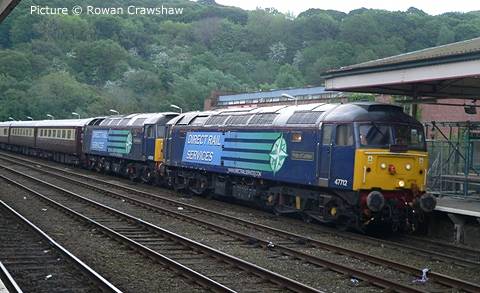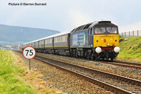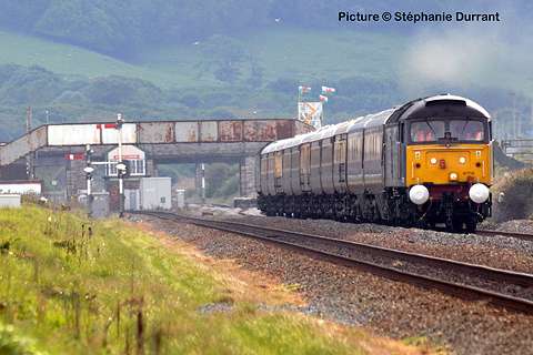 ![]() Tim Fenton took this picture at Crewe on 23 April, as enthusiasts and passengers gathered round 5029 Nunney Castle working the 'Great Britain IV' national steam tour. Lurking behind are one of the new electric trains being built at Derby for the Stansted Express, which have making test runs in the area, and DRS diesel 20 308. Fire Train on the Ffestiniog - report by Ken Robinson![]() Further to earlier that lineside fires are a problem in this dry weather, here is a shot of the Ffestiniog Railway's 'Fire Train' which had go up the line on Sunday 1 May to deal with a fire between Tan-y-Bwlch and Dduallt - trains were terminated at Tan-y-bwlch (where this photo was taken) and there were some delays. Road fire engines find it difficult to access many parts of the upper reaches of the FR. Cambrian Coast jottingsCambrian Coast trains take a (slightly) different route from 9 May, as a short section of line near Minffordd has been relocated over the weekend to allow for the Porthmadog by-pass road. Following on from the detached brake disk on a Class 158, mentioned in an earlier issue, we hear that four other 158's have been found with fractures in the lugs of the discs; it is said that all four had been serviced at Arriva's LNWR Crewe facility. Will the Cambrian Coast steam trains run this summer? Nobody is exactly saying 'no' in public, although an item in Railway Magazine suggest that the service is 'hanging by a thread' as the long-proposed fitting of the ERTMS signalling system to a coach is now not taking place; elsewhere we read that it has been costed at £5 million. Apparently it there is an idea that a special arrangement could be made to allow the train to run without ERTMS, and risk assessments, etc. are being done. Meanwhile the operator's website still goes with 'coming soon.' It's all rather last-minute for anyone looking to book a holiday. How about some Llandudno - Blaenau Ffestiniog shuttles as a substitute? Northern Belle to BangorSaturday 7 May saw a 'Northern Belle' luxury excursion run from York via Manchester Victoria to Bangor (where the participants were to be treated to a tour around Penrhyn Castle in the rain) and back. The pictures from our contributors include some particularly fine views. ![]() Approaching Llandudno Junction (Garry Stroud). Traction was provided by DRS, as is normal since they recently won the contract previously held by EWS/DB Schenker. The locomotives were 47 712 Pride of Carlisle and 47 832 Solway Princess which double-headed the train on the westbound journey. ![]() Penmaenmawr station (Stéphanie Durrant). ![]() Both locos were clearly under power as the train passed Llanfairfechan. Picture by Stavros Lainas. ![]() Arrival at Bangor (Rowan Crawshaw) ![]() The train ran empty to Holyhead for servicing: it is seen above passing Llanfair PG (Richard Fleckney). The yellow line here is unusually far back from the platform edge, perhaps because of the non-railway tourists who tend to wander about here trying to say the long name - however, some of those photographers in the picture are a little further down the platform ramp than we'd like to see. ![]() The train heads back to Bangor, seen passing Rhosneigr at 17:00. Only 47 712 is under power, with 47 832 'dead' on the rear. (Stavros Lainas). ![]() 47 832 is on the rear as the train departs from Bangor through the splendid 'Egyptian' portal of Bangor Tunnel, designed by Francis Thompson, who also designed the original station buildings on the line, including Bangor, and the towers of the Britannia Bridge. Picture by Rowan Crawshaw. ![]() Llandudno Junction at 17:55 (Peter Lloyd) ![]() Abergele, seen by telephoto from the path from Belgrano village to the beach (Stéphanie Durrant). ![]() A wider shot from the same point (Darren Durrant). Diversion: How did Belgrano get its name? Its not Welsh: apparently the village was founded in 1930, in what was then an open field, by a retired seaman, Captain Robert Roberts. The original Belgrano village was just three streets, including the delightfully 1930s-named 'Sunray Avenue'. Does anyone know more about its history? The captain must have known the port and naval base of Puerto Belgrano in Argentina, which itself had been given that name in 1926 in honour of the General of that name, whose name was also also given to a second warship bought by the Argentinian navy from the USA in 1951. What happened to the ship in 1982 is a matter of history. Learning on the Rhyl Railway - report by Ken Robinson![]() I was one of the course leaders, on the 2011 Heritage Railways Course at Plas Tan-y-bwlch, the Snowdonia National Park study centre. We had a great week - good weather, and interesting trains as most railways had a gala of some sort! We enjoyed in particular (it was a first time for this course) the Rhyl Miniature Railway, whose operator Simon Townsend had been to talk to us the previous evening. The welcome we had was great, and we had a fantastic time - run-pasts, driver experience, and plenty of free tea! The pictyre shows one of several trips we had on this mile-long railway which took me back 45 years! Note: the RMR opened in May 1911, and is thus celebrating its centenary this year. On 28-30 May 2011 there will be holding a Centenary Gala, the line's biggest Gala ever, with a host of family attractions. Full details on the RMR website. Freight Trains![]() Colas Rail locomotive 66 845 works timber train 6Z37 Ribblehead - Chirk, with 13 loaded KFA wagons, across the Roodee Viaduct by Chester racecourse on Bank Holiday Monday, 2 May (Mark Riley) ![]() Tim Rogers captured the same train a little further on its journey, on the single-line section at Rossett between Saltney Junction and Wrexham. This train falls in the 'runs when required' category. ![]() 4 May on the 'top line', and 66 046 heads under Slack Lane, Hawarden, with 6M76 03:04 Llanwern - Dee Marsh, carrying steel coil to receive a protective coating at Shotton works (Tim Rogers). ![]() Clas