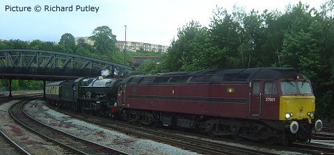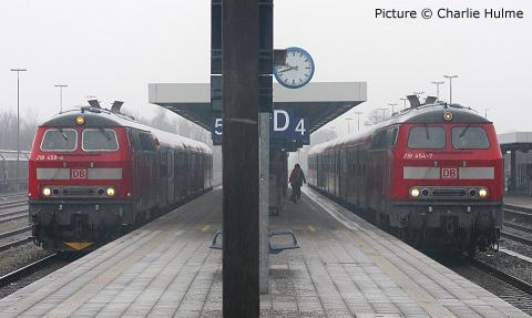 ![]() 6940 departs Llangollen with its second working, the 12:00 service to Carrog, on 5 June (Mark Riley). Shorter issue than usual this week due to holidays. - Charlie Saturday 4 June: two locos extra, minus one![]() Saturday 4 June saw Arriva bring into service again their 'rugby special from Holyhead to Cardiff and back, using an augmented version of the Monday - Friday express consist. The morning train was formed of six coaches, running 1V41 08:08 Holyhead-Cardiff with 57 313 hauling and 57 315 switched off at the rear to bring the train back later. The picture above, by M.Lloyd Davies, shows it near Valley soon after departure. ![]() Sunny Abergele (Stavros Lainas) ![]() Chester (Chris Morrison). ![]() Approaching Crewe, past the Heritage Centre ... ![]() ... 57 315 trails into Crewe (Mark Riley). ![]() Unfortunately, the usual Saturday 'Pendolino drag' along the coast failed to materialise, as 57 308 Tin Tin, seen here in Mark Riley's picture close to the Crewe Heritage Centre, failed to couple to the Pendolino at Crewe (reason so far unknown). After 15-20 minutes of trying, they gave up and 57 308 was seen heading south out of Crewe soon afterwards. ![]() 1D83 from Crewe - Holyhead was worked forward by 221 101 Louis Blériot instead (Mark Riley). ![]() Llanfair PG (Stéphanie Durrant) ![]() Also on the coast that day was 221 115 Polmadie Depot in its special Bombardier livery (Stavros Lainas). ![]() Later in the day, 158 822 and 158 839 depart Rhosneigr past grazing horses with the 17:30 Holyhead Cardiff (Chris Morrison) The return of 6940 at Llangollen - report by Mark Riley![]() The Llangollen Diesel Group's Class 37 6940 returned to traffic for the first time this year on 5 June , following repairs due to oil contamination. It worked four round trips between Llangollen and Carrog, and on its first working of the year, it as seen here departing Berwyn with the 10:15 Llangollen - Carrog. King on the Devonian (sort of) - report by Richard Putley![]() On 4 June I went to Bristol Temple Meads to see the above named tour, which had been operated by West Coast Railways. It had started from Birmingham behind a diesel loco, with 6024 King Edward I taking over at Bristol Temple Meads for the onward run to Plymouth. But due to the number of lineside fires which 'KE1' started on the way out, Network Rail decided that the tour would be piloted by a diesel loco on theway back. This fell to 57 601, seen here entering Bristol Temple Meads. On arrival there, both locos were uncoupled and 'KE1' ran with its support coach to Barton Hill Depot under its own steam. 57 601 then re-coupled to the train and took it back to Birmingham. DB and Arriva loco-hauled - report by Charlie Hulme![]() For a change, some pictures from our expedition to southern Bavaria in March 2011. Above is a view of the suburban platforms of Munich Hauptbahnhof, shown two of the older-type trains which are still very much in use in the area. Both of formed with push-pull rakes of 'n-wagen' coaches, a type built in large numbers between 1958 and 1980, and formerly known as 'silberling' of 'silver fish' due to their original unpainted metal finish, replaced on the refurbished survivors by standard Deutsche Bahn colours. On the left is a Class 111 electric loco, on the right a Class 218 diesel-hydraulic; our journeys over the few days we stayed were all made in diesel trains, as the lines to the south-west of Munich towards the Alps and Lake Constance have key to be electrified. ![]() Our holiday hotel was in the little spa town of Bad Wörishofen, served by s branch shuttles which connect with the main at Buchloe, seen above, a busy junction station well worth a half-hour of train-watching. As well as DB trains, the area is also served by the franchised 'Alex' (Allgäu Express) regional expresses from Munich which are a very traditional loco-hauled operation, using modern diesel-electric locos. 223 066 is one of a feet of twelve. The train runs from Munich to Lindau on Lake Constance, with a portion detached at Immenstadt for the winter resort of Oberstdorf. Arriva have run the service for some years, and the trains still carried their logo while we were there, although weeks earlier, under the terms by which All Arriva's German operations were sold at the end of February 2011 to a new company, Netinera, which is owned by a group including the Italian State Railway (FS). ![]() This Munich-bound DB regional train, loco 218 415 on the rear, stands at Buchloe as passengers interchange to and from a diesel railcar set which which will continue to Augsburg. ![]() A remarkable feature of Buchloe is the simultaneous parallel departure of two diesel loco-hauled trains. It is 09:52, and 218 459 on the left heads the 09:47 departure to Hergatz while 218 454 is on the 09:47 to Füssen. ![]() Your editor at Füssen, having just arrived behind 218 486. Picture by Joanna Hulme. ![]() From Füssen station a well-planned bus service heads for the village of Hohenschwangau, where one can walk of take the horse-bus to the famous castle of Neuschwanstein, built in the 19th century for King Ludwig II of Bavaria. Above is the view of the castle from the village ... ![]() ... and here is the village from the castle, showing the older castle of Hohenschwangau on its hill. ![]() Back to railways, and the Allgäu Express. A second loco backs on to the Oberstdorf portion, and in recent times a regular performer has been 2143.18, see here at Oberstdorf. This diesel-hydraulic machine is one of 77 built in the 1960s for the Austrian Railways, and is now owned by the Staudenbahn, a small tourist train company based near Augsburg. Arriva had two of their three 2143s on hire for some time, we understand that the current contract extends to July 2011. ![]() 2143.18 departs from Oberstdorf against the mountain backdrop (Joanna Hulme). Of you want to see all these loco workings, go soon, as no doubt they will be replaced by modern 'units' before long, as has b