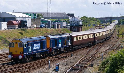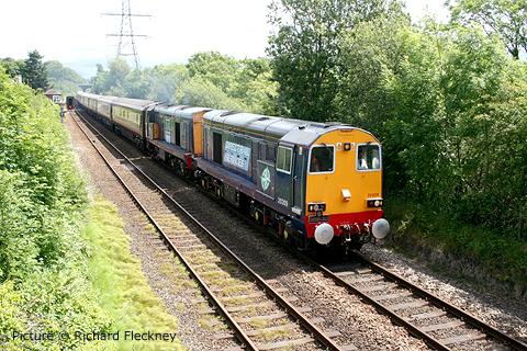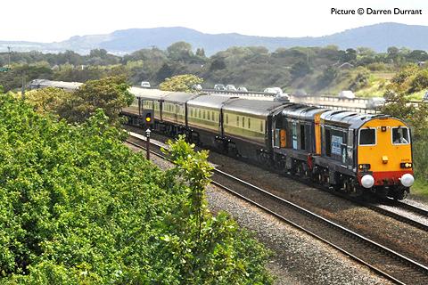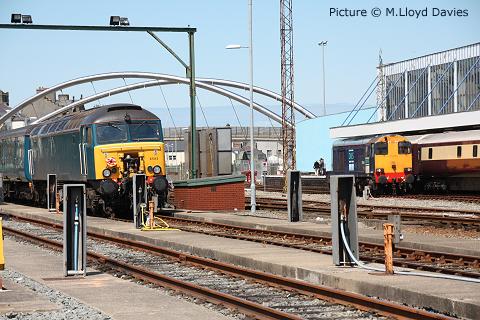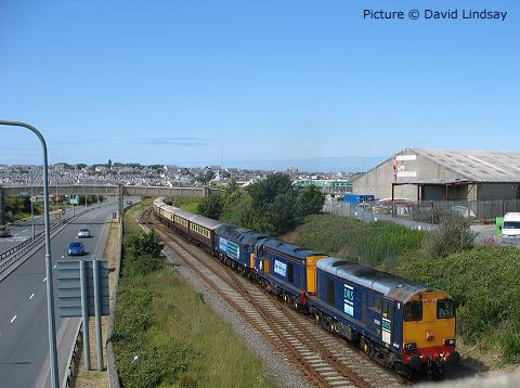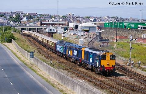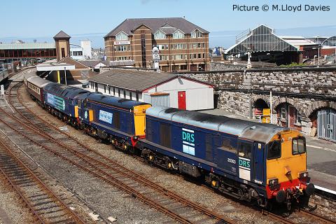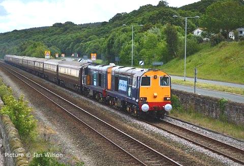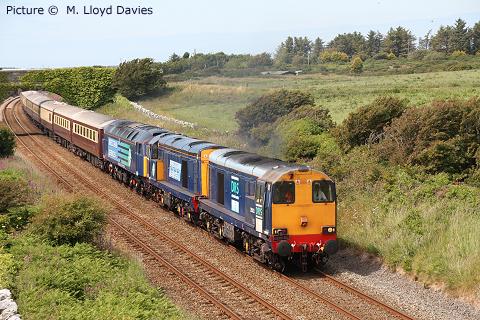![]() The Northern Belle Father's Day special at Conwy, 19 June. Picture by Jack Bowley. See below for a detailed report on this train. Apologies for the late arrival of last week's RSS Feed. A problem occurred which I couldn't resolve while away from home.- Charlie Class 92 Pretty in Pink![]() The second Class 92 electric to wear DB Schenker colours is 92 042, photographed by Tim Fenton towed past Crewe station to the International Electric Depot on 13 June. Pullman 47 on freight - report by Mark Riley![]() What might have been expected to appear on the Father's Day special (see below), but didn't, was DRS loco 47 790, recently repainted to match the Northern Belle coaches. However, it was spotted on 9 June working an additional freight! I didn't think my first sighting of this 47 was to see it on anything other than a Northern Belle working, but at Acton Bridge (above) 4 7790 passes through the station with 4Z88 Daventry - Carlisle Kingmoor. (Thanks to all 'gen posters' for information on this working.) Locos on 15 June: Pictures by M. Lloyd Davies57 313 in the evening sunshine passing Gaerwen's very rusty Up Distant signal on the last leg of the journey from Cardiff Central to Holyhead. ![]() 31 285 on Network Rail measurement train 3Q83 takes the up main line through Bangor station, returning to Crewe after stabling all day in Bangor Carriage Sidings. Father's Day Northern Belle![]() The 'Father's Day Northern Belle' luxury excursion to Holyhead on 19 June was originally advertised for steam haulage; when DRS took over the Northern Belle contract from DB Schenker, they found themselves unable to use a steam loco, so 'interesting' diesel traction was promised instead. On the day this turned out to be a pair of Class 20s, 20 209 and 20 303, with 47 818 on the rear to provide train heating supply. Above, the train rolls through Chester; note the staff sleeping car behind the locos. Picture by Bob Greenalgh. ![]() Ian Wilson captured the train heading west (above) through Ffynnongroyw west of Chester. ![]() Abergele (Rowan Crawshaw). 20 309 is leading. ![]() Llanddulas (Darren Durrant) ![]() Llanfair PG (Richard Fleckney) ![]() Crossing the Stanley Embankment on to Holy Island (M. Lloyd Davies). ![]() Arriving at Holyhead (Mark Riley). ![]() The train has arrived in Holyhead, and shunting moves ensue. As usual, because the 'neck' up to the buffers is so short, the locos have to be separated to run round the train individually. 20 309 runs forward (M.Lloyd Davies)... ![]() ... to set back on to the train (Stéphanie Durrant) ![]() 20 303 follows suit, passing 57 313 stabled in the carriage sidings with the stock for the weekday Cardiff express (M. Lloyd Davies). ![]() Ready for re-coupling, watched by a 'gallery' from the road bridge (Darren Durrant). ![]() Ready for departure. 20 303 still wears the original version of the DRS livery (M. Lloyd Davies). DRS Class 20s are of course familiar on this line due to their activities on the flask trains to Valley, but when was the last time A Class 20 was seen at Holyhead? Could it have been back in the days when Hunslet-Barclay used them on weed-killing trains? ![]() The trio attack the gradient out of Holyhead, showing off their three different livery styles (Mark Riley). ![]() Climbing out Holyhead (David Lindsay) ![]() Valley, seen from the footpath which crosses the reversing triangle normally used by DRS flask trains (Darren Durrant). ![]() Heading home through Llanfairyneubwll (M. Lloyd Davies) ... ![]() ... and Llanfair PG (Richard Fleckney). Unfortunately, the fathers' day went somewhat pear-shaped later in the journey, when the train came to a stand at Rhyl where 20 303 was declared a failure. ![]() The two 20s were detached and headed for Crewe, propelled by 20 309, pictured by Bob Greenhalgh at Beeches Farm bridge. ![]() 47 818 took the train on alone, now running late. Above, it passes Beeches Farm bridge (Bob Greenalgh). Our thanks as always to all who sent reports and pictures, to all concerned in the operation of the train, and indeed to all the families who treated their fathers to this expensive treat and made it all possible! Theft at the Conwy Valley Railway MuseumPolice are investigating the theft of "irreplaceable" model railway locomotives valued at £30,000 in a raid on the Conwy Valley Railway Museum by Betws-y-Coed, overnight on Wednesday 15 June. Thieves broke in by smashing a rear outer door; CCTV cameras were sprayed with paint by the thieves. Marion Turner, who manages the museum and shop, told the press: 'We have lost a lot of rare, valuable and irreplaceable stock and the police have told us that it looks very much like a well-organised crime.' Items stolen include two rare German-made LGB steam-type engines worth £2,000 each, together with another collectors' item no longer in production, an LGB garden-size "Crocodile" locomotive. Five Bassett Lowke model engines produced by Hornby in limited numbers - and worth between £500 and £750 each - were also taken, along with dozens of other Hornby boxed locomotives and expensive coach sets. Anyone with information about this crime, or who is offered any models in suspicious circumstances, is urged to contact PC 659 Andy Davies at Llanrwst Police Station on 101 if in Wales, 0845 6071001 (Welsh line), 0845 6071002 (English). Alternatively, text 66767 or call Crimestoppers Wales on 0800 555111. 'Tug' news![]() Class 60 locos are always popular, and Andrew Vinten was at Plumley to take this view of 6H03, Oakleigh - Tunstead empty stone hoppers with 60 049 in charge on the morning of 9 June, having been recessed in Northwich yard overnight for some reason. ![]() It's rare that Class 60s are seen on the North-South Wales Steel trains (Dee Marsh-Margam/Llanwern) these days, but on 20 June, 60 011 in DB Schenker livery worked 6M76 Llanwern - Dee Marsh loaded steel coils and the 6V75 Dee Marsh-Margam empty wagons. Seen working 6V75, 60 011 approaches Wrexham General with a lig