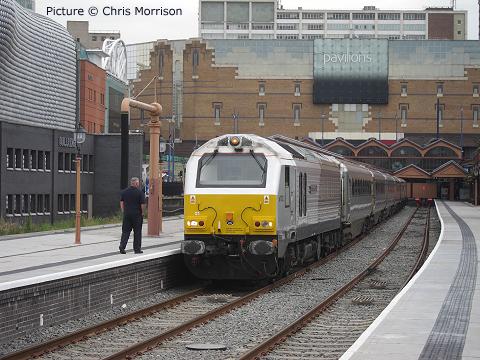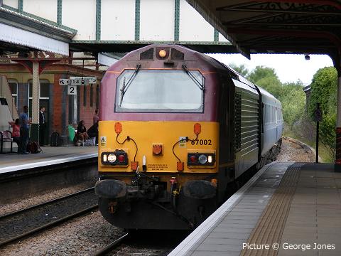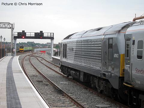 ![]() 57 309 Brains arrives at Llandudno Junction with the Saturday 'Pendolino' on 2 July (Darren Durrant) Rail Blue at Wrexham - report by George Jones![]() 67 002 (above) running into platform 1 southbound at Wrexham General with an excursion on Friday 1 July about ten minutes early and about to be held by a red signal. ![]() Over four hours later it came back, running about five minutes late, now hauked by 67 019, to be held at the north end of Wrexham General waiting for the single line to clear towards Saltney as the southbound train to Birmingham International was running three minutes late, due at 17:41. Time for the passengers to ponder Wrexham FC's ground and its surrounding developments at Glyndwr University. A nice long train, including Cargo-D's sleeping car in BR blue - seen behind the loco. Another RTZ train![]() No sooner had we said that the train of aluminium ingots for re-melting from Lynemouth to Holyhead was a 'one-off trial' than it ran again on 28 June ... above, the return working, 6E35 Holyhead to Rotherham with 66 105 and 17 empty BDA wagons passing Llandudno Junction at 16:34. Picture by Peter Lloyd. ![]() And approaching Colwyn Bay (Darren Durrant). On the Trawsfyndd line - with Ken Robinson![]() A photograph taken near Teigl Halt on the old GWR Bala - Blaenau Ffestiniog branch on 28 June, when a group of us were invited to walk the Blaenau Ffestiniog - Llan Ffestiniog section. The walk was organised (with Network Rail's blessing) by 'Antur 'Stiniog' a local organisation which aims to re-vitalise Blaenau Ffestiniog. There is a plan to convert this part of the line for the use of 'velorail' (a type of rail mounted cycle). There is also a scheme to re-open the line as a preservation railway from Llan Ffestiniog through to Trawsfynydd Lake Halt, the present terminus of the mothballed branch, with the main 'nucleus' of the venture at Maentwrog Road goods yard. Much work needs to be done to clear the track of vegetation before any of the above can proceed, however. The walk was most interesting, and among us was John Roberts who had worked on the branch (and the Barmouth-Ruabon line) between 1949 and 1960 as a relief signalman, and who had travelled from Bala that morning to share many memories and fascinating stories. WHHR on the WHR - press release![]() Saturday June 25, 2011: The first Welsh Highland Heritage Railway train has run on the challenging gradients of the Welsh Highland Railway. The five-carriage test train, double-headed by WHHR locos Gelert and Gertrude, was run in conjunction with Ffestiniog & Welsh Highland engineers to test braking systems. The WHHR operates air-braked stock, while F&WHR trains are exclusively vacuum-braked. The train left WHHR metals at around 18:00 and headed for the foot of Nantmor Bank - the start of the almost continuous 1 in 40 six mile climb to the summit of the line at Rhyd Ddu which makes the WHR the toughest railway in the UK. After the satisfactory completion of brake tests from speeds of up to 20mph to measure stopping distances on the level, Gelert proceeded light engine through the Aberglaslyn Pass and tunnels to Beddgelert to take water, before returning to Hafod y Llyn to test braking performance down Nantmor Bank before rejoining Gertrude and the train for the run back to Porthmadog, arriving back at around 22:30. This is the first time a WHHR train has travelled beyond the site of Traeth Mawr Loop - the end of the section of the railway laid by WHHR volunteers as their contribution to the rebuilding of the whole 25 miles of the Welsh Highland. The location is now marked by one of the 'Tin Tunnel' accommodation bridges built for farm access. "This is an historic moment for both railways," says WHHR Chairman Martyn Owen. "At times it seemed that it would never happen, but the wait has definitely been worthwhile." Further tests are planned over the coming months and the next movement from Ffestiniog & Welsh Highland to WHHR metals is likely to be the visit of historic de Winton vertical boiler locomotive Chaloner on its way from Caernarfon to Porthmadog in July. "We're very pleased to be working with our colleagues at the WHHR," adds F&WHR General Manager Paul Lewin. "The new spirit of cooperation can only bring benefits to both our organisations and to tourism in the area." Shipping notes![]() The MV Norman Trader stood in for the MV Stena Adventurer on 11 June's afternoon sailing to Dublin. She is seen here off Holyhead Breakwater with Carmel Head in the background (M.Lloyd Davies) ![]() The HSS Stena Explorer was also putting an extra sailing seen here quickly catching up with the Norman Trader. The Skerries can be seen in between (M. Lloyd Davies). ![]() George Jones writes: 'On 29 June I took a ferry cruise from Woodside via Seacombe back to Woodside. The cruise omitted Liverpool as the cruise ship Astor was alongside the landing stage which the ferry is currently using as an interim point of call whilst the replacement ferry stage is brought into use - by the autumn, hopefully. Astor is a smaller ship than the more usual visitors, carrying just 590 passengers on a British Isles cruise starting from Bremerhaven. It dates from 1987 and has had a spell in Russian ownership. The funnel (exhaust) is a notable size. ![]() The Liver Building (in the background above) celebrates its centennial on 19 July. Will the buildings in the other view last that long? ![]() For those who missed Glyn Jones's picture which we added after publication of the last issue, here it is again: the Duke of Lancaster at Llanerch-y-Mor., one of the Coast line's landmarks. The BBC 'Coast' TV programme which includes an item on this vessel and other North Wales material will be broadcast on 10 July at 21:00 on BBC2. Intermodal Interlude at Warrington - report by David Parry![]() A brief sequence of container trains at Warrington Bank Quay taken within about 45 minutes in the early afternoon of 1 July. Above: DRS 66 431 takes the up loop with 4