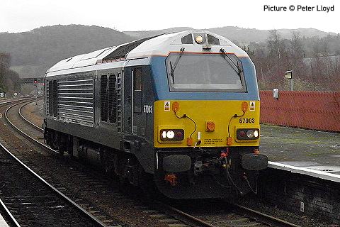 ![]() Driver training runs continue in preparation for the replacement of Class 57/3 locos with Class 67s on the Holyhead - Cardiff 'WAG Express'. 67 003 passes Llandudno Junction on 18 January (Peter Lloyd). CrimewatchOn 19 January the conductor of the 05:10 Cardiff - Holyhead was attacked and pushed on to the platform by a passenger while the train was stopped at Prestatyn, suffering facial injuries. He was taken to hospital for treatment, and the train stood at the station for an hour before continuing. The offender left the scene; police are examining CCTV records, and would like to hear from anyone who witnessed the incident especially if they can identify the man. Contact British Transport Police on 0800 40 50 40, or the independent charity Crimestoppers on 0800 555111. In all calls, please quote reference 102 of 19/01/2012. Club 55 is back (again)Arriva Trains Wales have brought back their 'Club 55' cheap ticket offer for people over 55 years of age, now available until 28 March. A return ticket between any two stations on the Arriva Trains Wales network can be had for just £19 - £17 for Senior Railcard and Disabled Persons Railcard holders. There are some weekday time restrictions, and also various 'add-ons' for other company's trains including to London by Chiltern's trains (including their loco-hauled ones) and this year to Worcester by London Midland. All is explained on the Arriva Trains Wales Club 55 web pages. You can also travel first class on the Cardiff express on payment of a supplement, and get the complimentary food. If you go anywhere interesting, especially anywhere not yet covered by Club 55 reports here, do let us know! Blue Virgin![]() Appearances of the four blue Class 57/3s on the 1D83 Saturday 'Pendolino drag' to Holyhead are more likely since six of the twelve Virgin-liveried ones were transferred to Network Rail. Saturday 21 January saw 57 313 in charge, seen above battling against a headwind approaching Abergele. ![]() Near Llanddulas (Darren Durrant). ![]() Llanfair PG (Richard Fleckney). ![]() The return train emerges from Conwy Tunnel in the rain (Darren Durrant). West Coast Invitation to TenderThe Department for Transport has issued the Invitation to Tender document to companies wishing to take on the West Coast Main Line services, currently run by Virgin Trains and including the London - North Wales services, from 9 December 2012 until 2027 at the latest. The whole 93-page document is available in PDF format on the DfT website. Basically the service requirement is similar to the present timetable, although the Wrexham train is not a requirement, nor apparently is an exact number of trains which should continue beyond Chester towards Holyhead - these are left as options which the operator, along with possible use of the lines to be electrified between Manchester, Liverpool and Blackpool. The existing Pendolinos have to be used until at least 2022, and the Voyagers at least until 2016. An interesting statement is 'Should bidders propose further electrification schemes such as Crewe to Chester, it is expected that they would provide evidence within their bids of how they propose to finance, plan and deliver such schemes within the franchise term.' The local press is reporting that Shropshire County Council have been talking with bidders about including a once-a-day each way service from Chester via Wrexham and Shrewsbury in their bids; as always, time will tell. The four short-listed bidders are Abellio InterCity West Coast Limited (NV Nederlandse Spoorwegen); First West Coast Limited (FirstGroup plc); Keolis / SNCF West Coast Limited (Keolis SA and SNCF French National Railways), and Virgin Trains. Bids are required by 1 May. Another Sunday, more engineers' trains![]() Relaying work on Anglesey resumed on Sunday 22 January; Richard Fleckney was at Llanfair PG station to view movements. Above, 66 533 Hanjin/Senator Express with a trainload of replaced track ... ![]() ... and the crane, which had done the lifting, attached to rear (Richard Fleckney). ![]() The view from the level crossing (Carwyn Jones). Note the 'Stop' marker on the down line protecting the 'possession' for the relaying. ![]() The track, long-welded rail on concrete sleepers with an old style of fixing, has been cut on-site into 60-foot lengths to fit on the wagons (Carwyn Jones). ![]() 66 620 was in charge of a rake of JNA and IEA ballast wagons to take away the old ballast (Richard Fleckney). ![]() The builder's plate on one of the Network Rail JNA wagons. 555 of these (NLU 29001 - 29555) were built in Arad, Romania in 2003-4 by Astra Vagone, part of the Trinity Rail group. (Information from the excellent LTSV website) Apparently they are known as 'Falcons' which is odd since engineers' wagons are normally given code names from marine animals. Their low sides reflect the high density of spent ballast ('spoil') which is usually contaminated with clay and mud. ![]() 66 620 heads east near Abergele - also available on video (Darren Durrant) ![]() 66 533 approaches Colwyn Bay past the 'hanging gardens' with its train of track panels (Jack Bowley). ![]() Dull weather at Beeches Farm as 66 533 passes (Bob Greenalgh). ![]() Better weather at Hargrave (Andrew Vinten) ![]() The train was coded 7Y06 - a 'class 7' train indicating a restriction to 45 mph, the maximum speed allowed for to the crane on the rear (Andrew Vinten). Widening the Cob at Porthmadog![]() Work has begun on widening part of the 'Cob' embankment to provide space for a platform at which Welsh Highland Railway trains can terminate or call without setting back into the one platform at Harbour station as at present. The Ffestiniog Railway website offers daily updates in video form on the work, which is being carried out by Ruthin-based contractor Jones Brothers. The Latest Class 70