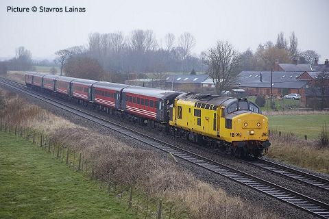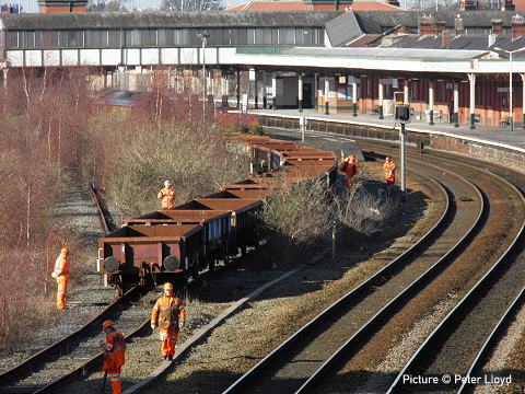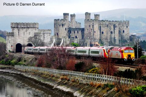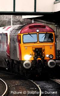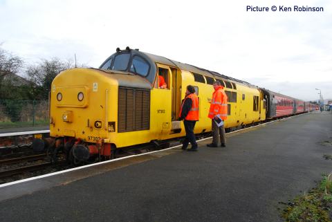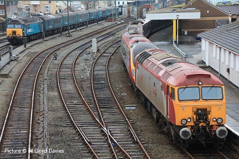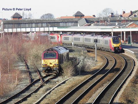 ![]() Holyhead, Sunday morning 12 February: 57 315 stands at Holyhead preparing to depart with the 'rugby special' to Cardiff (M. Lloyd Davies) Technical update: The new 'hub' from VirginMedia to restore our connection arrived on Thursday evening, but they forgot to also send us a small device apparently known as a 'silver splitter' so at the time of writing we can only use the Internet if we disconnect our television... Arriva loco-haulage notes Training runs continue for Arriva drivers on Class 67 locos, of which there are now three in blue livery as 67 002 has been repainted to join 001 and 003. However, as yet we have no information about when they will take over the Holyhead - Cardiff trains from the 57/3s. Two Driving Van Trailers have also been painted blue to match, but the question arises of how push-pull working is to be implemented. If the existing Arriva Trains Wales coaching stock is to be used, then like the Wrexham and Shropshire coaches, each vehicle will need to be fitted with through '27-wire' cabling to carry the control signals between the driving trailer and the loco. We've not heard of any work done on this - can it really be that this has only just been realised, as word on the grapevine suggests? A small modification to the loco is also necessary - fire alarm connections, if we remember rightly. Meanwhile, on 7 February the evening northbound express had to be replaced by a Class 175 due to a 'train fault'. Picture news![]() Holyhead, Saturday 11 February: 57 307 Lady Penelope waits with the 14:38 Virgin Trains working to London Euston. In the background is the assembled Arriva Trains Wales train for the Rugby match extra to Cardiff the following day. Picture by M.Lloyd Davies. ![]() A closer look at the far end of Holyhead carriage sidings on 11 February, showing 57 313 on the rear of the rugby special. The first class/restaurant car never goes on these specials, replaced by two standard-class coaches: it spends the weekend at the far end of the siding (M. Lloyd Davies). ![]() The London train passes Conwy Castle on the approach to Llandudno Junction (Darren Durrant) ![]() On 7 February DRS 66 304 made a route learning run from Crewe to Llandudno Junction and back. Bob Greenalgh writes: 'I saw it at Morrison's Saltney at 10:33 on its outward run but it was too foggy to photograph. On its return much of the fog had gone so I managed a photo at Mold Junction, the footplate crew giving me a toot as they passed!' ![]() The Penmaenmawr – Guide Bridge stone train passes Ffynnongroyw with Freightliner 66 557 in charge, 1 February (Stavros Lainas) Prestatyn area notes - by Dave Sallery![]() The enlarged station car park at Prestatyn is nearly complete, featuring a modern sculpture, by Denis O’Connor of Derbyshire based Sculpture Works, which plays on the theme of sandcastle, bucket and spade, seagulls...' ![]() Work on the new Prestatyn Tesco is progressing with the first steelwork now erected, as seen from the station footbridge; the original Chester and Holyhead Railway station building, being renovated as part of the project, is prominent in the view. ![]() The temporary booking office at Prestatyn has now been moved onto the platform, although there is no sign of any activity on the existing station building. seen behind. ![]() The Clive Engine House of the Talrgoch lead mine in Meliden is being restored. According to the comprehensive Dyserth website: 'The Clive Shaft was sunk between 1842 & 1845 and ceased operating in1883. It was originally equipped with a 50-inch (cylinder diameter) hydraulic pumping engine, constructed at John Taylor’s foundry in Rhydymwyn and installed in an engine house underground. In 1862 the hydraulic engine was replaced by a steam engine with a 100 inch diameter cylinder. The beam, which projected from the building, weighed 85 tons and had a stroke of 10 ft. The engine was built by the Haigh Foundry in Wigan and housed in a new engine house built on the surface near to the shaft - the Clive Engine House.' ![]() Arriva have revived the old name 'Cymru Coastliner' for the Route 11 from Rhyl to Chester. Ten new double deckers (4488 - 4497) are being introduced; this is 4488 (CX61 CDY) a VDL DB300 with Wright Gemini 2DL body at Rhyl on 8 February. A launch event took place at the Marine Lake on 9 February; the buses have feature leather seats and free on-board Wi-Fi. Timing test on the Cambrian![]() ERTMS-fitted Locomotive 97 302 spent the weekend of 4-5 February taking seven empty ex-Virgin Trains coaches along the Cambrian lines to establish suitable timings for any excursions in the future, essential data for the ERTMS computer. Stavros Lainas captured the train on 4 February at 14:42 passing a bleak and wintry Tilstock, between Whitchurch and Prees on the Crewe - Shrewsbury line on the way to Machynlleth. Sunday 5 February saw the train, coded 5Z97, travel to Pwllheli - Ken Robinson photographed it at Porthmadog (above). Much discussion took place at Porthmadog, primarily to decide whether the train was fouling the level crossing (behind). All the coaches had labels on them - 'This coach is winterised' (Ken Robinson). The train was was a little late getting to Pwllheli, but then due to 'technical difficulties' was heavily delayed on the return journey, seen above at Porthmadog (Ken Robinson). New: Liverpool Docks website![]() Dave Sallery writes: 'I've done a new website on 'Trains in the Mersey docks' with 70 scanned images taken up to 2004. Classes featured are 03, 31, 37, 47, 56, 57, 60 and 66. There is only a little bit of the 31 however! Above: 47 197 on a liner to Crewe in Liverpool docks, 17 June 2002. RCTS Railway Meeting in ChesterThe Railway Correspondence and Travel Society meets at the Town Crier opposite Chester railway station on Monday 20th February at 7.30 p.m. when Stephen Gay of Sheffield speaks on ‘Walking the Line, Discovering Lost Railways.’ Visitors are more than welcome to attend this meeting but hopefully 