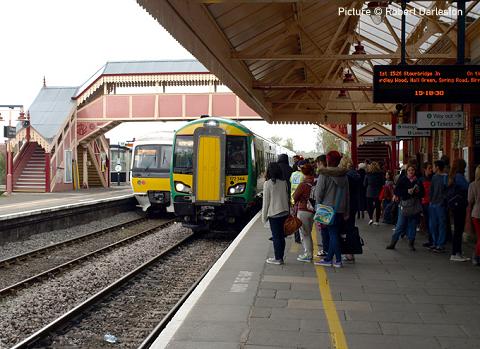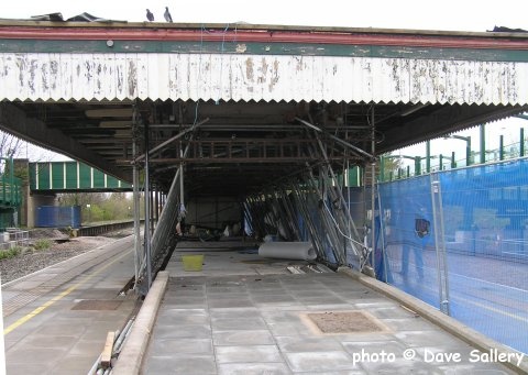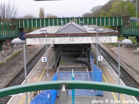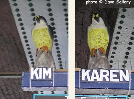 ![]() Here is the scene 'inside' the building; we understand that the new one will look something like the old. Ticket sales continue from the temporary ticket office down the platform. ![]() Elsewhere on the station, let us introduce you to two new members of staff: Karen and Kim the (pigeon) grime fighting hawks. They've just taken up residence on the train indicators under the road bridge on the platform. News from the Marine Lake
