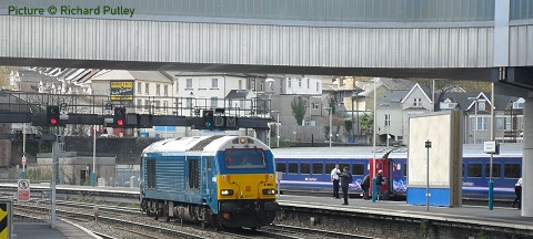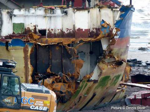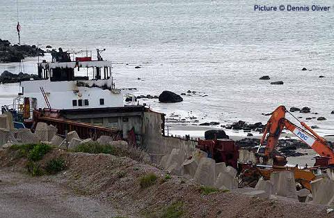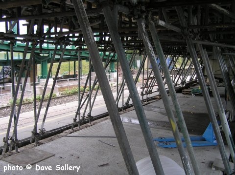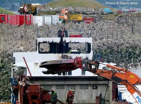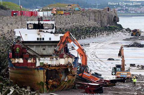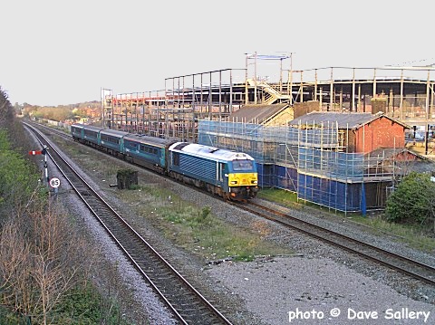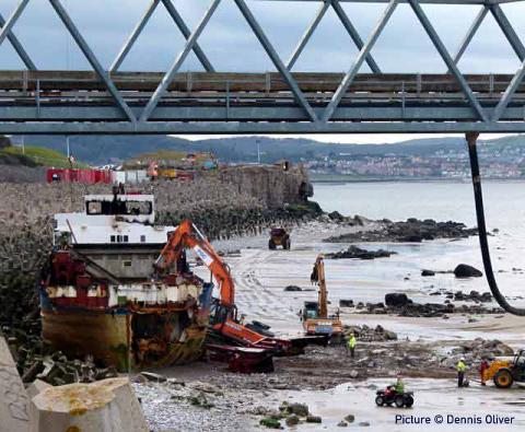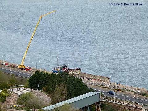 ![]() Prestatyn on the evening of 19 April. 67 002 hauls the express from Cardiff past the new retail park under construction. The Listed railway buildings adjoining the line are being refurbished and included in the development. Short pointsAs briefly mentioned here before, an extra Pendolino run to Holyhead, to free up a Class 221 Voyager diesel to run Birmigham to London via the Chiltern line cover for engineering works north of London. It will operate as train 1D90 on Saturday 5 May, retimed to start from London Euston four minutes earlier than normal at 16:06, Crewe 17:43 to 17:58 (add Class 57 loco) and stations to Holyhead arriving 20:16 (normally 1952). This offers the very rare treat of a loco-hauled train calling at Prestatyn (18:57). No Pendolino at all appeared on the Coast on Saturday 21 April; apparently there were problems coupling the locomotive. News about the 'WAG Express' is that a notice to Arriva Trains Wales staff informs them that the loco-hauled train will be running via Wrexham from September 2012 and that it will be using Mk3 rolling stock - presumably including Arriva's Driving Van Trailers. The wagon being scrapped at Dee Marsh (last issue): Some wagons being scrapped there were OTA four-wheeled timber wagons of the the type once used on workings to Chirk. The ones at Dee Marsh were "cripples" - set aside after developing faults. They had been idle for years, like the rest of the OTA fleet, replaced by bogie wagons some time before Hornby and Bachmann got round to offering models of the type. However, the one in the picture appears to be a bogie vehicle, so its identity remains a mystery. Cheshire Cat Railtours have cancelled their excursions from Holyhead planned for 26 May to Carlisle and 16 September to Holyhead, as well as the October run from Aberystwyth to Bath and Salisbury. Thanks to everyone who contributed to these items. Dismantling a ship - report by Nick Gurney and Dennis Oliver![]() Cutting-up of the MV Carrier which ran aground at Llanddulas on 3 April (see 9 April issue) is now well under way as seen from these pictures taken on 20 April. ![]() Work goes on 24 hours a day and when the tide is in cutting still takes place on the ship. A 50-tonne crane is in place on the cycle track to get the workers on and off the vessel using a man-basket. ![]() 1680 tonnes of limestone was on board and most of this has been removed through the side of the vessel using excavators and dumper trucks. ![]() The metal work is been cut up in to manageable pieces using blow torches and excavators fitted with cutting shears rather than buckets. ![]() The metal work is then transported by lorry to European Metal Recycling Ltd at Alexandra Dock in Liverpool. ![]() This overhead view shows the stare of the ship on 23 April. Llangollen prepares for the Gala - report by George Jones![]() On 17 April I was able to watch visiting Great Northern Railway 0-6-2T 1744 arrive at Llangollen as one of the starts of the forthcoming week-long Steel, Steam and Stars gala. For the benefit of those who have never witnessed the operation, my picture (above) shows the low loader turning onto the bridge prior to reversing down Abbey Road; a slick operation requiring a little patience from some motorists. ![]() Later the loco is shown about to be winched off into the yard. ![]() 70000 Britannia had arrived earlier and seen on shed over the pit having the tender attached, as resident loco 7822 looks on. ![]() The GWR 'Large Prairie' 5199, seen in the shed on 18 April, has been repainted in British Railways black. ![]() Also visiting is the famous London and North Western Railway (LNWR) 'Coal Tank' 58926 recently overhauled and painted in black as in its last days with British Railways. Saved from scrapping in 1958 by a team led by former Bangor shedmaster J.M. Dunn, this one of just a handful from the huge loco fleet of the LNWR which still survive, itself one of a class of 300. ![]() Another guest locomotive, Caledonian Railway 0-6-0 no. 828, built in 1899. Very much a star, 60163 Tornado at Llangollen on 19 April. 828 in action at Berwyn on 19 April. 'Steel, Steam & Stars III' runs for the nine days from Saturday 21 April until Sunday 29 April at the Llangollen Railway. Visit the event website for full details. Buy a ticket, and contribute to the building of a new steam loco, 6880 Betton Grange. Trains will be running over newly-relaid line beyond Carrog as far as Bonwm - see earlier Notice Boards for pictures. [The next issue will feature your pictures taken during the event itself - I suggest readers send their one or two best shots.- Ed.] Prestatyn: a roof without walls - report by Dave Sallery![]() Users of Prestatyn station during April have been treated to the unusual sight of a building with a roof, but no walls. ![]()
