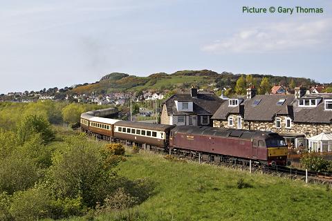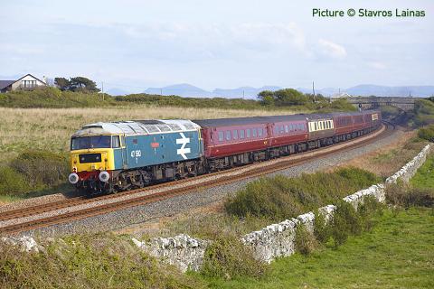 Sunday 5 August Steam in North Wales Railway Touring Company 'North Wales Coast Express' Crewe, Wilmslow, Stockport, Manchester Piccadilly, Frodsham and Chester to Llandudno, Llandudno Junction, Bangor and Holyhead (arr 15:10 dep 17:45). Sunday 12 August Steam in North Wales Railway Touring Company 'North Wales Coast Express' Crewe, Wilmslow, Stockport, Manchester Piccadilly, Frodsham and Chester to Llandudno, Llandudno Junction, Bangor and Holyhead (arr 15:10 dep 17:45). Tuesday 14 August Steam in North Wales Railway Touring Company 'The Welsh Mountaineer' Preston, Warrington Frodsham, Chester to Llandudno Junction and Blaenau Ffestiniog (arr. 13:15 dep 16:10) Saturday 18 August Steam in North Wales Vintage Trains 'The Welsh Dragon' Tyseley - Blaenau Ffestiniog (Steam loco 5043 as far as Llandudno Junction; Class 47 diesel to Blaenau) Sunday 19 August Steam in North Wales Railway Touring Company 'North Wales Coast Express' Liverpool Lime Street, Broad Green, Warrington Bank Quay, Frodsham and Chester to Llandudno, Llandudno Junction, Bangor and Holyhead (arr 14:30 dep 16:30). Sat / Sun 25 - 26 August Llangollen Railway Classic Transport weekend Sunday 26 August Steam in North Wales Railway Touring Company 'North Wales Coast Express' Liverpool Lime Street, Broad Green, Warrington Bank Quay, Frodsham and Chester to Llandudno, Llandudno Junction, Bangor and Holyhead (arr 14:30 dep 16:30). Tuesday 28 August Steam in North Wales Railway Touring Company 'The Welsh Mountaineer' Preston, Warrington Frodsham, Chester to Llandudno Junction and Blaenau Ffestiniog (arr. 13:15 dep 16:10) Saturday 31 August - 2 September Llangollen Railway Autumn Steam Gala September 2012 Sun / Mon 1 - 2 September Llangollen Railway Autumn Steam Gala (continued) Saturday 15 September Excursion Cheshire Cat Tours Aberystwyth - and stations to Crewe - to Carlisle. Saturday 22 September Llangollen Railway Diesel Day October 2012 |