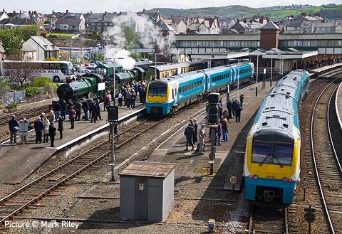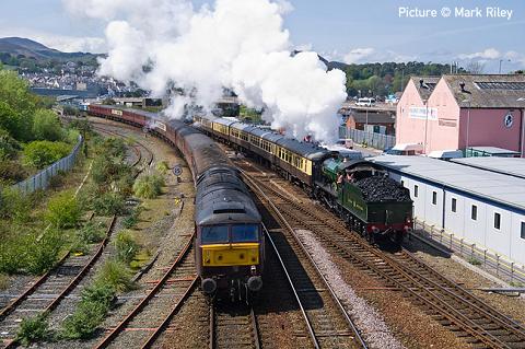 07 May 2012![]() ![]() ![]() ![]() Share this issue: Tweet Contributions and comments are encouraged: see the Contributions Page This site is dedicated to all our regular contributors and supporters, and especially the rail staff of North Wales. ![]() ![]() ![]() Forthcoming events May 2012 Tuesday 8 May 8E Railway Association Les Nixon presents The A to Z of Railways Around the World Thursday 10 May Llandudno and Conwy Valley Railway Society "End of Indoor Season Special" Saturday 19 May Steam in North Wales PMR Tours 'The Welsh Dragon' Bristol to Holyhead Friday 25 May Excursion to North Wales Compass Tours 'Snowdon Mountaineer' Carnforth, Morecambe, Lancaster, Preston, Wigan North Western, Garswood, St Helens Central, Liverpool Lime Street, Liverpool South Parkway & Runcorn to Betws-Y-Coed & Blaenau Ffestiniog. Friday 25 May Excursion to North Wales UK Railtours 'The Snowdonian' London, Milton Keynes and Rugby to to both Llandudno Junction and Bangor. From Llandudno Junction coaches for the scenic trip up the Conwy Valley to Blaenau where the greatest narrow gauge journey of all begins, right the way through via Porthmadog to Caernarfon, where coaches will be waiting for the short hop to Bangor where our main line train is rejoined. Half the passengers will do the 'circuit' in the opposite direction. June 2012 Sat / Sun 2 - 3 June Welsh Highland Heritage Railway 'Family Fun Weekend' Friday 8 June Excursion Compass Tours 'Dorset Coast Express' Holyhead, Llanfairpwll, Bangor, Llandudno Junction, Colwyn Bay, Rhyl, Flint, Chester & Crewe to Brockenhurst, Bournemouth or Weymouth. Sat / Sun 9 - 10 June Welsh Highland Heritage Railway 'Teddy Bear weekend. 'Children go FREE if they bring a teddy bear. Find the bears hiding in the Engine Sheds and win a prize.' Saturday 16 June Excursion to North Wales Scottish Railway Preservation Society From Glenrothes with Thornton, Kirkcaldy, Dalgety Bay, Edinburgh Waverley, Kirknewton over Beattock and Shap summits to Chester and Llandudno. (diesel-hauled) Saturday 16 June Excursion Cheshire Cat Tours Whitchurch, Wem, Shrewbury, Wellington, Telford Central, Codsall, Wolverhampton, Tame Bridge Parkway, Birmingham International to Canterbury. Sat / Sun 23 - 24 June Llangollen Railway Heritage Railcar Gala Sat / Sun 23 - 24 June Welsh Highland Heritage Railway Slate industrial exhibition Saturday 30 June Excursion to North Wales Compass Tours 'Snowdon Mountain Ranger' Skipton, Keighley, Shipley, Wakefield Kirkgate, Huddersfield, Denton, Stockport, Altrincham & Knutsford to Betws-Y-Coed & Blaenau Ffestiniog July 2012 Saturday 7 July Excursion to North Wales UK Railtours 'Chester and the Pennines' Stevenage, Potters Bar, Finsbury Park to Chester (break) and then through Wigan, Blackburn and Accrington to Copy Pit Summit, Hebden Bridge and Mytholmroyd before descending to Wakefield and finally joining the East Coast Main Line to head homeward. Sunday 22 July Steam in North Wales Railway Touring Company 'North Wales Coast Express' Crewe, Wilmslow, Stockport, Manchester Piccadilly, Frodsham and Chester to Llandudno, Llandudno Junction, Bangor and Holyhead (arr 15:10 dep 17:45). Sat / Sun 28 - 29 July Llangollen Railway 1960s weekend Sunday 29 July Steam in North Wales Railway Touring Company 'North Wales Coast Express' Liverpool Lime Street, Broad Green, Warrington Bank Quay, Frodsham and Chester to Llandudno, Llandudno Junction, Bangor and Holyhead (arr 14:30 dep 16:30). Tuesday 31 July Steam in North Wales Railway Touring Company 'The Welsh Mountaineer' Preston, Warrington Frodsham, Chester to Llandudno Junction and Blaenau Ffestiniog (arr. 13:15 dep 16:10) [Note: again this summer there will be no steam trains on the Cambrian Coast line due to the rail industry's continuing inability to adapt the new ERTMS signalling for use with a steam locomotive.] August 2012 Sat / Sun 4 - 5 August Talyllyn Railway Tom Rolt