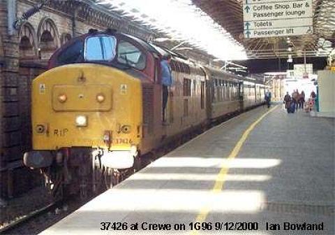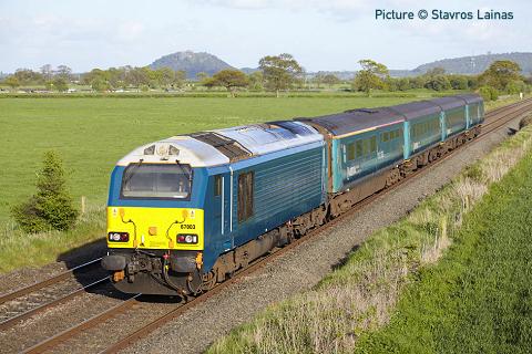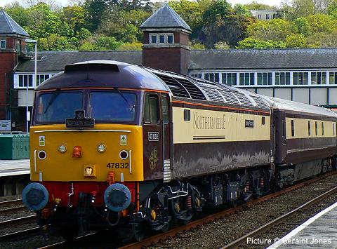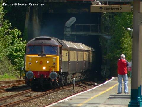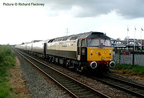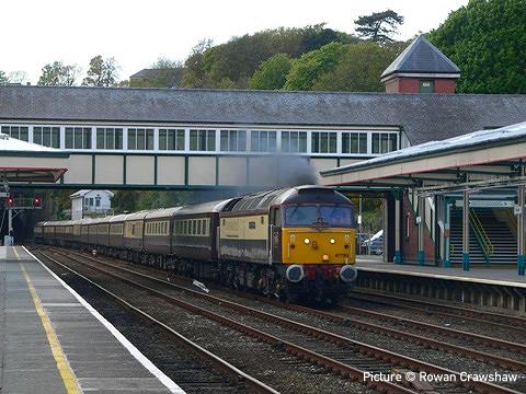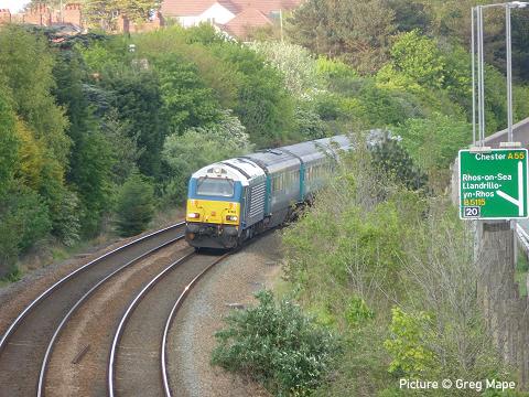 ![]() Miraculously the cloud cover broke up and allowed the sun through a couple of minutes before 47 832 Solway Princess headed the 'Northern Belle' through Abergele on 11 May Picture by Larry Goddard. Thanks for the additional pictures of Llangollen, etc. A 'Revisted' special will appear soon.- Charlie On the All-Wales Express![]() Longer days mean more chances for our contributors to photograph the morning and evening loco-hauled expresses between Holyhead and Cardiff. Above: long shadows as the early morning Holyhead – Cardiff service passes Hargrave at 07:14 with 67 001 at the helm (Stavros Lainas). ![]() Hargrave again, looking the other way, on 11 May, as 67 003 passes with the northbound train at 18:58. Beeston Castle stands on the hill in the background. The bridge approaches used by Stavros Lainas for these pictures carry an unclassified right-of-way over the Crewe - Chester line. This Link to Streetmap shows the location; cyclists can reach Hargrave from Chester along the towpath of the Shropshire Union Canal. ![]() Later in its journey on 11 May, 67 003 is seen amongst the verdant foliage near Colwyn Bay (Greg Mape.) Plans for this train from September 2012 have made their way into the public domain, although we are asked to point out that these are not 'set in stone'. So, possibly the train will comprise of a Class 67, Mark 3 coaches, including a dining car, and a Driving Van Trailer, running push-pull to simplify the reversal at Chester, as it run via Wrexham, taking the path of the current Holyhead Birmingham train which calls at Wrexham at 07:43 and which will run via Crewe. The train will possibly return in the evening via Wrexham, departing Cardiff at 18:19, in the path of the current Class 175-worked 'second WAG express.' This Holyhead - Cardiff and return operation will be the only 'premium service' - presumably a normal train will be offered to carry the earlier commuters. The loss of the restaurant car on the 16:16 from Cardiff will be a setback for people boarding at stations north of Shrewsbury, as by Chester it will be rather late for an evening meal. Class 37 memories - by Dennis Bates![]() I was interested to see the photo by Ken Robinson (30 April issue) of class 37s at Kingmoor, and the comment on 37 427 Bont y Bermo. 37 426, also in the picture, was also named in 1986, on 5 May, as Y Lein Fach Vale of Rheidol, and I attach a photo of her on the occasion of her naming, at Aberystwyth, after working a special train from Birmingham. She was named by my daughter, Stephanie, who had become the first, and I think only, Cambrian Railways Queen. It's good to see that the loco still survives. ![]() From the Editor's archive (above). 37 426, by then nameless, was one of the last to be allocated for regular passenger service in North Wales before the 175s took over. Ian Bowland's picture ecember 2000 reminds us of a a once-familar scene at Crewe. Note the 'RIP' adornment. Northern Belle![]() An attractive visitor to the North Wales Coast line on 11 May was a 'Northern Belle' luxury excursion to Llandudno Junction, train 1Z71, which had started from Newcastle-on-Tyne at 06:46. Stéphanie Durrant's picture above shows the outbound train passing Llanddulas with 47 832 Solway Princess leading. The first two coaches are Mk3 Sleeping cars 10729 and 10734, in which the train staff would have spent the night. Although they have the look of Pullmans, most of the the other coaches are in fact ex-British Rail Mk2 First Class vehicles. ![]() After setting down its passengers, the train continued to Holyhead for servicing. Above, it is seen emerging from the tunnel into Bangor station (Rowan Crawshaw). ![]() A closer look at 47 832 as it passes Bangor, showing the high standard of presentation of the these locos which DRS have dedicated to Northern Belle work. Note the cast numberplates which have the figures in what appears to be the standard 'Rail Alphabet' (Geraint Jones). ![]() The return empty stock from Holyhead to Llandudno Junction approaches Llanfair PG, now hauled by 47 790 Galloway Princess which travelled west on the rear of the train (Richard Fleckney) ![]() Bangor (Rowan Crawshaw) ![]() Arriving at Llandudno Junction to collect the passengers for the long run home (Darren Durrant). ![]() Flashback to the outbound train, and an query for the experts. Unlike other locomotives of this type we normally see being 'dragged' along on the back of a train, in this picture by Larry Goddard we can see that 47 790 does not carry a better tail-lamp on the bracked provided, and indeed two permanent LED tail-lamps seem to be lit. 47 832 did carry a lamp on the return journey. Why the difference? Is it because 790 was equipped wjhen it was used in mail train service? Farewell to the Carrier![]() The complete dismantling and carrying away by road of the freighter MV Carrier which ran aground on the night of 3 April alongside the stone-loading pier at Llanddulas (and its load of over 1000 tonnes of Limestone) proceeded with great dispatch and is now complete. ![]() These pictures by Dennis Oliver show the last remains being torn apart on 30 April. However, we understand that 'speed restrictions on the A55 road remain and the nearby cycle path is still closed until a full safety assessment is carried out.' Although there was a small release of diesel fuel at the time of the incident, tests conducted on marine life, mussels and starfish from various locations by the Environment Agency Wales have been analysed throughout the operation and have found no traces of contamination. Freight update![]() On a line with limited but regular traffic, Freightliner loco 70 003 approaches Ince & Elton station, with Helsby Hill in the background. The train is the the 07:09 Garston – Ellesmere Port Manisty Wharf empty coal hoppers on Friday 11 May. The train would return, loaded with imported coal, as the 12:07 Ellesmere Port - Fiddlers Ferry Power Station merry-go-round train (David Parry). ![]() Ab