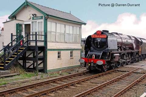 Sunday 5 August Steam in North Wales Railway Touring Company 'North Wales Coast Express' Crewe, Wilmslow, Stockport, Manchester Piccadilly, Frodsham and Chester to Llandudno, Llandudno Junction, Bangor and Holyhead (arr 15:10 dep 17:45). Sunday 12 August Steam in North Wales Railway Touring Company 'North Wales Coast Express' Crewe, Wilmslow, Stockport, Manchester Piccadilly, Frodsham and Chester to Llandudno, Llandudno Junction, Bangor and Holyhead (arr 15:10 dep 17:45). Tuesday 14 August Steam in North Wales Railway Touring Company 'The Welsh Mountaineer' Preston, Warrington Frodsham, Chester to Llandudno Junction and Blaenau Ffestiniog (arr. 13:15 dep 16:10) Saturday 18 August Steam in North Wales Vintage Trains 'The Welsh Dragon' Tyseley - Blaenau Ffestiniog (Steam loco 5043 as far as Llandudno Junction; Class 47 diesel to Blaenau) Sunday 19 August Steam in North Wales Railway Touring Company 'North Wales Coast Express' Liverpool Lime Street, Broad Green, Warrington Bank Quay, Frodsham and Chester to Llandudno, Llandudno Junction, Bangor and Holyhead (arr 14:30 dep 16:30). Sat / Sun 25 - 26 August Llangollen Railway Classic Transport weekend Sunday 26 August Steam in North Wales Railway Touring Company 'North Wales Coast Express' Liverpool Lime Street, Broad Green, Warrington Bank Quay, Frodsham and Chester to Llandudno, Llandudno Junction, Bangor and Holyhead (arr 14:30 dep 16:30). Tuesday 28 August Steam in North Wales Railway Touring Company 'The Welsh Mountaineer' Preston, Warrington Frodsham, Chester to Llandudno Junction and Blaenau Ffestiniog (arr. 13:15 dep 16:10) Saturday 31 August - 2 September Llangollen Railway Autumn Steam Gala September 2012 Sun / Mon 1 - 2 September Llangollen Railway Autumn Steam Gala (continued) Saturday 15 September Excursion Cheshire Cat Tours Aberystwyth - and stations to Crewe - to Carlisle. Saturday 22 September Llangollen Railway Diesel Day October 2012 |