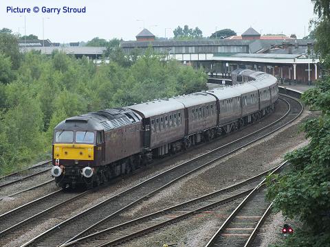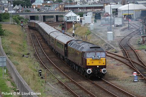 ![]() This dreary summer has produced very little sunny days this year, but one that was against the trend was 12 July when this shot was obtained of 221 108 Sir Ernest Shackleton emerging from the tube at Conwy and crossing the cob with the 8.55 Holyhead to Euston service. Picture by Garry Stroud. Royal Scotsman in North Wales![]() In yet more wet conditions the Chester – North Llanrwst leg, 1Z25, of Day 3 of the Royal Scotsman 'Grand Tour of Britain' approaches Llandudno Junction, with 47 804 leading and 47 854 Diamond Jubilee on the rear (M.Lloyd Davies). ![]() The train has reversed to access the Conwy Valley branch, where 47 854 is leading alongside Glan Conwy (M.Lloyd Davies). ![]() Next morning, 9 July, 47 804 brings the train into Llandudno Junction at 08:57 (Garry Stroud). ![]() 47 854 on the rear as the train enters Llandudno Junction station (Garry Stroud). ![]() 47 854 on the rear at Cadnant, heading for Holyhead after the passengers have alighted for a soggy day in Llandudno (Garry Stroud). ![]() After stabling most of the day at Holyhead, the return empty working to Llandudno Junction departs Holyhead (M.Lloyd Davies). ![]() Passing Conwy with 47 854 leading (Garry Stroud). ![]() The Royal Scotsman normally operates on the Highland routes in Scotland as seen in this view on 12 June at Achanalt Viaduct on the line to Kyle of Lochalsh with 37 685 Loch Arkaig deputising for a failed WCRC 47 (M.Lloyd Davies) Caersws, ERTMS and the the 6-car problemLast time we commented on the failure to strengthen to six coaches units the busiest train on the Aberystwyth line, the 10:07 to Birmingham International, passing on the suggestion that this may be due to platform restrictions at Caersws caused by the extra fencing which has been installed around the level crossing there. However, writers on the RailUK Forum have pointed out that the platform at Caersws is not long enough for six coaches in any case, and it would have been the procedure to just open one door at such a small station. The real problem appears to lie at Aberystwyth station where it would have been necessary to couple a 2-car and a 4-car train. The new ERTMS signalling system on the Cambrian line works with 'blocks' - sections of line which are demarcated in the system's computer. It seems that the way the system has been implemented at Aberystwyth has not been design to allow the proposed move. The arrangements at Aberystwyth have recently been called into question as a contributory cause of the incident at Llanbadarn last year in which a train failed to stop at the level crossing even though the barriers were had 'timed out' and opened to road traffic. The Report on this has now been published by the Rail Accident Investigation Branch and reveals how much added complexity has been introduced into the life of the train driver. If you thought the 'Libor scandal' and the 'Hardron Collider' were difficult concepts, have a look at that 53-page report. Rail users urged to back direct London link fightInteresting item from the Shropshire Star, 15 July: Shrewsbury's MP today urged rail travellers to get behind the campaign to restore Shropshire’s direct train link to London. Daniel Kawczynski wants people to write to Transport Secretary Justine Greening, urging her to make the route a priority when deciding who should take over county rail services next month. He said that it was 'outrageous' such a service did not exist already.Abellio and Keolis are certainly 'transport giants' as they are the nationalised railways of The Netherlands and France respectively. 'Main Line' on the other hand, does not exist. There are just four preferred bidders. The DfT's consultation process already closed in May 2011, and it is hoped to announce the winning bidder on 13 August, in time for the new operator to take over the service at the timetable change on 9 December. The hope must be that one or more of the bidders have offered a Shrewsbury train as an extra in their bid; whoever wins will be required to use the existing fleet of Voyagers and Pendolinos - finding a Voyager for a London - Shrewsbury service, since Wolverhampton - Shrewsbury is not electrified, would need some thought. All in all, one might think that a better hope would be to persuade Chiltern Railways to extend a couple of their London - Birmingham trains to serve Shrewsbury. Their loco-hauled trains know the place well as they mostly ex-Wrexham and Shropshire ones! And does the West Coast Main Line really pass through Shropshire? The county is certainly one of the few (are there any others?) English counties with no direct London service. Ride the 'Ghost Train'The North Cheshire Rail Users' Group informs us that the first run in 2012 of the weekly summer-only Chester - Runcorn 'Parliamentary' train on Saturday 21 July will again be transformed into a special occasion, with the train continuing in passenger service to Liverpool South Parkway rather than terminating at Runcorn as normal. Times are as follows: CHESTER d. 07.53 HELSBY d. 08.02 FRODSHAM d. 08.07 RUNCORN (MAIN LINE) d. 08.17 LIVERPOOL SOUTH PARKWAY a. 08.26 Passengers should purchase tickets to Liverpool. Refreshments will be available at Liverpool South Parkway. A special vintage bus will leave at 09.30 to bring passengers back to Chester with additional drop off points at Runcorn, Frodsham and Helsby. There is no fare for the privately-owned bus but there will be an opportunity to make a donation (Suggested amount £4 per head). The day will follow the same format as the previous two years except that there is the opportunity for those who wish, to visit the newly renovated Frodsham station house as well. Those who do not take the Parliamentary Train to Liverpool South Parkway can still visit Frodsham station between 10.30 and 12.30 on 21 July. Buy your ticket at Chester station or on the train on the day of travel. However, if you require a reservation on the vintage bus please email your name to either Ja