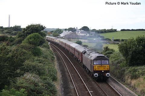 ![]() 175 110 and 175 105 made up the 15:40 departure from Holyhead to Manchester Piccadilly, seen departing Holyhead on 29 July. Picture by M. Lloyd Davies. Quite a lot of pictures have been received of recent steam specials. Thanks everyone: as many as possible will appear in the next issue. Meanwhile, here is catch-up on some other things. - Charlie Prestatyn Progress - report by Dave Sallery![]() Some photos of progress on the new station building at Prestatyn, which looks uncannily like the old one. ![]() The original building, built from London and North Western Railway prefabricated wooden parts, was considered a historic structure, although not actually 'listed' as of national interest, but on inspection was considered to be in poor condition, so it was agreed to build a replica as part of the improvement project, begun in 2010, which includes a new footbridge, seen in the background. ![]() All credit to those concerned for creating an authentic LNWR look. ![]() Many stations on the old LNWR system had buildings like this, and some have survived the years. Prestatyn's dated from the 1880s when the line here was increased from two tracks to four. ![]() The main building and goods shed of the original station, designed by Francis Thompson for the Chester and Holyhead Railway, still exist a short distance to the east and definitely are Listed, although dwarfed by the new retail park buildings they are to be returned to commercial use. Compass Tours to Holyhead![]() Friday 27 July saw a Compass Tours excursion from Carlisle to the North Wales Coast, hauled to Holyhead by West Coast Railway Company's celebrity locomotive 47 854 Diamond Jubilee. Above, the westbound train calls at Bangor, picture by Rowan Crawshaw. ![]() On the other end of the train was 47 786 Roy Castle OBE. Picture by Richard Fleckney. ![]() The rural scene west of Bangor (Alan Crawshaw). ![]() After stabling during the afternoon the train is seen here being pulled back down into Holyhead Station by 47 854, the loco at the far end of the train in this view. ![]() 47 786 stands awaiting departure from Holyhead. ![]() The return train at Valley with 47 786 leading (Mark Youdan). ![]() Rhyl (Ivor Bufton)... ![]() ... and 47 854 on the rear, as 175 103 passes. 175 002 repaired![]() 175 002 is back in traffic repaired after its dramatic collision (newspaper report) with a trailer loaded with hay on a level crossing near Whitland in South Wales on 19 December 2011. It is seen here (picture by 'Concrete Bob') on 27 July returning from a re-commissioning test run from Chester to Shrewsbury via Crewe. Wolverton works have done the work, and Alstom at Chester were subcontracted to commission the unit prior to a return to service. 60s Gala at Llangollen - report by Chris Jones-Bridger![]() 28-29 July was a '60s Gala' at the Llangollen Railway. Here are some views from the Saturday. Above: Class 109 railcar at Glyndyfrdwy working the 11:40 Carrog - Llangollen. ![]() 2) Class 109 at Llangollen waiting departure as the 1225 Llangollen - Carrog. ![]() D5310 at Llangollen undertaking the run-round move after arrival of the 12:40 Carrog-Llangollen. See the Llangollen Diesels website for more about the line's diesel fleet. ![]() The Llangollen Goods Junction signalman exchanging single-line tokens with the footplate crew of 44806 on the 15:00 Llangollen - Carrog ![]() 44806 at Berwyn: driver waiting the 'right away'. The railways runs every day during August: see the Llangollen Railway Timetables. On the Parliamentary - report by George Jones![]() Saturday 21 July saw the first run of the year by the weekly summer-only one-way train from Chester (picture above by John Murray) to Runcorn using the Halton curve - the now rarely-used connection from Frodsham Junction to Halton Junction. As in previous years, the North Cheshire Rail Users' Group (NCRUG) arranged for Northern Rail to extend the run for this one Saturday only to Liverpool South Parkway, and a vintage bus link was provided to bring passengers back to Chester. ![]() The allocated rolling stock was Yorkshire-embellished 150 228 which had worked round to Chester from Ellesmere Port, running empty from Helsby. The interior with its original 3+2 seating (above, picture by John Murray) is very different from the more comfortable 2+2 version now found in Arriva 150s. Away on time for 07:53, the service called at Helsby and Frodsham to pick up NCRUG supporters. The progress on the Halton Curve was slow and allowed some time to view the wide spectrum of the Mersey estuary on the climb to Halton Junction and onward to Runcorn main line station. Here at least one member of the public took advantage of the extra service to make the journey to Liverpool South Parkway. ![]() Beyond Ditton the unit crossed to the down slow line as a London Midland Class 350 service was due to catch up and was close behind on the fast line when we arrived at Liverpool South Parkway (above) at 08:30. Here station staff were on hand to greet the complement of passengers numbering upwards of 95 people as an example of interest in using the route as a short cut to south Liverpool and access to Liverpool John Lennon airport. Using Merseyrail connections I completed a circuit of the Mersey estuary arriving back at Chester at 10:08 after an all too short rail jaunt. How many people will be on next Saturday's more normal service from Chester to Runcorn, I wonder? Still a journey worth experiencing for the unusual route by today's standards although some will recall it as a regular train service option from Liverpool Lime Street to North Wales. The possible future of the line was recently raised in Parliament: see a local press report. Well done by Northern and NCRUG for arranging another extended journey, details of which were broadcast on BBC Radio 4's You & Yours midday programme: an illustration of the media's fascination with 'Ghost Trains'. [Note: The term 'Parliamentary Train' comes by analogy with the early