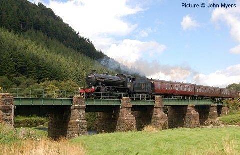 ![]() 61994 The Great Marquess approaches Blaenau Ffestiniog on 21 August, amid scenery worthy of its 'home' routes in the West Highlands of Scotland. Many more pictures, with a few other background events from the same day, below. This picture by John Myers. Don't miss the extra 22 August update with general stories: there'll be another later this week, hopefully. See the left margin for contents of recent issues. The Great Marquess and the Welsh Mountaineer![]() The 'steam special' season in North Wales this year has been characterised by a certain lack of locomotive variety, and a couple of advertised ones never ran, as in previous years. There was also one that turned out to be diesel-worked, and proved just as interesting to our contributors! However, the last steam train of the summer, the Railway Touring Company 'Welsh Mountaineer' of 21 August from Preston to Blaenau Ffestiniog certainly 'broke the mould' with the appearance of London and North Eastern Railway (LNER) 2-6-0 61994 The Great Marquess. Ian Pilkington's reflective picture above shows the outward-bound train, 1Z90 07:40 Preston - Blaenau, crossing the Weaver Navigation at Frodsham. ![]() The locomotive was turned using the triangle of lines west of Chester station, and hauled the train tender-first at Llandudno Junction in order to be running boiler-first up the gradients of the Conwy Valley branch, which looks better and also possibly helps to keep the water level in the boiler above the crown of the firebox when working hard on the climb. Above, the train passing Rhyl station (Roly High). ![]() Shortly afterwards at Rhyl, an appearance on a Holyhead - Cardiff service by 158 819, a minor celebrity as the very last unit of any sort to wear the silver and blue colours of the Wales and Borders train company, and one of just two Arriva 158s to remain un-refurbished (Roly High). ![]() Passing Abergele en route to Llandudno Junction (Larry Goddard). ![]() Abergele from the bridge (John Myers). ![]() Having reversed at Llandudno Junction, the train is seen alongside the estuary south of Glan Conwy (Ian Pilkington). ![]() 61994 blasts out of Denbigh Street tunnel and into Llanrwst town station opened in 1989 (Larry Davies). ![]() Near Betws-y-Coed (John Myers). The LNER used a class coding in which a letter was allocated to each wheel-arrangement: The 'K' in 'K4' indicates a 2-6-0. ![]() After a creditable climb up the sharply-curved 1 in 47 at Pont-y-Pant, a brief stop at Dolwyddelan for a 'blow up' to regain steam pressure, as indeed was done in the days when Conwy Valley line had steam in 'real money.' (Larry Davies). In those days Dolwyddelan station had tracks each side of this platform, to allow trains to pass: entrance was by steps from the bridge where Larry was standing. ![]() 150 231 arriving at the picturesque Dolwyddelan station on the 13:32 Llandudno to to Blaenau Ffestiniog. The flower beds are maintained by local people (Chris Taylor). ![]() Setting off from Dolwyddelan (Larry Goddard). ![]() 61994 storms up the 1 in 62 away from the station (Ian Pilkington). ![]() Passing Dolwyddelan Castle (Chris Taylor).This locomotive was one of a small class of six locomotives, designated 'K4' by the LNER, credited to Chief Mechanical Engineer Sir Nigel Gresley. The idea was to replace old machines built by the North British Railway with a modern locomotive suitable for the steep gradients and lightly-built infrastructure of the line to Fort William and Mallaig. The LNER Encyclopaedia website has the full story. ![]() Near Roman Bridge (M.Lloyd Davies). This locomotive was built in 1938, but after the bridges were strengthened to allow larger locos, thee specialised class was replaced after a relatively short life by steam loco standards, all being withdrawn by British Railways in 1961. 61994 was purchased for preservation by David Lindesay-Bethune, Viscount Garnock (1926-1989), and ran for many years in LNER green livery and its original LNER number 3442. Under its current owner John Cameron (who also owns Pacific 60009 which has also run in North Wales this year) it has joined the many preserved locos to have been given the lined-black livery used by British Railways in living memory, and its British Railways number. ![]() Larry Goddard writes: 'The drive over the Crimea Pass road was in torrential rain but fortunately it was clearing by the time I photographed the running downgrade from Ffestiniog Tunnel.' ![]() Arrived at Blaenau Ffestiniog (M.Lloyd Davies). Who was The Great Marquess? Well, he was a man, not a woman: the title is sometimes spelt 'Marquis' to avoid confusion with the wife of a Marquess who is a Marchioness (see also the Marquess of Anglesey's column.) He was James Graham, 1st Marquess of Montrose, born 400 years ago in 1612. The names all Highland-related; as a soldier he was famous for 'raising the dis-affected and largely Catholic clans of the Highlands, plus some Irish soldiers, on behalf of the King' during the English Civil War period. See the Clan Graham website for more. ![]() Probably the first ever ex-LNER locomotive to visit Blaenau, 61994 is guided past Blaenau Ffestiniog No 3 ground Frame as she runs round her train (Larry Davies). In the 1950s and 1960s Summer Saturdays saw regular visits of ex-LNER class B1 4-6-0's from North Eastern Sheds (Hull Dairycoats, Mirfield, Sheffield Darnall, to name a few) on excursions to the North Wales Coast, but we believe none ventured up the Conwy Valley branch. ![]() Propelling the stock into the loop to clear the platform line for use by the service train (Larry Goddard). ![]() Into the loop; Ffestiniog Railway tracks in the foreground (Larry Davies). ![]() One of the fire-irons leans against the loco, suggesting that the fireman is engaged in maintenance of his fire during the layover. The tarpaulin to protect the crew from the weather during tender-first running - usual between Mallaig and Fort William in the 'Jacobite' operation - can be seen. The ba