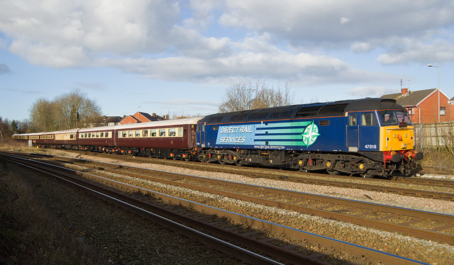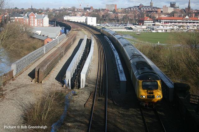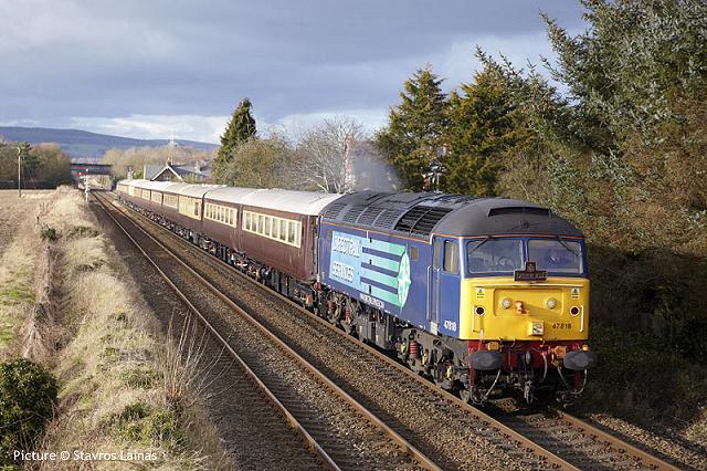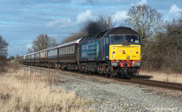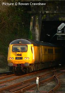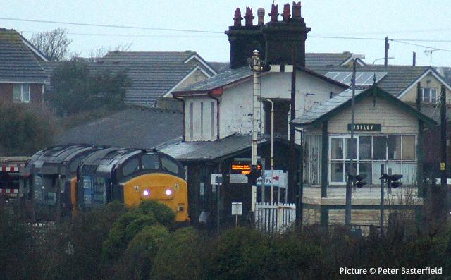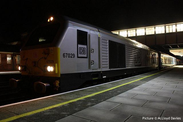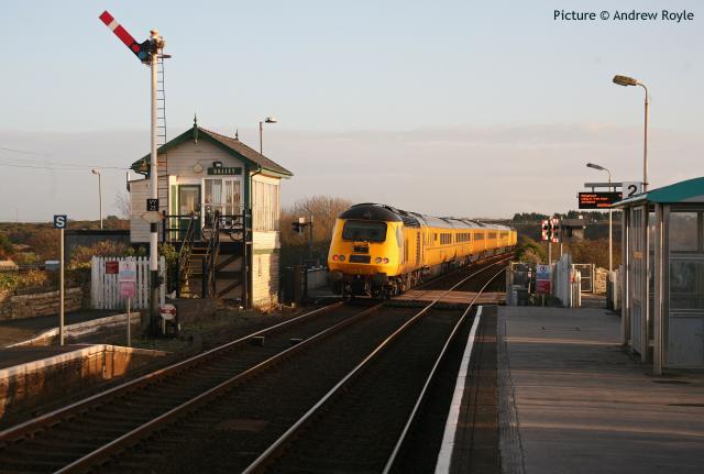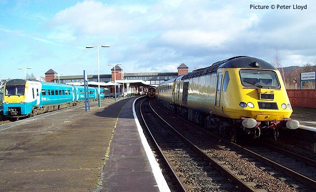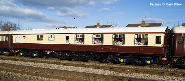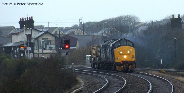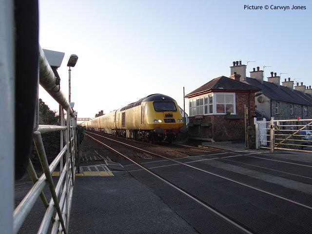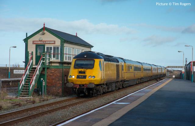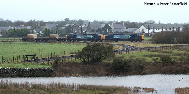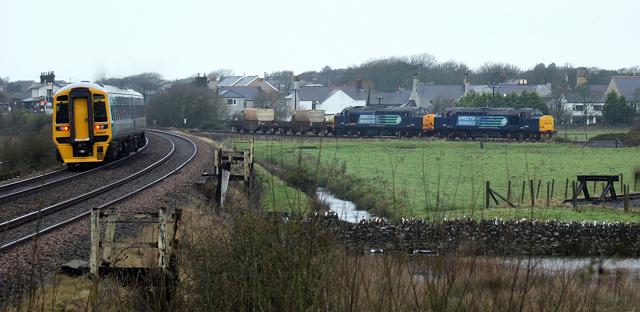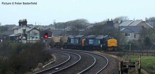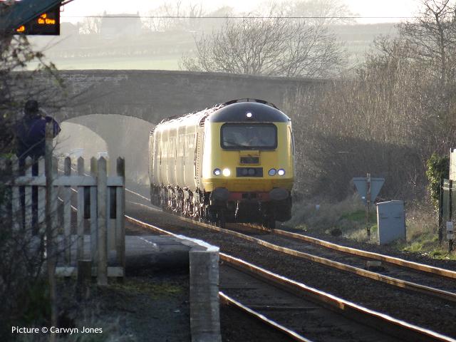 ![]() A Class 158 crosses the swing span of Barmouth viaduct across the Mawddach estuary, 15 February. Picture by Ian Wright. 67 029 on the Express![]() A 'stop press' news item: 67 029 Royal Diamond worked the 18:21 Cardiff - Holyhead express on 18 February standing in for the usual blue 67s, and was photographed at Bangor by M.Lloyd Davies. New Measurement Train![]() A track recording train formed of the HST-based 'New Measurement Train' visited North Wales on 14 February as train 1Q30, Derby to Holyhead and return to Crewe. We pick it it up crossing the River Dee at Chester in Bob Greenhalgh's picture above. Can anyone explain why some of the bridge metalwork has been left unpainted in the recent refurbishment project? The attached footbridge over the river is still shut and a notice says it will 'open in spring.' ![]() Abergele (Tim Rogers). ![]() Llandudno Junction, at 14:20 waiting for the signal in platform 4. 175 115 is in Platform 2 on a Llandudno branch turn and a 158 calls at Platform 3 (Peter Lloyd). ![]() Both Class 43 locos were buffer-fitted versions on this occasion. This is 43 014 - the numbers are on these locos are very hard to spot. ![]() Carwyn Jones deployed his telephoto lens to capture the train approaching Llanfair PG, having just left the single-track section across the Britannia Bridge. ![]() 43 013 trailing (with 43 014 leading) through Valley on the return run. Picture by Andrew Royle who tells us that as things stand, the plan is that a loco-hauled set will cover the North Wales coast and Welsh Marches routes for track geometry monitoring in future, so this may be the last appearance of the NMT along the Coast . However, plans have been changed before, so time will tell. ![]() Approaching Llanfair PG station the return run (Carwyn Jones) ... ![]() ... and at the level crossing in a wider-angle view (Carwyn Jones). ![]() Bangor (Rowan Crawshaw). Shrewsbury-Chester Rail Users AssociationA Public Meeting will be held on Wednesday 6 March 2013 starting at 19:30 in St Mary’s Church Social Club, Regent St, Wrexham when the subject will be: Track re-doubling, opportunities after 2015. The speaker will be Mr Michael Bagshaw, Commercial Director, Arriva Trains Wales. Followed by a Question and Answer session. Visitors are most welcome to attend. Valley Flasks - picture by Peter Basterfield![]() Not too long ago, views of the flask train serving Valley for Wylfa Power Station were a 'staple diet' of this page, but in 2013 such a train is an unusual event. One did run on 13 February, and Peter Basterfield used public viewpoints at Valley to record the working for us. Above, the view from the road entrance to the sire on the A5 road. The DRS locomotives are 37 261 (nearest the camera) and 37 601 Class37 - Fifty. It would appear that the flasks, once loaded, are kept separate until departure time. ![]() Above, the locos propel the two FNA wagons from the loading point ... ![]() ... and round the triangle towards Valley station. The lines in the foreground allow the train to be reversed so that the loco which leads the train from Crewe westbound usually also leads it eastbound to Crewe. ![]() The public footpath from the station alongside the line - note the two 'ladder stiles' - is a favourite haunt of photographers, especially when steam locos use the triangle to turn round and haul their trains chimney-first from Holyhead. 158 837 passes with the 11:08 Birmingham International - Holyhead. ![]() The train reverses out, at a maximum allowed speed of 15 mph, on to the main line in Valley station, having previously contacted the signaller who will have lowered the level crossing barriers, change the points and clear a 'ground disk' signal, just visible here alongside the train to authorise the movement. This signal is interlocked with a 'trap point' which will derail any vehicle that passes it when the signal is not clear. ![]() Once safe behind the Valley home signal (VY23), the train can leave for Crewe when the line is clear as far as Gaerwen, and this signal is 'pulled off' by the signaller. This procedure is always carried out as expeditiously as possible. The station building at Valley is an original Chester and Holyhead structure to the design of Francis Thompson; compare the one at Flint, and the recently-refurbished original building at Prestatyn. ![]() In Peter's final view, the train has departed and the signal has been put back to danger as soon as the train passed. The flasks are transported by road to and from Wylfa, which is on the north coast of Anglesey. The power station is currently operating just one of its two reactors, and is the only 'Magnox' station still operating; the fuel elements are no longer manufactured, and it will have to close if the current stock runs out before its definite closure date in 2014. Northern Belle news![]() Friday 15 February saw the Northern Belle train take its luxury passengers on a tour, train 1Z49, from Coventry to Coventry via Crewe, Wrexham and Wolverhampton. It passed Stavros Lainas at Gobowen a little late at 15:24 with 47 818 leading. Based on pictures submitted to Rail Express magazine, the Northern Belle is apparently the most-photographed train in Britain; it certainly is very photogenic, and kept in very good external condition, including the DRS locos which haul it. ![]() Seen above passing Wrexham, the third coach is Mark 1 Kitchen First No. 325 Duart. This coach has an interesting history, dating back to 1961 when British Railways London Midland Region, which had a great deal of autonomy at the time, ordered from Swindon Works a batch of 'Restaurant Kitchen First' carriages numbered M 306 - 342. ![]() A close-up of 325 with diners enjoying their lunch: 'The only way to travel' says contributor Mark Riley. The RFK vehicles were intended to replace the remaining pre-war restaurant cars which were in use on principal expresses, and contained a kitchen and 24 first class seats; second-class passengers would be