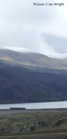 Snow on Diffwys as the 11:30 Pwllheli - Machynlleth heads south off