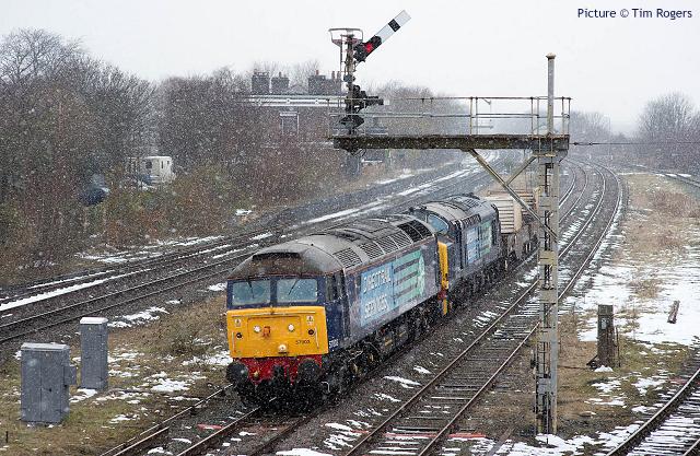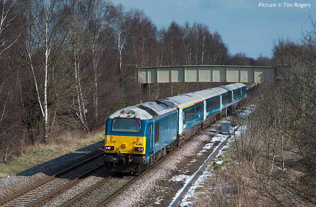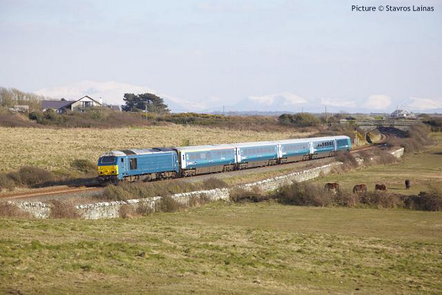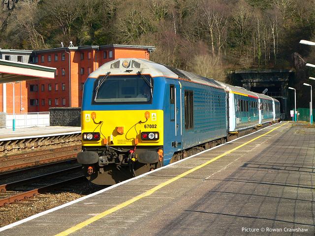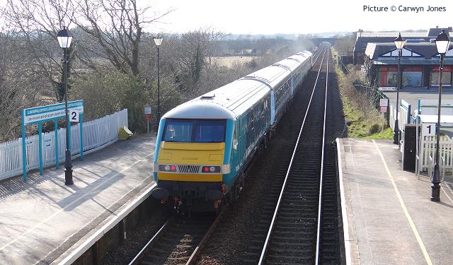 ![]() North East Wales suffered some of the heaviest of the recent snowfalls. 175 111 arrives at Ruabon with the 12:45 departure for Cardiff Central. Our congratulations to Arriva Trains Wales staff who managed to run a service in these conditions. Picture by Martin Evans. Bank Holiday boat trains![]() It's good to see Arriva Trains Wales making good use of their loco-hauled trains when not in weekday Holyhead - Cardiff service. The 'Premium' service does not run on Bank Holidays, but a lot of ferry passengers to and from Ireland can be expected on Good Friday and Easter Monday, so it was decided to run the train from Holyhead to and from Crewe, using timings that have been used before, 12:16 Holyhead - Crewe arr 14:18 and Crewe 14:25 - Holyhead 16:25. Fine weather brought out our contributors with their cameras on Friday, as these pictures testify. Above, Stavros Lainas was at Valley to see the train soon after leaving Holyhead, Driving Van Trailer leading. ![]() Rhyl at 13:25 (Roly High). The train did not stop here, calling only at Bangor and Chester. ![]() Soon after passing Rhyl with its distinctive church spire; the Driving Van Trailer 82308 (Ivor Bufton).... ![]() ... 67 002 propelling (Ivor Bufton). ![]() Approaching Mostyn (Tim Rogers). Passing Northgate Locks, Chester at 13:52 (Bob Greenhalgh). ![]() The return train, 1D01 14:25 Crewe - Holyhead, at Shotton (Tim Rogers). ![]() 67 002 arrives at Bangor (Rowan Crawshaw). ![]() Approaching Llanfair PG (Carwyn Jones)... ![]() ... and seen from the rear running through Llanfair PG station on the way to Holyhead (Carwyn Jones). ![]() Rhosneigr, with a snowy Snowdonia in the background (Stavros Lainas). Porthmadog Harbour station works - pictures by Dave Sallery![]() Some views from 25 March of the works in progress at Porthmadog Harbour station. The intention is to create a separate platform and run-round loop for Welsh Highland Railway trains and thereby allow both Ffestiniog and and Welsh Highland trains to be in the station at the same time, as well as avoiding the reversal of Welsh Highland trains needed to reach the present station. ![]() New turnouts in place out on the widened part of the Cob embankment. The new track plan can be found along with more picture and videos on the WHR Society website. ![]() This will be a relay room containing equipment for the points and signals and associated interlocking. ![]() All will be controlled from this new signalbox. North Wales in AustraliaReaders may recall our asking for pictures of Bangor to help Anthony Ashley, who is creating a North Wales Coast model railway in Australia. Anthony has also been in touch with our friend Geoff Poole who runs the '6G Llandudno Junction' website, and has now supplied him with some information and pictures of the planned N gauge layout, and the progress of construction so far. The model when complete will represent Conwy, Penmaenmawr and Bangor as they were in 1966. Follow this link to read the article. Franchise Fudge![]() On 26 March a 10-car Super Voyager consist, 221 115 Polmadie Depot in its Bombardier special livery leading, 221 107 Sir Martin Frobisher rolls into Rhyl on time (11.43) with 09:10 London Euston to Holyhead. On the same day the government announced that Virgin Trains, who, following the franchise award fiasco last year was awarded a management contract to run the franchise until November 2014, have been given a further extension until April 2017. Extensions have also been granted to 13 of the 16 existing franchises, to avoid having to re-let more than three or four contracts per year. The East Coast Main Line operation, currently being run by a Government-owned company, will be returned to the private sector in 2015, and Virgin Trains have indicated that they will bid for that franchise as well. Ruabon in the snow - pictures by Martin Evans![]() Having been snowed in for three days I escaped to Ruabon station on 25 March in order to travel to Wrexham and attach a few pics which demonstrate the recent wintry conditions. Above, 158 833 and 158 827 depart for Shrewsbury at 12:15. ![]() Part of the Arriva gang endeavours to clear the platforms. Locos lucky and not-so-lucky - report by Ken Robinson![]() Well done to the Bo'ness and Kinneil Railway Diesel Group and DRS for saving 37 401 Mary Queen of Scots from the scrap man. Above is a photo of 37 401 at Blaenau Ffestiniog on a Pathfinder railtour on 31 May 2008 (in the company of 37 417). ![]() Not so lucky was 47 829 which was recently consigned to oblivion in February at Booth's scrapyard. Introduced to traffic in September 1965, as D1964 in dual green livery, after several changes it appeared in its new 'Police' livery - part of a British Transport Police anti-trespassing campaign - at Birmingham International on 25 March 2002. The attached photo shows it passing Llanfair PG a few days later on March 28 2002 on the mid-morning Holyhead - Euston Virgin service. It made a number of appearances in North Wales at that period, while part of the Virgin Cross Country fleet. Llangollen Railway back in business - report by Mark Riley![]() After the worst snowfall in 50 years and a gargantuan clear up operation, the Llangollen Railway was able to re-start public services on Good Friday, 29 March, with ex-GWR pannier tank 6430 seen here working the 11:00 Llangollen-Carrog, approaching the Goods Junction. Even a week after the last snow fell, there was still a huge volume of snow on footpaths, fields and hills, and even some minor roads, making for some stunning scenery. ![]() Not surprisingly, there were minor delays, with frozen points at Carrog. 6430 is seen in the splendid snowy countryside with the return 12:15 Carrog - Llangollen. ![]() Non-stop through Berwyn. There was still so much snow here that it was impossible to allow people off the train onto the platform, and just as impossible trying to get down onto the station due to the deep lying snow. This was a location too good to miss fo
