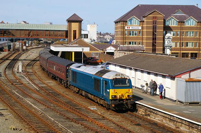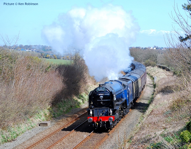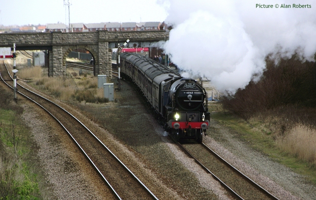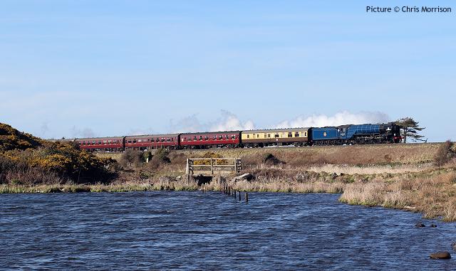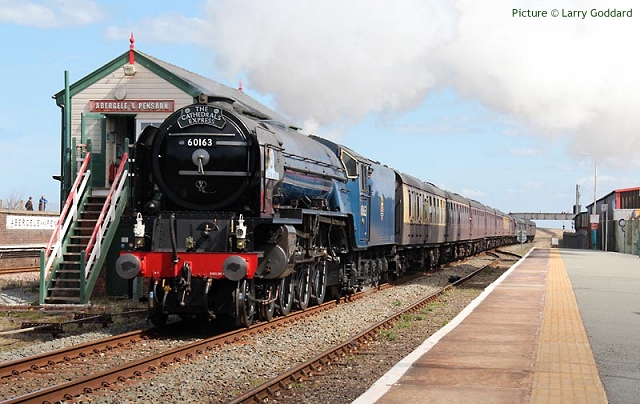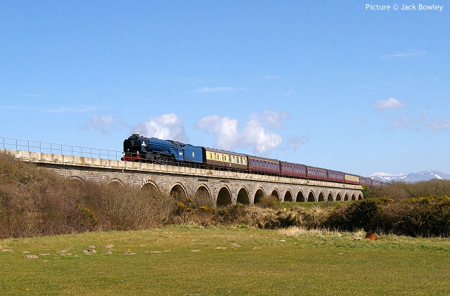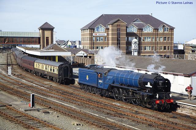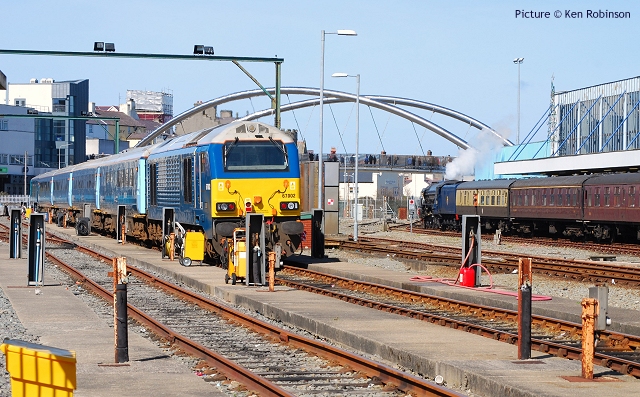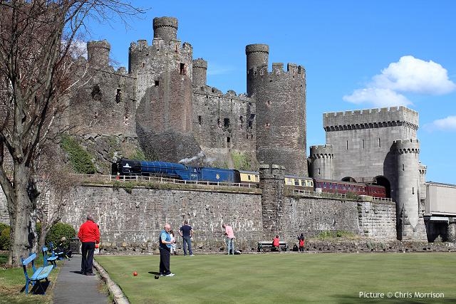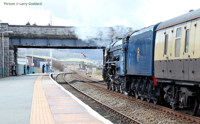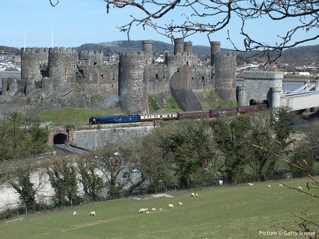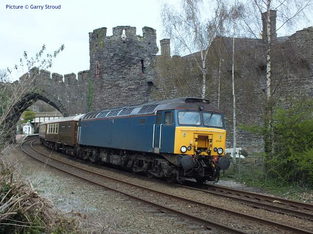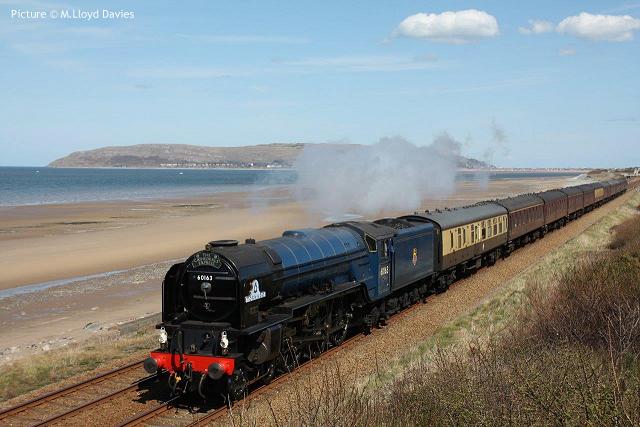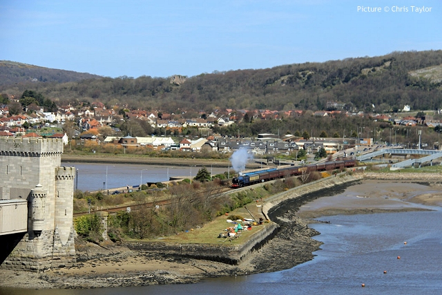 We are very sorry for the disruption caused to passengers and 'Steam Dreams' are also grateful to the many rail industry colleagues from various companies who supported the operation. Tornado is now at Crewe Heritage Centre where full repairs will be carried out in the coming weeks. This will return Tornado to full health with both air pumps working normally. Some steam trains which run down the coast have a diesel loco on the rear which provides some insurance in case of problems; even the owners of the very reliable Duchess of Sutherland invariably take this option. Who decides whether it is necessary? Incidentally, one might also wonder why, when the former four-track line was 'rationalised' in the 1970s and 1980s, extra tracks for overtaking purposes were retained on the westbound line at Abergele and Rhyl, but on the eastbound 'up' line between Llandudno Junction and Chester there is only Holywell Junction, a bad place to be stranded as there is no station there. The current improvement plans for the line include provision of additional lines (but no extra platforms) at Rhyl in both directions, and removal of the 'loops' at Abergele and Holywell Junction. Cumbrian Coast and Mountains Statesman![]() Another special in North Wales on 20 April was the 'Cumbrian Coast and Mountains Statesman', operated by Statesman Rail, for the benefit of passengers from Holyhead, Ty Croes (something of a 'first'?), Llanfairpwll, Bangor, Penmaenmawr, Llandudno Jct, Colwyn Bay, Rhyl, Prestatyn, Flint, Shotton, Chester, Frodsham, Warrington Bank Quay, and Wigan North Western who responded by buying all the tickets for the run over the Cumbrian Coast and Settle - Carlisle lines. An essential preliminary was the empty working from the West Coast Railway Company (WCRC) depot at Carnforth to Holyhead the previous day, 19 April, pictured above at Llandudno Junction by Peter Lloyd. Leading was former Arriva Trains Wales regular 57 316, now owned by WCRC. ![]() On the rear, 57 601, passing Llandudno Junction (Larry Davies). ![]() On Anglesey at Tywyn Trewan Common (M.Lloyd Davies). ![]() On the day, the 1Z67 05:45 Holyhead - Carlisle railtour passing Mochdre with 57 601 leading and 57 316 on the rear (Jack Bowley). ![]() Helsby (Stavros Lainas). Note the predominance of Pullman-liveried coaches in this train. ![]() Running through Conwy town walls, 57 316 leads the empty stock returning to Carnforth on 21 April (Garry Stroud). North Wales Coast home page Archive Previous Notice Board |
