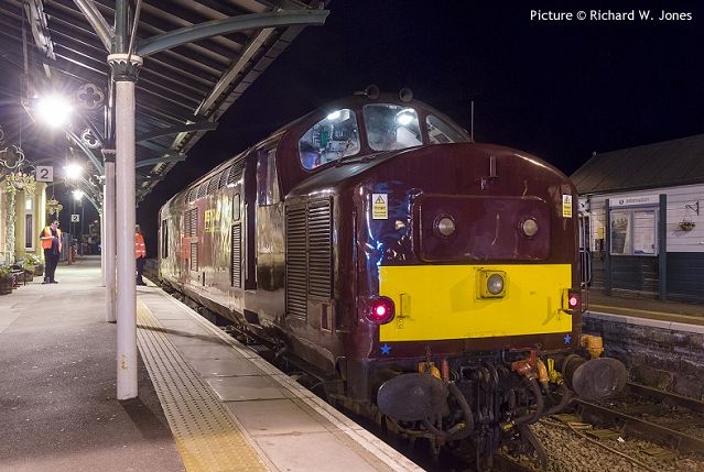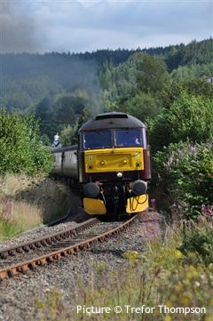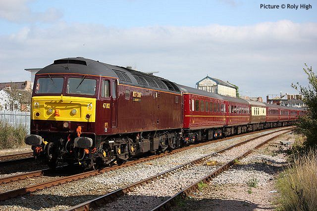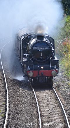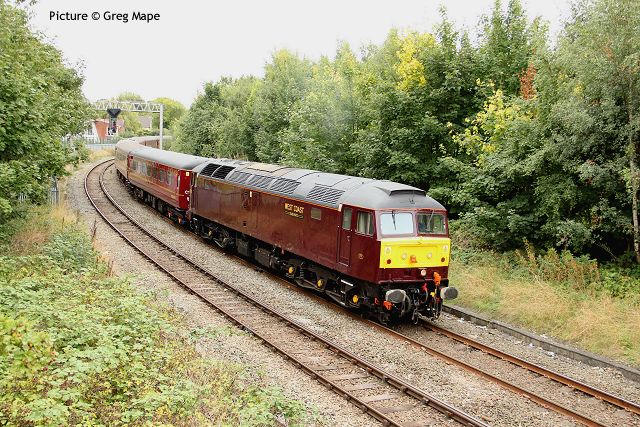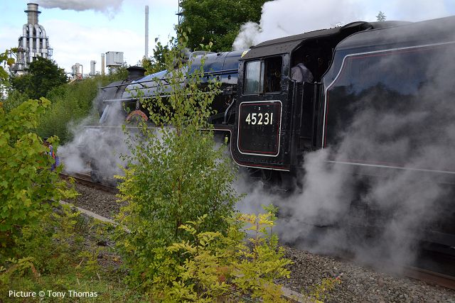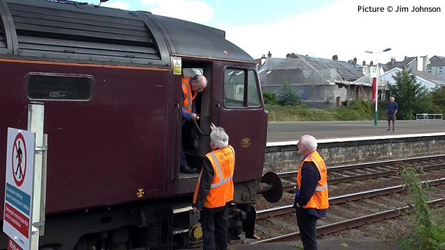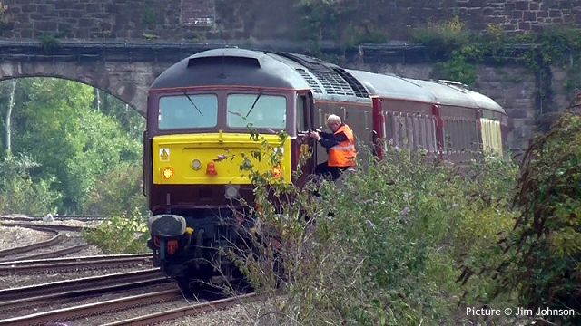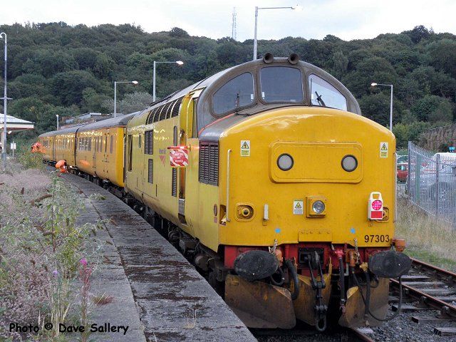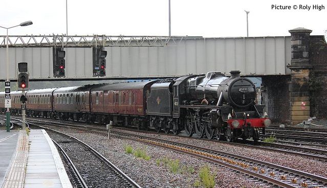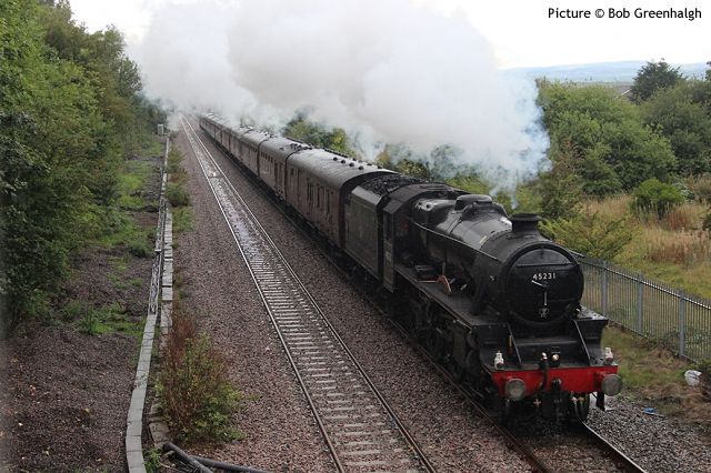 ![]() The Class Forty Preservation Society's 40 145 (345) at Manchester Piccadilly with train 5Z91 13.42 Castleton - Longsight Wheel Lathe Monday on 14 September, bringing six coaches to have their tyres re-profiled. Picture by David Wood. This loco and many others will be in passenger action at the East Lancashire Railway's Autumn Diesel Gala on 26-27 September. Still many more items in the inbox - look out for an extra issue at the weekend.- Charlie Incident at Holywell![]() 221 117 The Wrekin Giant , lead unit of train 1R24, 05:51 Holyhead to London Euston, stands at Prestatyn on 14 September after being turned back from Holywell Junction where it a person was threatening to jump off a bridge. It eventually departed Prestatyn 174 minutes late at 09:52 and subsequently cancelled on arrival at Crewe. Other services were severely affected: the 06:55 Holyhead - London was terminated at Llandudno Junction. Picture by Jim Coates. Conwy Valley Explorer![]() West Coast Railways had advertised a 'Conwy Valley Explorer' excursion from Sheffield to Blaenau Ffestiniog on 9 September, and a second one from Scarborough on Saturday 12 September. In the event, there was just one train, from Scarborough via Sheffield on 9 September. Power was provided by 47 854 Diamond Jubilee and 47 802. The train avoided Manchester by the freight-only line from Hazel Grove High-Level Junction to Northenden Junction, then down the sharply-curved connection from Skelton Junction to Deansgate Junction and on to Chester via Northwich. Greg Mape's picture shows 47 802 leading down the curve from Skelton.The Up line, which is still old-style bullhead rail has a checkrail round the curve, whilst the Down line, being used by the train, had been relaid in modern flat-bottom rail, doesn't. ![]() Rhyl (Roly High). ![]() Arrival at Llandudno Junction (Jim Johnson). ![]() Use of 47 854 was appropriate on the day that the Queen achieved the longest reign of any British Monarch, which she celebrated with a steam trip on the Borders line in Scotland which re-opened on the same day. Stalwart of The Junction Rodney Fitzgibbon shows us the single-line token for the Conwy Valley line. He started work on the railway in 1964, so has passed his Golden Jubilee as a railwayman (Jim Johnson). ![]() The Driver has changed ends and accepts the token, in its leather pouch - which authorises him to proceed to North Llanrwst where it will be exchanged for a North Llanrwst - Blaenau Ffestiniog token (Jim Johnson). ![]() The train came to an abrupt stop just after rear loco 47 802 had cleared signal LJ66, for reasons unknown to us. One of the crew visited the cab of 47 802 to investigate (Jim Johnson). Mercifully, the train was under way again after a few minutes; unfortunately, not before it had caused a slight delay to 1D83 09:10 Euston - Holyhead as it had blocked the points when it stopped. ![]() Betws-y-Coed where passengers could alight if they wished (Dave Sallery). ![]() Stabled in the loop Blaenau Ffestiniog (Dave Sallery) ![]() Earl of Merioneth at Minffordd (Dave Sallery). ![]() Linda at Minffordd, empty stock to Tan-y-Bwlch to take the West Coast excursioners back to Blaenau after a trip on the Ffestiniog Railway (Dave Sallery). ![]() The return train at Skelton Junction (Greg Mape). Vegetation is encroaching on to the Down Goods Loop. The Cheshireman![]() 45231 The Sherwood Forester worked a Bristol - Chester excursion on 12 September, dubbed 'The Cheshireman'. A planned water stop at Chirk seems to have gone a little awry, as the steam loco ran past the station platform which is normally where water is provided, and the train came to a stand with the rear-end diesel, 47 746, in the platform, as pictured (above) by Anthony Thomas. ![]() Or was this an intentional plan? Either way, the fire engine providing the water relocated itself to the Industrial Estate on the other side of the line; Anthony Thomas took this picture through the fence. ![]() The approach to a rainy Saltney Junction, photographed by Bob Greenhalgh from the footbridge which replaced a level crossing years ago. ![]() Arriving at Chester (Roly High). ![]() Picture by Roly High. ![]() Checking the valve gear (Roly High). ![]() The train has shunted to the sidings, loco and support coach have been uncoupled, and a crewman works the hand points to allow the loco to reach the siding with the water supply (Roly High). ![]() 'I think there's a tap here somewhere, Sid!' ... or, waiting for the water tanker (Roly High). ![]() On the rear, 47 746 (Roly High). Contrary to our previous remarks about Mr Fudge, he was a railwayman, latterly working for Arriva. ![]() Chester racegoers in party mood as 175 109 arrives in platform 7. ![]() 45231 storms past Hargrave with the return 'Cheshireman' to Bristol (Ian Pilkington). Cambrian development![]() Richard W. Jones writes: 'On Wednesday night 9 September, West Coast loco 37 668 got 'dragged' to Machynlleth by 97 304, and in the early hours the following day (10th), tests were started on its ERTMS compatibility. This is the first non 97/3 and non-158 piece of rolling stock to work under ERTMS conditions here. All tests take place in the early hours of the morning, and other than at Machynlleth, in complete darkness.' The project to equip West Coast Railways locomotives is doubling as a test-bed for Hitachi-made ERTMS equipment. Wider application of the system will require equipment to be sourced from a variety of suppliers; the 158s are fitted with Ansaldo STS equipment. See Richard's Rail Pics for many more Cambrian scenes RCTS meetingThe Railway Correspondence & Travel Society (RCTS) holds its first meeting of the season at the Town Crier opposite Chester railway station on Monday 21 September at 7.30 p.m. Saughall member John Feild is showing a colour slide presentation of his favourite scenes of locomotive types that were part of the former LNER and consequently of BR. There are likely to be views of some of these at the fondly rem