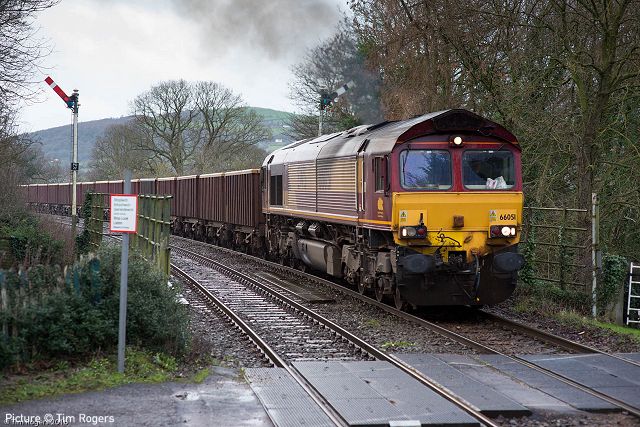 ![]() On 29 January, the Valley - Crewe flask train passes Rhyl Marine Lake, powered by a confusingly-numbered pair, 37 069 and 37 609. Picture by Tim Rogers. A plethora of contributions ... but a shortage of time. Look for an additional issue covering the 'Mersey Weaver' and Nantwich signalbox on Friday morning 5 January. Thanks as always to all. - Charlie The flying banana rides again![]() 43 014 The Railway Observer heading out of Chester past the Roodee racecourse on 27 January leading 1Q30 10:55 Derby R.T.C.(Network Rail) to Crewe C.S. (L&NWR Site) via Holyhead Plain Line Pattern Recognition train. Picture by Bob Greenhalgh. ![]() Approaching Flint (Russell Withington). ![]() 43 013 on the rear at Flint (Russell Withington). The aerodynamic shape of the Class 43 loco leads to the exhaust being drown down over the rear cab with resultant staining. ![]() Approaching Abergele & Pensarn station (Tim Rogers)... ![]() ... and meeting at the station, 1H89 13:07 Holyhead to Manchester Piccadilly with Driving Van Trailer 82307 at the head (Tim Rogers). ![]() On the rear of the Manchester train, 67 014 which has been the regular loco this year so far (Tim Rogers). ![]() Approaching Valley under the A55 bridge, with the line to the Flask loading point in the foreground (Jim Johnson). ![]() Passing Valley signalbox. Note the telephone number on the signal (Jim Johnson). ![]() In platform 1 at Holyhead (Jim Johnson). ![]() The terminus is a good place for some close-up views; the name 'New Measurement Train' is seldom referred to now when talking of this train (Jim Johnson). ![]() The nameplate of 43 014, which was unveiled in June 2014; a most appropriate name for a track recording train. It is actually the third loco to carry the name: 37 890 was named in 1994, and the name passed to 60 001 in 2001. Unfortunately that loco suffered a drastic engine failure in 2006 and looked destined not to work again, but in fact is was included in the the DB Schenker Class 60 Refurbishment Programme and was released back to traffic in September 2013 as the 18th overhauled loco, now also in DB red. Formed in 1928, the Railway Correspondence and Travel Society continues to thrive, and its Merseyside, Chester and North Wales branch meets regularly in Chester - the meetings are listed in our Calendar column. ![]() The return train heads through Bangor (Jim Johnson)... ![]() ... and heads into Bangor Tunnel at 16:33 (Jim Johnson). SARPA meeting cancelledGareth Marston writes: 'Unfortunately Angus Eickhoff, chariman of the Shrewsbury - Aberystwyth Rail Passengers' Association (SARPA), has been taken ill and has had a spell in hospital recently, so he has not been able to work on any emails or update the website. in addition there is engineering work on the line the weekend of the meeting and there is a bus replacement service between Newtown and Machynlleth on the day. In light of the above it has been decided to cancel the meeting planned for 13 February, SARPA will aim to meet in Caersws in March as planned.' SARPA is still active: member Denis Bates was recently seen on the Sunday politics show. Freight scenesOn 27 January at Penyfford, 66 051 arrives with train 6M18, 18:55 New Cumnock colliery to Penyffordd cement works, carrying coal in 'MEA' box wagons... ![]() ... while 150 281 calls at the station with 2J73 08:31 Bidston to Wrexham Central (Tim Rogers). ![]() On the same day, 66 080 brings 6V75 09:30 Dee Marsh to Margam steel carriers. 6 minutes early, though Wrexham General station over the link between the Borderlands Line and the Chester - Shrewsbury main line. The train will cross to the Up line to continue south (Tim Rogers). ![]() The next day, 28 January, and train 6V75 again, this time in the wooded surroundings of Cefn-y-Bedd and the doyen of the class, 66 001, now resplendent in DB Schenker livery (Tim Rogers). It was back in April 1998 that our site reported on this loco being on display at Chester station shortly after arrival from Canada. Track Recording Train, old style![]() Another Plain Line Recognition Train ran on 27 January, 1Q76 07:50 Llandrindod to Longsight Depot, Manchester via Shrewsbury, Wrexham, Bidston (reverse), Croes Newydd (reverse), Chester and Northwich, top-and-tailed by 37 606 and 37 608. Tim Rogers photographed it arriving at Wrexham General at 10:23 with 37 606 leading. The train had spend the previous day checking the Central Wales line from Llandrindod to Llanelli and back. ![]() The train takes the Bidston route at Wrexham, with 37 608 on the rear. The consist: Mk2e 977868 (Ex TSO 5846) Radio Survey Train Test coach, Mk2f 999550 Network Rail High Speed Track Recording Train coach, Mk2f 1256 (Ex RFO) Plain Line Pattern Recognition vehicle 'PLPR3', Mk1 6261 (Ex BG 81284, 92988) Network Rail Generator van (Tim Rogers). ![]() Bob Greenhalgh photographed the train at Penyffordd station at 10:39 heading for Bidston with 37 606 leading. ![]() Returning from Bidston with 37 608 leading through Hope at 12:01 (Tim Rogers). ![]() The train travelled down the branch to Wrexham Central (above) with 37 606 leading. Picture by George Jones. Arrival at Central was 19 minutes late, but the stop-over time allowed there provided for some recovery. ![]() Wrexham Central to Chester requires two reversals: first at Wrexham Exchange Junction to pass through platform 3 at Wrexham General station (above, by George Jones) and then at Croes Newydd. ![]() Having reversed at Croes Newydd loop, the train runs past the Down Main platform at Wrexham General heading for Chester (Martin Evans). ![]() Approaching Chester at 13:29 (Bob Greenhalgh). ![]() In the cutting south of Stockport station (Charlie Hulme). The train continued to Manchester Piccadilly before returning the short distance to Longsight. ![]() The next day, 28 January, the train ran from Longsight to its base in Derby via Wrexham and Wolverhampton. Tim Rogers captured it at Rossett. Clwyd Railway CircleDavid Jones writes: 'This month's