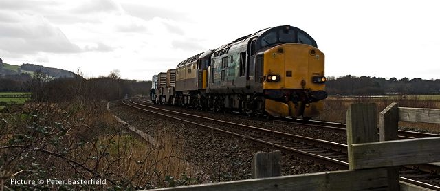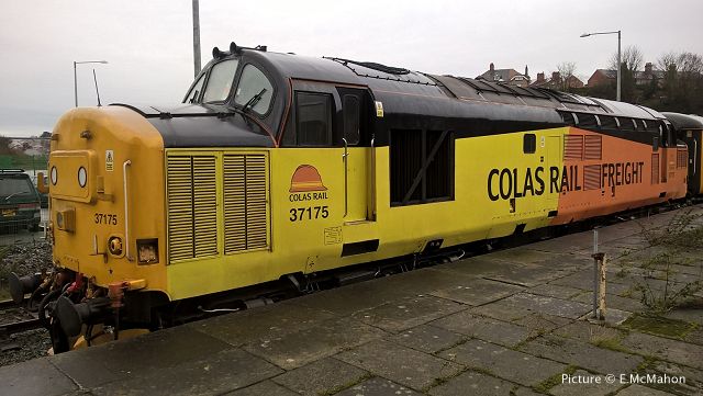 Colas Rail have apparently won the contract to run Network Rail's measurement trains some time ago, although DRS locos continued to be the mainstay. However, on 17 February, 37 175 made an appearance at Bangor, working push-pull with a driving trailer. The first Colas-livered loco to reach this far along the Coast?  Picture by E. McMahon.