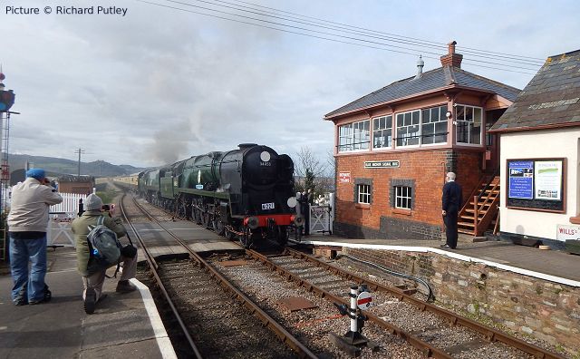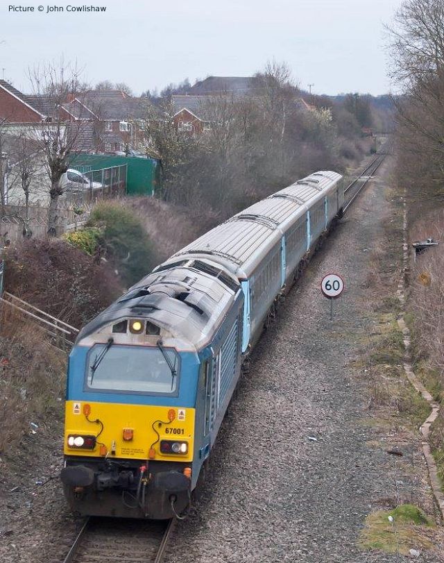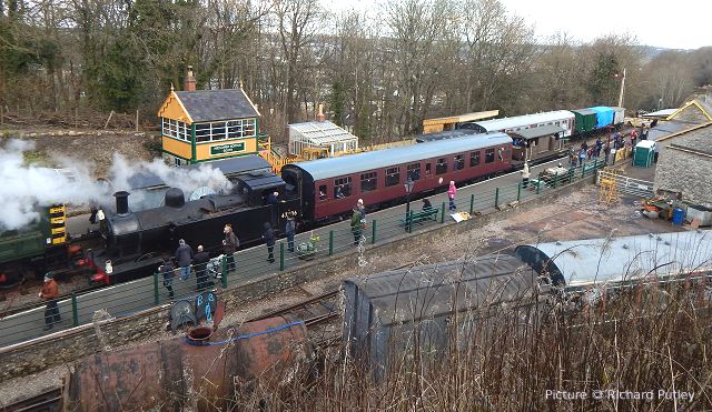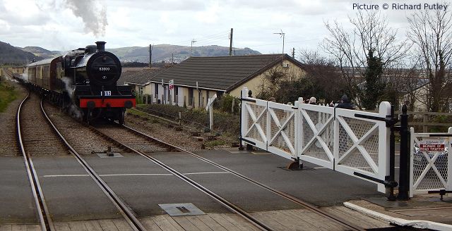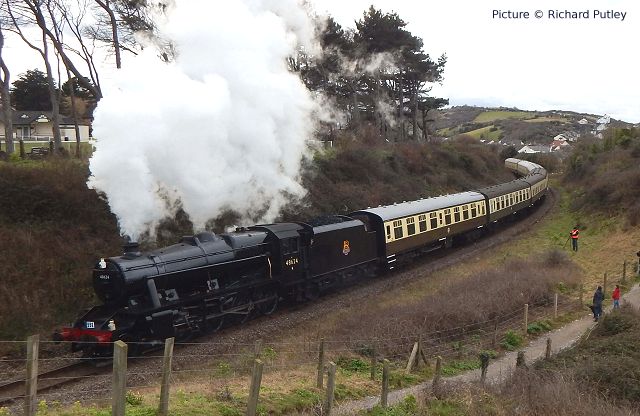 ![]() 67 002 brings the 09:50 Manchester - Holyhead through Llanfair PG, 15 March. Picture by Richard Fleckney. Great Malvern to Criccieth, 18 March - with Richard PutleyHaving won a ticket to an event at the former Butlin's Pen-y-chain, I thought this was a perfect excuse for a ride on the Cambrian Coast line. So on Friday 18 March I set off from Great Malvern on the 09:45 to Hereford. Despite dire warnings on the monitor screens that trains were delayed due to 'signalling problems at Worcester' it was only a couple of minutes late. A punctual arrival at Hereford gave me plenty of time to catch the 10:28 to Holyhead, which I took as far as Shrewsbury. It was formed by 3-car class 175 115. Here we arrived into Platform 3 (above), the first time I've been on a train from Hereford that has done this. Crossing through the subway to main island platform I saw that the 11:29 to Aberystwyth and Pwllheli was due to depart from Platform 4. Meanwhile two Arriva Wales class 158s were in Platform 5 which was shown as a train to Birmingham International. I was puzzled when a single Arriva Wales class 158 - 158 820 - arrived on Platform 4, having come in from the Aberystwyth direction. Normally these trains reverse at Shrewsbury and then go on to Birmingham International. So I was expecting our train to arrive from the Birmingham direction. It turned out that Arriva Wales had decided to swap trains round. So we had to wait while all the passengers for the Birmingham line from 158 820 alighted and walked across to Platform 5 and boarded the train waiting there. As it was full and standing this took some time! We were then told that 158 820 would go through to Pwllheli; passengers for Borth and Aberystwyth would have to change at Machynlleth. These shenanigans at Shrewsbury meant we departed 10 minutes late. But by Newtown we were on time. As we journeyed on I saw evidence of recent track relaying with the old track panels dumped alongside. We crossed an Up Train at Talerddig, then at Machynlleth we ran in under caution. Passengers for Aberystwyth were told that another train was waiting at the far end of the same platform for them. This meant the majority of people aboard had to alight but I could stay in my window seat I had secured at Shrewsbury. By now the skies had cleared and it was a lovely day. We departed Machynlleth on time at 12:54 so I could relax and enjoy the ride. We passed an up train at Tywyn and continued on. At Harlech we had a booked 10 minute wait which gave me a chance to take a few pictures. 158 841 arrived on an up train and loads of school children joined our train. Departure was again on time at 14:31 and arrival at Criccieth (above) was too. As soon as I'd checked in to my hotel, I went straight out determined to enjoy the good weather. I photographed 158 820 returning on the 15:50 departure from Criccieth to Birmingham International. Then I caught the Number 3 bus into Porthmadog where I walked over to the Ffestiniog Railway Station and along the cob. From the Cob I photographed another class 158 on the next Down Train; in the distance there appeared to be a little snow on the top of Snowdon. I had not expected to see any trains on the Ffestiniog Railway. But after dining in Spooner's Bar at their station, I was surprised to hear the warning siren sounding. This indicated that the road barrier which stop traffic crossing the section of Porthmadog High Street which the Welsh Highland Railway run through. A group of people sat next to me, who I think were FR employees told me a light engine was coming from Dinas to pull next morning's train to Caernarfon on the Welsh Highland. It turned out to be the Blue Beyer-Garratt, 87, rounding off a thoroughly enjoyable day. Llandudno Adopted - report by Larry Davies![]() A group of members of the Llandudno & Conwy Valley Railway Society who have been accepted by Arriva Trains Wales as the 'Station Adoption' group for Llandudno Station, had their first meeting there on 18 March, and were briefed on safety and other issues by Ben Davies and Karen Kinder from the Company. ![]() A number of interesting projects were discussed including the restoration of a steam era seat from the town's station. Priority will be given to updating, refreshing and restocking the floral planters in readiness for a celebration in June where the station will play its part in the commemoration of the Queen's 90th birthday. On the Cambrian Coast ![]() A class 158 unit leaves Barmouth on 10 February heading for Machynlleth (Ian Wright). For a look at the Cambrian line in a 'golden era' visit the film 'Cambrian Coast' on the British Film Institute website. Richard W. Jones writes: 'A film made for the Great Western Railway Company to encourage people to discover - via the train - that "England isn't the only country in the British Isles". "Dear old Wales" is cast as the hospitable purveyor of wholesome holidays, with a never-ending supply of "smooth sands, sparkling seas, sunshine and good clean air" for those who are first seen crowding onto a train at Paddington Station in London. Dukedogs galore as well.' For those who would like to enjoy the trip today, Dave Sallery has updated his Cambrian Rail Cruise website with this summer's times and fares for the circular trip via the North Wales and Cambrian Coasts using the Ffestiniog Railway as a link. Doing the circuit is a good day out, and there is a special ticket available to do it, but each year Dave has to work hard to suggest practical timings. This year the 'clockwise' route seems the best, although it involves some quite early starts and a 12-minute connection at Blaenau Ffestiniog; Dave is always very interested to hear travellers' experiences of the journey; we'd welcome them here, too. Miscellany![]() Blaenau Ffestiniog station on the morning of 15 March, with 150 280 awaiting departure for Llandudno, and tamper DR73502 of the Trackwork company, on duty for the post-floor repairs to the track on the branch 