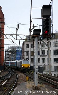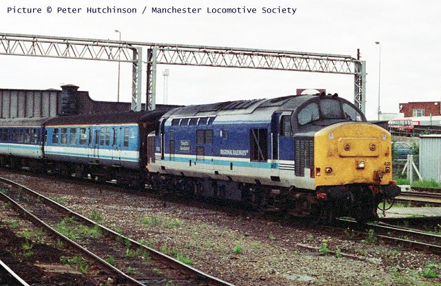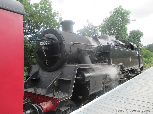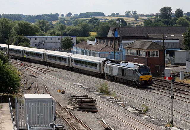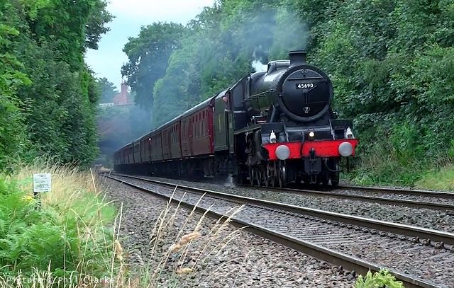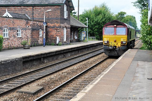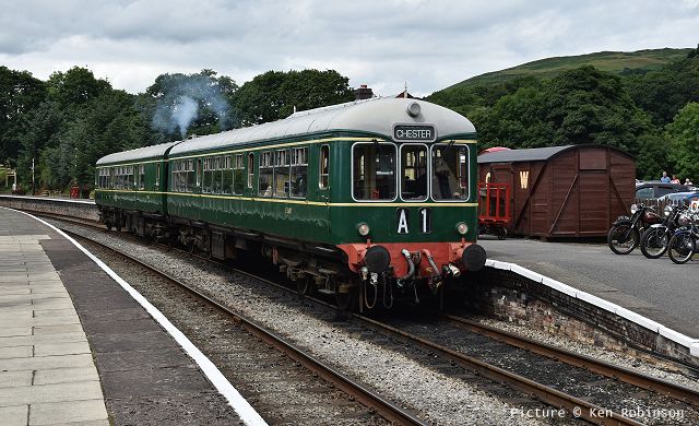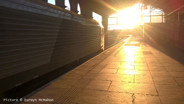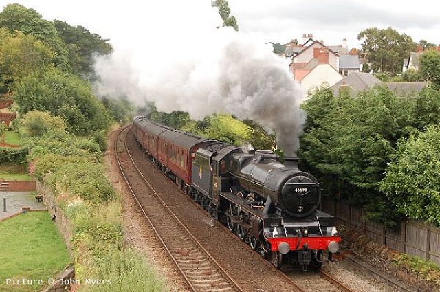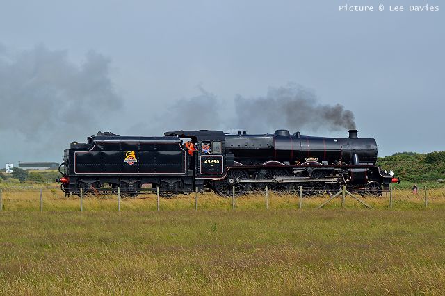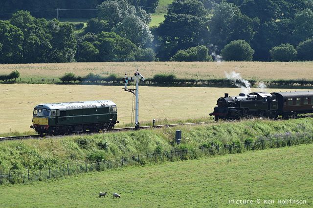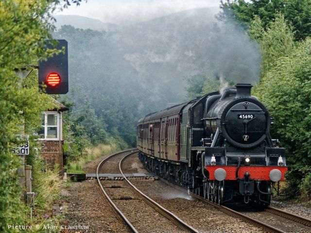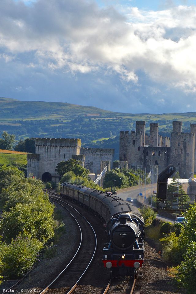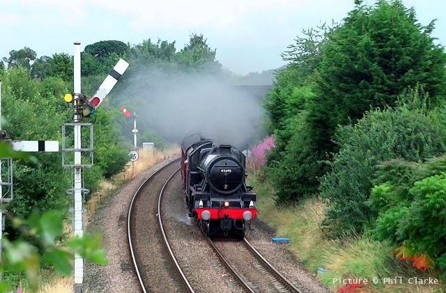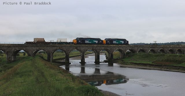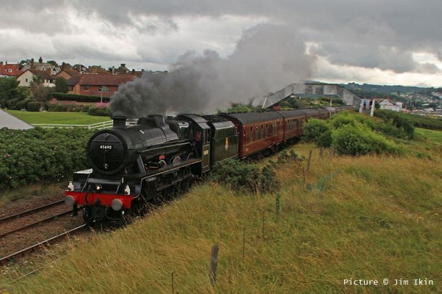 ![]() Silver and Gold as 67 012 pauses at Chester with the 19:34 Llandudno - Crewe train, 4 July. Picture by Eurwyn McMahon. 'Eisteddfod' to visit Eisteddfod![]() Following on from our item last issue about the nameplates of 37 429 Eisteddfod Genedlaethol, Dafydd Roberts, Keeper, of the National Slate Museum in Llanberis write to tell us that the nameplate acquired by Amgueddfa Cymru-National Museum Wales will be displayed on the Museum's stand in 'Y Lle Hanes' at this year's National Eisteddfod in Abergavenny, but on the final Saturday of the Eisteddfod - Saturday 6 August. Restoration work on it is almost complete, and Amgueddfa Cymru's Transport Curator, Dr David Jenkins, has prepared an accompanying panel looking at the history of the use of Class 37 locomotives in Wales. An excuse for another 37/4 picture: The view above, taken c. 1994 by the late Peter Hutchinson and now in the care of the Manchester Locomotive Society, shows 37 429 in its black-nameplate days arriving at Chester from North Wales. Behind the loco is one of the coaches transferred from the Waterloo - Exeter line, and still in Network SouthEast colours with the red lower stripe converted to blue. Does anyone know when the last of these received full Regional Railways colours? ![]() Dafydd also reminds us that railcar 175 003 was named Eisteddfod Genedlaethol Cymru by Bryn Terfel, at a ceremony held at Bangor station during the 2005 National Eisteddfod. Above is Eryl Crump's picture of the occasion from our archives. The name was applied to the unit whilst still in the colours of the First North Western company as a vinyl sticker, but does not appear to have survived the repainting into Arriva livery a few years later. Arriva seem to dismiss the idea naming of rolling stock, despite the publicity value of the naming ceremony; it will be a shame if their takeover of the Northern fleet results in the loss of the many interesting names worn by units in that fleet. It's probably best not to hold a public competition for a name though: that resulted in 175 103 being christened Mum. North Wales Coast Express![]() 24 July saw the commencement of this summer's series of Railway Touring Company 'North Wales Coast Express ' steam excursions with a run from Liverpool Lime Street to Llandudno and Holyhead. We pick up the train (1Z95. 10:04 from Liverpool) at Rainhill, with George Stephenson's famous skew bridge in the background. Picture by Peter Hanson. ![]() Frodsham (Phil Clarke). Although ultimately the names comes from classical mythology, like sister loco Galatea the loco was one of a series named after warships. In this case HMS Leander a light cruiser completed in 1933, as the fifth Royal Navy ship to carry the name, which was first used for a warship in 1780. The name passed to a frigate launched in 1961, which was eventually sunk while being used for target practice in 1989. ![]() Helsby (Phil Clarke). Train crews here have to be on the lookout for the signal which is on the fireman's side of the train for sighting purposes when rounding the curve, a vital part of their 'route knowledge.' ![]() Passing the flushing pools at Bagillt, the coaching stock reflecting in the water following a heavy shower. Note the two 'brake-end' coaches behind the loco; the first one is the support coach (Glyn Jones). ![]() Rhyl (Roly High). ![]() On the rear, in place of the more usual Class 47 or 57 used by West Coast Railways on tail-end Charlie duty, 37 668, which seems to have a rather squashed face (Roly High). This is one of the two West Coast locos, the other being 37 669, which are fitted with Hitachi ERTMS signalling equipment for use on the Cambrian lines. The Doppler radar and balise (transducer) antenna equipment has been fitted by re-designing one of the underfloor fuel tanks. 37 668 was tested on the Cambrian lines a few months ago, but we have hear of no revenue-earning work by either loco on ERTMS-fitted routes. Here is a link to an article by the people who carried out the work. ![]() Deganwy (Jim Ikin). ![]() Conwy (John Myers). ![]() Maesdu Golf Course, Llandudno, by Llandudno station's home signal (Lee Davies). ![]() Approaching Llanfair PG (Alan Crawshaw). The modern LED signal protecting the crossing contrasts with the signalbox which dates from around 1870, before the London and North Western Railway developed its familiar standard style. ![]() After arrival at Holyhead, Leander ran back to the triangle at Valley to turn (Lee Davies). The repaint in British Railways black helps to distinguish Leander from other preserved 'Jubilees' but on the other hand, creates a resemblance to the more common 'Black 5' type. The larger driving wheels with their 'splashers' are the most obvious identification point. ![]() The return train at Conwy (Greg Mape) ![]() 37 668 on the rear and Robert Stephenson's archway through Conwy walls (Greg Mape). ![]() Leaving the Conwy Tubular Bridge and approaching Llandudno Junction (Lee Davies). ![]() From Llandudno Junction, the train was 'dragged' by the Class 37 backwards down the Llandudno branch to collect the passengers who had alighted there (Lee Davies). The shunting moves at Holyhead on these occasions are more complex than one might think, as the Support Coach has been moved to the other end of the rake of coaches in order to stay with the loco. ![]() Passing one of the Jubilee's modern successors near Gwrych Castle (Greg Mape). ![]() Abergele, with precarious photographer in the background (Greg Mape) ![]() Rhyl, with smoke effects (Roly High). ![]() About to be 'photo-bombed' east of Rhyl by 158 826 with the ex 17.07 Birmingham International via Crewe to Holyhead (Roly High). Picture miscellany![]() The New Measurement Train at Prestatyn, 14 July, 43 014 The Railway Observer leading (Dave Sallery). ![]() 37 716 and 37 609 on 18 July on flasks westbound at 07:39 on Malltraeth viaduct (Paul Braddock) ![]() 67 012 at Bangor with the 09:50 from Manchester, 18 July (Alan Crawshaw). ![]()