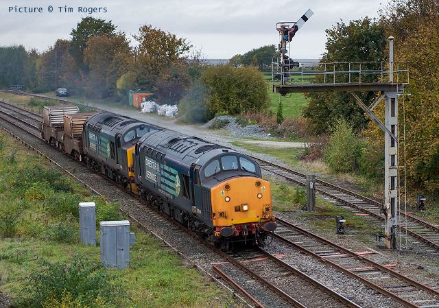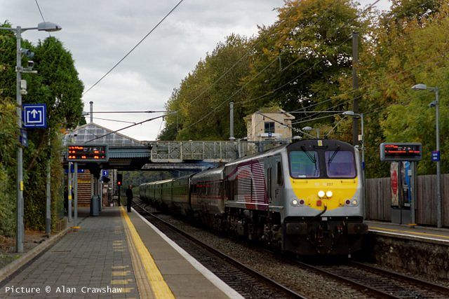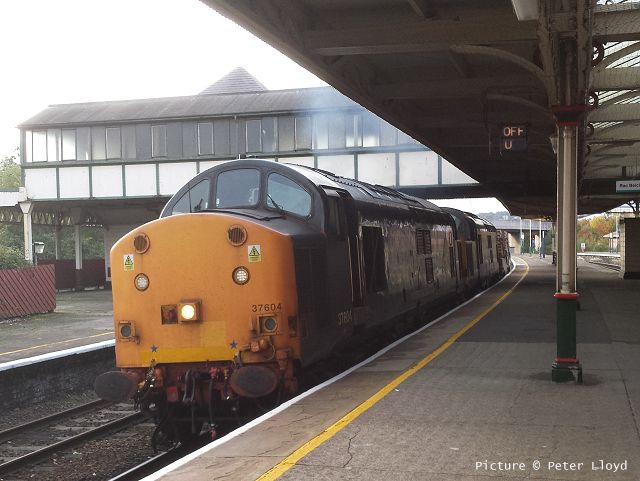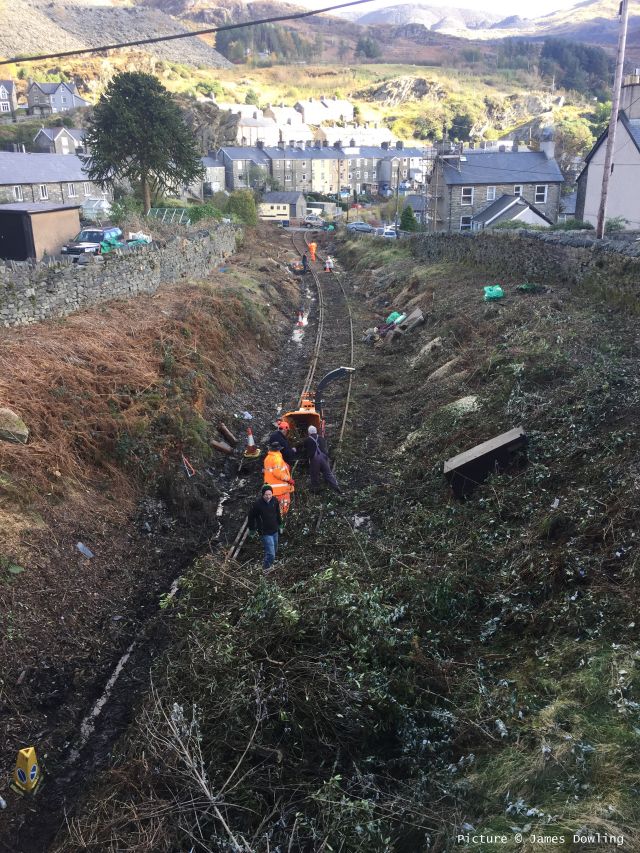 ![]() On 22 October, a Class 158 unit working train 2J03 8:53 Machynlleth to Pwllheli was slowing for its stop at Porthmadog when photographed by James Dowling taken from the Ffestiniog Railway's Porthmadog station. Passenger train gallery![]() Holywell Junction on 28 October: 158 838 and a class-mate on 1D14 13:08 Birmingham International to Holyhead (Tim Rogers). ![]() On the same day, 67 003 takes the 09:50 Manchester - Holyhead across Llanddulas viaduct, with the North Wales Cycleway in the foreground (Greg Mape). ![]() Northern Railway have released this picture of the first train, 158 752, to appear in their new livery, as well as receiving internal refurbishment. It remains to be seen whether that light grey can be kept clean in daily service. Then and Now - by Jim Ikin![]() Just a few more images from then and now. The first ones are of Penmaen Head, the now quarried-away head where the A55 now runs. Note the quarry jetty on the left. ![]() Although all the buildings have now gone under the A55 the wall on the left can still be seen. ![]() The entrance to the tunnel (which I believe is brick lined at this end and just cut out of rock at the other). ![]() The second set of images taken from Cliff Road are interesting in that I would like to know a bit about the engine and stock – the postcard is from 1933. ![]() The view from Cliff Road in 2016: the viaduct is just visible behind the A55 road. ![]() Looking towards Mochdre from there there is now a footbridge. The loco could be an LNWR 'Precursor' and what look like six wheel coaches.The postcard is from 1903 - 1905. ![]() A modern view (as near as possible) looking toward Mochdre. ![]() Conwy Road, on the left hand side of the postcard, is now obscured by trees. Trawsfynydd revival (again)![]() This picture taken by James Dowling on 22 October shows people, equipped with a power shredder, clearing the trackbed of the Blaenau Ffestiniog to Trawsfynydd line. Readers may have read in the local press that: The Trawsfynydd & Blaenau Ffestiniog Community Railway Company has been founded to carry out the work and run the trains. Among those backing the project is entrepreneur Colin Dale, from Essex, who said he wants to bring the line back to life. He says that 'Progress is happening quite fast and the day moves ever closer when trains will once again traverse the viaducts and cuttings on their way to Trawsfynydd and maybe one day beyond. We have been given a licence by Network Rail to clear and survey the line. This mothballed branch will become live once again when the licence is officially handed over from Network Rail.'Network Rail management appear to be taking this project seriously, as their spokesperson told the Daily Post: Network Rail is pleased to be working with the Trawsfynydd Railway Group with the collective aim of regenerating the disused railway land in Blaenau Ffestiniog. This first step is to clear approximately 275 metres of the line and complete a survey along this stretch of the railway. We will be working closely with the Trawsfynydd Railway Group and the local community with regards to the possible next steps once the initial clearance work and survey have been completed.It was back in 2009 when the name Colin Dale first appeared in our pages with his project to reopen the line - some contributor suggested that he was Colin Dale of the Monster Raving Loony Party, which prompted a reply from that Mr Dale to the general effect that even he was not that loony. Entrepreneur Mr Dale seemed to be rather naĩve about the procedures for taking over a line and running trains on it. Some work was supposedly done on the line (which had been disused since 1998, and he did succeed in refurbishing the Llyn Trawsfynydd café and running it for a while, but in 2012 he returned to Essex, citing health and financial problems. At the time he assured everyone that he had not given up his dream, telling the press: I always thought to myself that I’d get a resolution to leasing the old railway line quite quickly, but the process has now taken over two years and it’s still not complete. It took months of negotiation to allow our volunteers onto the line to clear it.Meanwhile, a plan by community group Antur Stiniog to rent 'Velo-Rail' person-powered trolleys for people to run up and down the line, as is done in some other countries with closed lines, has come and gone for lack of funding. The café at the lake has re-opened under the aegis of the Prysor Angling Association, and the lake has its own website. It's easy to be sceptical about this new attempt; it would help if someone involved in the scheme would give us more detail of what is envisaged. (The group hoping to re-open the Amwlch branch, in very similar circumstances, have been working away for considerably more than seven years and still no trains have run.) What rolling stock would be used? Would trains be allowed into Blaenau station? Would the standard-gauge Traws line be an added attraction to the Ffestiniog, or would it detract from FR revenue? Who knows? The line itself might be useful in the future when the nuclear power station structure is dismantled, but that can't be done safely for many years: sometime around the year 2068! 37 408 .... on a badge![]() Purists might notice problems with the number typeface, but it's not really visible from a normal distance. A nice little memento at only £4.75. We've bought one! Buy it online from the Group's website. Flask train views![]() 37 259 and old-timer 37 038 pass Shotton on 26 October with FNA wagons 550030 and 550046 as 6K41 14:58 Valley Nuclear Electric to Crewe Coal Sidings (DRS), 47 mins early. Picture by Tim Rogers. ![]() 37 604 and 37 606 were allocated on 28 October. Try to imagine the sound as the driver 'opens up' while passing Peter Lloyd's camera. ![]() Holywell Junction's home signal is 'off' for 37 604 and 37 606 with wagons 550045 and 550057 heading for Crewe on 28 October (Tim Rogers). Barmouth Brid