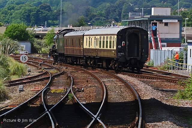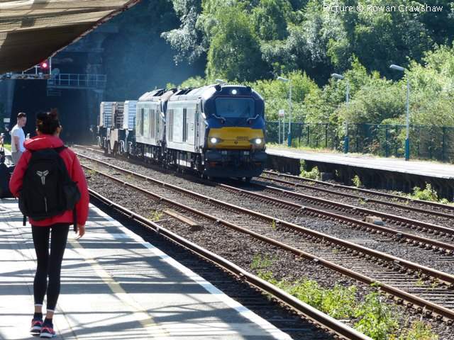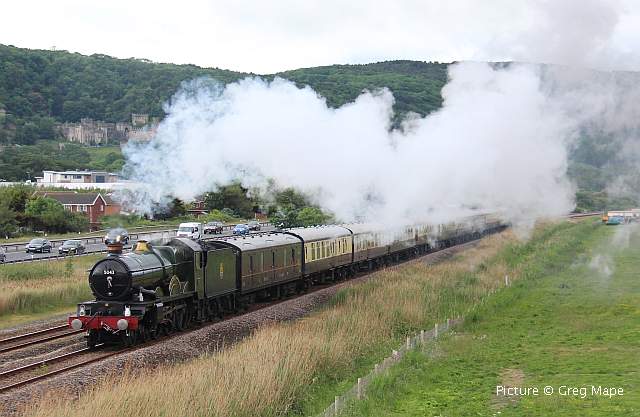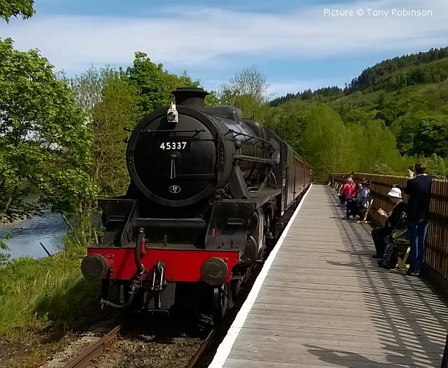 ![]() Two castles: 5043 Earl of Mount Edgcumbe passes Gwrych Castle with the return 'Welsh Dragon' from Blaenau Ffestiniog to Tyseley, 27 May. Picture by Greg Mape. Tales from the KeyboardSlowly getting used to Windows 10, the trauma of having to give up the ancient version of Paint Shop Pro image editor which won't run on 64-bit - and the automatic caption generator can't even distinguish Rhyl from Llandudno Junction (sorry Roly) ... more seriously, what possessed Microsoft to drop the marvellous 'Camera and Scanner Wizard' which let you name a directory to create and add its name with a number to the individual image names when uploading from a camera? Welshpool and Llanfair - by Martin Evans![]() I paid a visit to the Welshpool and Llanfair Railway on 23 May and found original Beyer Peacock loco 823 The Countess in traffic for the day, seen above at Welshpool. ![]() Running round at Llanfair Caereinion. These are interesting times on the railway at present with many improvements destined for Llanfair station hopefully resulting in a new loco shed and revamped facilities for visitors. ![]() At Llanfair Caereinion Locos 12 Joan and 822 The Earl were noted on shed. Great Western Society North West BranchPeter Hanson writes: 'The North West Branch of the Great Western Society, as ceased to exist after 48 and half years. This has been brought about by the Treasurer and the Chairman resigning because of ill health matters, which left just two Committee members with no hope of recruiting further members.' Race Day at Chester - report by Roly High![]() At 08:56 on 27 May, 175 009 arrives at platform 3b (via the mid-platform crossover) at Chester with as the 07:50 from Manchester to Llandudno, whilst 175 110 waits to depart from bay platform 1 with the 08:55 3-car shuttle to Crewe (strengthened to carry the race day crowds). In platform 3, 150 279 awaits the all clear to shunt into the parcels bay after working the 08:23 from Crewe. ![]() Northern 150 110 (left) waits to depart from platform 6 with a the 08:59 to Manchester Piccadilly via Northwich. 508 138 has arrived from Liverpool James Street, which is the temporary terminus during engineering work on the Liverpool 'Loop' tunnel. ![]() 150 110 departs, passing 150 279 as it waits to move into the parcels bay. ![]() 150 267 stabled in the sidings. ![]() 150 150 (great number) departs as the 09:59 to Manchester, while 'Castle' class 4-6-0 Earl of Mount Edgcumbe arrives from Crewe with an excursion from Tyseley (Birmingham) to Blaenau Ffestiniog... ![]() ... heading for platform 3. ![]() The train was scheduled to held at platform 3 for almost half an hour to enable a service train to proceed. ![]() On the rear was class 47 diesel D1755, which would later will take the train up the Conwy Valley branch. Built in 1964 as D1755, over the years this loco has also carried the numbers 47 161, 47 541 and 47 773 - the latter being its current official number. It is part of the Vintage Trains fleet based at Tyseley, having been purchased from West Coast Railways. The Earl on the Coast![]() At Llandudno Junction, the steam loco 5043, water-carrying vehicle and support coach were detached and ran west to Valley turn on the triangle there. Jim Ikin photographed the shortened train departing Llandudno Junction (above). ![]() Passing Conwy Castle (Garry Stroud). ![]() Passing Bangor (Jim Ikin) while returning to Llandudno Junction, arrival at 16:44, to take over the return train to Tyseley. ![]() Meanwhile, the passengers travelled the Conwy Valley line by diesel. Greg Mape took this panoramic view of the train by crossing the river bridge at Tal-y-Cafn, turning right and walking along a long drive. at Blaenau Ffestiniog the diesel locomotive was detached and run round the train, a rare sight these days as most excursions that reach Blaenau have a locomotive at each end. Bala Gala - report by Bob Greenhalgh![]() Sunday 28 May at the Bala Lake Railway gala weekend was an excellent day with well-filled trains all day and super weather. I was driver on George B. The model show and vintage show both seemed well attended. The picture shows Maid Marian crewed by Nick Talbot and Russel Prince heads for Bala as George B (driven by B .Greenhalgh) waits in the loop with its train for Llanuwchllyn. The next Bank Holiday is the Steam Gala from 25 to 28 August celebrating George B's first season back in service with a steam gala where she will be joined by all the line' other engines in steam. A busy timetable is planned, featuring lots of activity, passenger and demonstration freight trains. Until then, there will be trains most days (except some Mondays and Fridays in June): download the PDF timetable. Class 68s on flasks![]() Friday 26 May saw ultra-modern power on the Valley Flask train again on Friday 26 May in the shape of 68 005 Defiant and 68 020 Reliance. Rowan Crawshaw photographed the morning train to Valley passing Bangor as passengers waited for the 09:22 Voyager to London... ![]() ... and Greg Mape captured the return train approaching Colwyn Bay. Corwen Central Funding Approved - by George Jones![]() The Llangollen Railway Trust is pleased to announce it has been successful with the application for Grant Aid from the Welsh Government to assist with the development of the new station at Corwen. The award of £128,000 is in respect of the building of the island platform on the terminal site where the disused railway embankment has been re-engineered to provide for a run-round loop. The grant is provided through the Welsh Government Rural Communities – Rural Development programme 2014-202, which is funded by the European Agricultural Fund for Rural Development and the Welsh Government. Corwen Central Railway Development project leader, Richard Dixon Gough, notes that the total cost of the platform was estimated at £160k and that the availability of the funding from Welsh Government ensures that work on the site continues throughout the summer to provide 