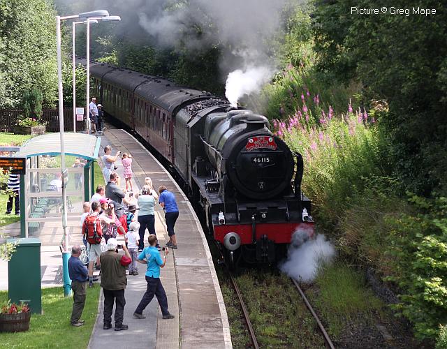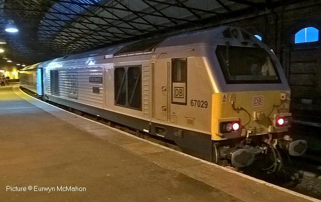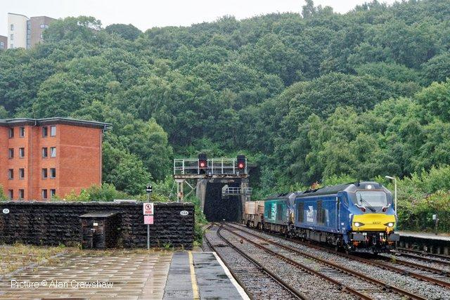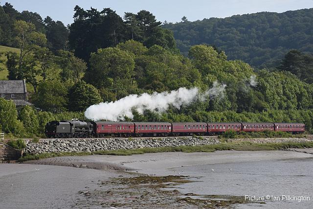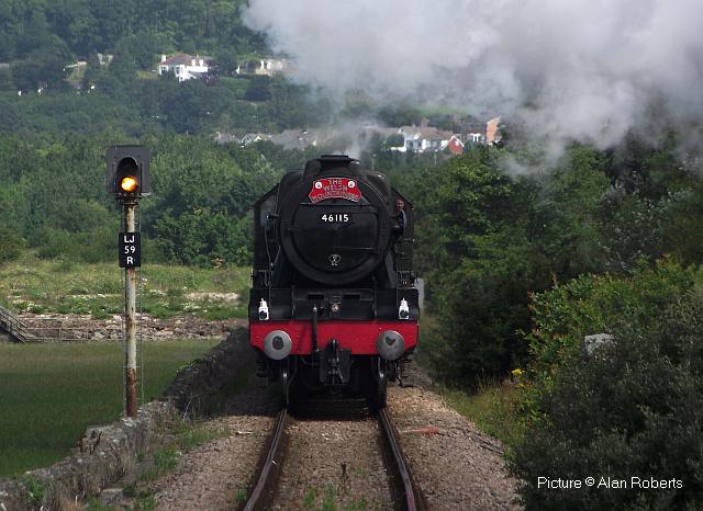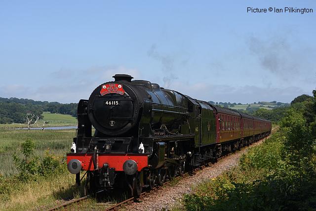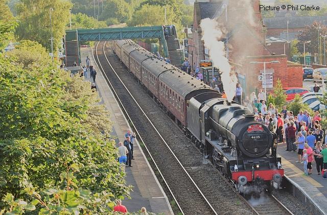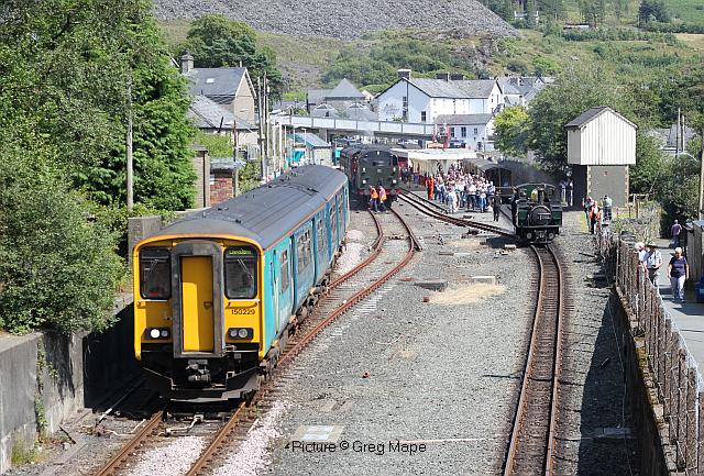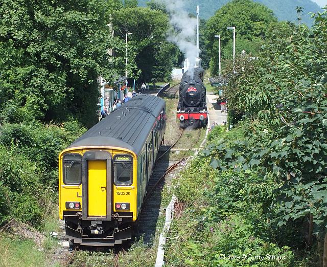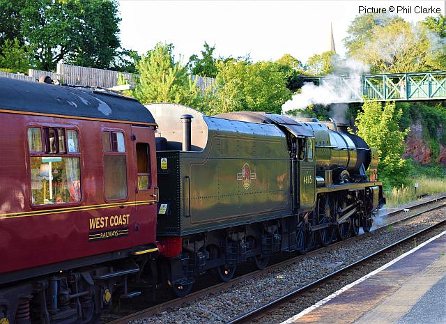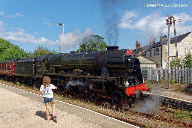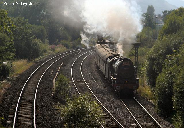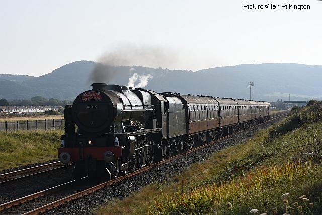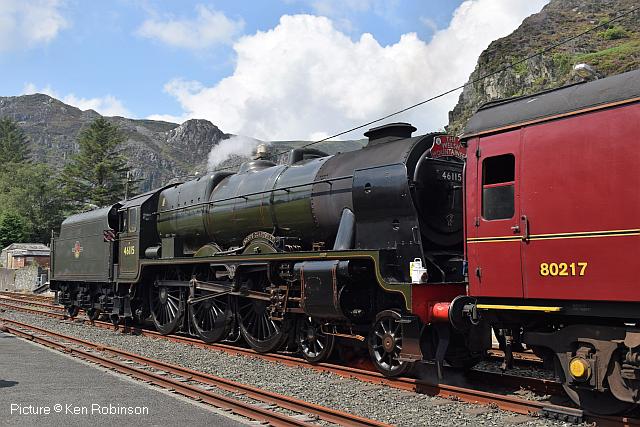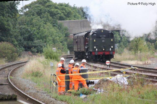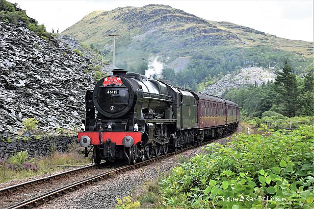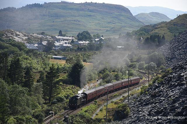 ![]() 158 830 approaches Barmouth with a service from Pwllheli on 20 July. Picture by Eddie Knorn. Diesel loco doings![]() The 09:50 Manchester - Holyhead calls at Llandudno Junction on 27 July, with loco 67 022 in charge (Ken Robinson). ![]() The Cardiff - Holyhead 'WAG Express' was unusually routed into Platform 2 at Holyhead on 28 July with regular loco 67 029 Royal Diamond propelling (Eurwyn McMahon). ![]() A change in the weather for 68 027 leading 68 016 Fearless through Bangor in the rain, watched over by the student flats, with the Crewe - Valley flasks on 26 July (Alan Crawshaw). ![]() 68 016 and 68 027 with one flask at Valley, 17 July (Dave Sallery). ![]() 68 018 Valiant and 68 030 at Llandudno Junction, 31 July. ![]() Now a Freightliner working, 6M86 Margam - Dee Marsh Junction steel train on 24 July passes Wrexham General ... ![]() ... and Gwersyllt. Pictures by Paul Shannon. Paul writes: ' This change of operator is believed to be a consequence of DB Cargo closing its Hereford signing-on point, but it's possible the traffic could revert to DB if they find a way of covering these trains from other signing-on points.' Welsh Mountaineer![]() Tuesday 25 July saw the only run this year of the Railway Touring Company's Preston - Blaenau Ffestiniog 'Welsh Mountaineer' excursion. As usual, the locomotive - 46115 Scots Guardsman - hauled the train chimney-first from Preston to Chester, where it was run round to proceed tender-first to Llandudno Junction in order to be the 'right' way round for the climb of the Conwy Valley line. Running tender-first on a main line with a high-sided tender bocking the view must be an ordeal for the loco crew who have to lean out to observe signals. Roly High's picture above shows the train approaching Rhyl past a small detachment of the Network Rail 'Orange Army'. For those who missed a late update of last issue, the reason why last week's returning 'North Wales Coast Express' was held for so long at Rhyl is that Prestatyn signalbox closes at 18:00 on Sundays and Talacre at 19:00, creating a very long section: the train had to wait until the delayed train ahead passed Holywell Junction before it could proceed. Thanks to Alan Roberts for this explanation. ![]() Running round the train at Llandudno Junction (Garry Stroud). ![]() Near Glan Conwy (Alan Roberts). ![]() Near Dolgarrog (Ian Pilkington). ![]() Dolgarrog station, from behind the crossing gates (Garry Stroud). The station was closed on 2 November 1964 during the 'Beeching' era but after protests was reopened on 14 June 1965. ![]() 150 229 arrives at North Llanrwst with the 11:35 Blaenau to Llandudno service, as 46115 waits in the loop (Garry Stroud). ![]() Scots Guardsman has the attention of a local schoolgirl as it sets off from North Llanrwst, having waited in the loop for the northbound service train to pass (Alan Crawshaw). ![]() Near Pont-y-Pant (Ian Pilkington). ![]() On the approach to Blaenau Ffestiniog, where fellow photographers had cleared some vegetation prior to its arrival (Ken Robinson). ![]() Dolwyddelan station (Greg Mape). ![]() At the station, after the sun had decided to make an appearance (Ken Robinson). ![]() Blaenau Ffestiniog, as 150 229 heads off with the 14:57 to Llandudno and the Ffestiniog loco runs round its train while the special waits in the loop (Greg Mape). ![]() Leaving Blaenau Ffestiniog (Ian Pilkington). ![]() Skirting the Conwy Estuary near Tal-y-Cafn (Ian Pilkington). ![]() Approaching Pensarn Bridge by Llandudno Junction (Brian Jones). ![]() Passing the Belgrano Crossing, Pensarn (Ian Pilkington). ![]() Water stop at Frodsham (Phil Clarke). ![]() Departing Frodsham (Phil Clarke). Three Double Fairlies - by Ian Pilkington![]() While in the area for the 'Welsh Mountaineer' Ian was able to photograph all three of the Ffestiniog Railway's double Fairlie locos. Above, Merddin Emrys (built 1879) leaves Tan-y-Grisiau with the 1340 Blaenau-Portmadog. ![]() Earl of Merioneth (built 1979) heads the 13:35 Porthmadog-Blaenau near Tan-y-Grisiau ![]() David Lloyd George (built 1992) heads the 14:30 Porthmadog-Blaenau near Tan-y-Grisiau. Halton Curve special![]() 29 July was the date for the annual extended Chester - Runcorn Halton Curve service for stations to Liverpool South Parkway. This “Parliamentary Train” is expected to be the last with a proper service commencing in December 2018. Northern provided 156 468 for the working which carried a good number of enthusiasts and interested parties along with a number of travelling passengers, not just there for the ride. Above: The departure screen at Chester Railway Station, with Facebook link (Charles Allen). ![]() Ready for departure (George Jones). ![]() Liverpool South Parkway shown as the destination (Charles Allen). [What other Northern trains terminate there?] North Cheshire Rail Users Group (NCRUG) marketing material was distributed on the train (Charles Allen). ![]() The River Weaver as viewed from the train with M56 in the background (George Jones). ![]() On the Curve with the view of the roundabout on the A557 (George Jones). ![]() The view of the M56 from the rail overbridge (George Jones). ![]() Liverpool South Parkway: journey's end (Charles Allen). This may well be the last run of this eccentric summer one-way saturdays-only train, as work has started on preparing the line for a proper two-way service, with a target date of December 2018. We understand that the schedule for the main works is: Frodsham Junction Crossover – November 2017; Frodsham Junction Signalling - February 2018; Halton Junction Crossover – April 2018; Halton Junction Signalling – early May 2018; Halton Junction overhead wiring – late May 2018. > The NCRUG committee and VIPs at Parkway (Charles Allen). ![]() Obvious at Liverpool South Parkway is work to extend platform 4 towards Speke Junction in preparation for Virgin Pendolinos being terminated here during the initial period when Lime Street station will be closed for thre