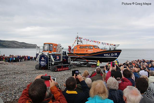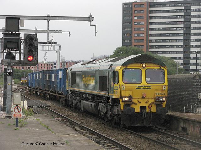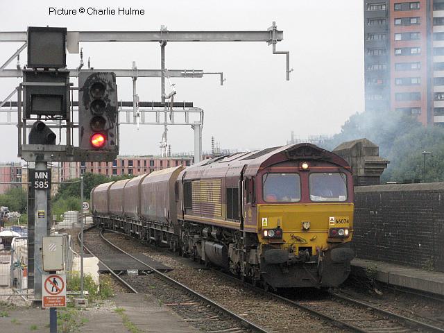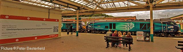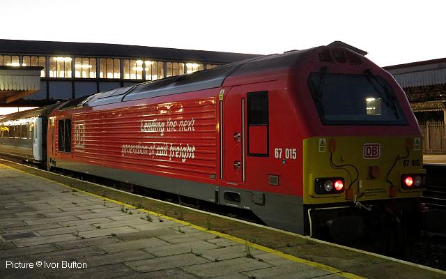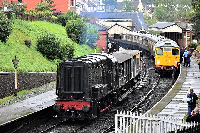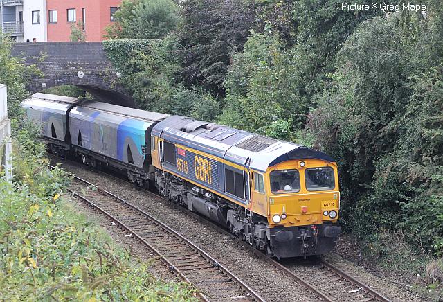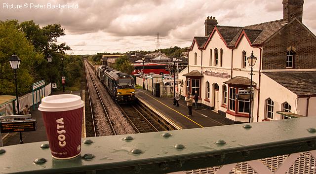 ![]() 67 015 at Rhyl 06:38 Friday 22 September with train 1V91, Holyhead - Cardiff Premier Express. Picture by Ivor Bufton. Llangollen Diesel Weekend![]() The Llangollen Railway diesel gala, as seen on 23 September Above, Brush Type 4 diesel 1566 entering the well kept-station at Glyndyfrdwy with its first working - the 10:20 from Llangollen. Picture by Ken Robinson, who writes: 'The weather wasn't too good, but it was a great day out! The diesel group work very hard to get these things going. I believe 1566 had problems later on in the day which had been rectified by Sunday morning.' ![]() Llangollen station in the rain with English Electric shunter 13065 departing on the first of three brake van trips into Pentrefelin siding where participants got a different lineside view of the passing service trains. On the right D5310 is having problems with the first coach which had to be detached resulting in a 20-minute delay to the 12:55 departure (Ken Robinson). ![]() English Electric Type 3 6940 at the rear of the delayed 13:36 from Carrog to Corwen (Ken Robinson). ![]() Three main line diesel locos were in action, plus the class 104 Railcar, to offer a frequent service along the line. With top-and-tail running to Corwen East the loco change-overs were undertaken at Carrog. Starting things off at 09:45 the class 26 assisted the 104 to Carrog where the loco came off to await the next train. Above, the view from the DMU (George Jones). ![]() D5310 unhooks at Carrog (George Jones). ![]() The second train was headed by the class 47 1566 and became the most powerful locomotive to bring a service passenger train to Corwen, with the class 26 on the rear (George Jones). ![]() George Jones pictured 1566's data panel and writes: 'With a Tractive Effort of 60,000 lb, D1566 was the most powerful locomotive to haul a passenger service train into Corwen (discounting previous test runs). An Ian Allan ABC gives 62,000 lb. It's challenging to compare the power of diesels vs steam. but in terms if Tractive Effort the 47 beats all comers according to published figures for the likes of 'Black 5', West Country, 28XXs 2-8-0s - open for debate ... so far I have found no one who disagrees. [Watch this space.- Ed.] 'The third train was headed by the class 37 with the class 47 on the rear and as such must have been the most powerful combination of locos on a train between Corwen and Carrog. Nothing like this in BR days prior to closure. Club 55Just a reminder that the Arriva 'Club 55' offer for passengers aged over 55 is open until 1 November. Subject to various conditions, it's possible to travel to the far-flung outposts of the Arriva Trains Wales network for as little as £26. Traveller's Tales welcome. TransPennine Express have a similar, but more complex, offer. Llandudno Lifeboat![]() Enormous crowds gathered outside the new lifeboat station at Llandudno on Sunday 24 September to see the arrival of the new £2.2million Shannon class lifeboat William F Yates. ![]() Above the old lifeboat Andy Pearce and William F Yates pass each other (Jim Ikin). ![]() The lifeboat trailer has a turntable on it. Above, we see it turning around the boat, which arrives forwards, gets hauled onto the trailer then turned ready for its next launch (Greg Mape). The Royal National Lifeboat Institution always welcomes donations. We have texted RNLI to 70300 to donate £5, why not follow suit? Peter Basterfield's view![]() Arriva trains Promotion of 'The Big Ticket' re-located to Bangor after it's official opening ceremony at Llanfair PG. ![]() 18 September's flask train (6K41) at Llanfair PG - between a cup and the station with the longest name. Locomotives 68 033 and 68 002 Intrepid. ![]() 20 September, and 6K41 at Wig Crossing with 68 002 now up-front and 68 033 as the train loco. ![]() 22 September's 6D43 at Malltraeth's 19-arch viaduct with 68 033 upfront and 68 002 again. Picture desk![]() 66 710 Phil Packer on a loaded Drax-bound biomass service approaching Altrincham Station on 6 September (Greg Mape). Major Phil Packer MBE is an army officer who was seriously injured while on operational duty in Basra in February 2008. He is noted for gruelling physical challenges to raise money for his charity British Inspiration Trust, which aims to support young people facing adversity. ![]() Track inspection unit 950 001 visited he Conwy Valley line on 19 September, and - we understand - found a fault inside Ffestiniog tunnel. This caused the 13:08 to Blaenau to terminate at and restart from North Llanrwst. The test unit left Blaenau at 16:00 after the fault in the tunnel was fixed, it should have left at 12:09. Dave Sallery took the picture at Blaenau Ffestiniog. ![]() Salford Central station in late afternoon can be a good place to see some freight trains. The three pictures here passed in a 20-minute period. 66 605 (above) was working a new flow of stone from Tunstead to Brindle Heath (Pendleton). ![]() A 'binliner' train to and from Runcorn Folly Lane serves both Brindle Heath and Dean Lane refuse terminals. Half the empty containers on their wagons are left at Bridge Heath, the loco then taking the remainder to Dean Lane, an interesting location as the Network Rail siding runs alongside the single-track Metrolink line to Rochdale through Newton Heath station. 66 523 is on this later duty. In the background, the delayed 15:24 to Peak Forest stone empties awaits a path at the exit from Hope Street sidings. ![]() After waiting for a passenger service, 66 074 emerges from Hope Street over the crossover to pass through Victoria station, then via Guide Bridge, Stockport, Hazel Grove and Chinley to Peak Forest. ![]() On the 'Liverpool line' which passes behind Salford Central without any platforms (yet) 319 450 is see from behind as it passes on a Liverpool - Manchester Victoria service. The tracks here have been relocated slightly to allow for the new 'Ordsall Chord' line. Most of the 319s transferred to Northern and the 319/3 sub-class, which