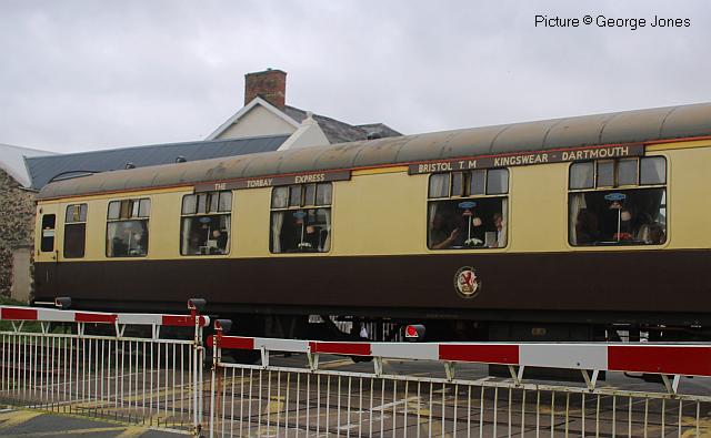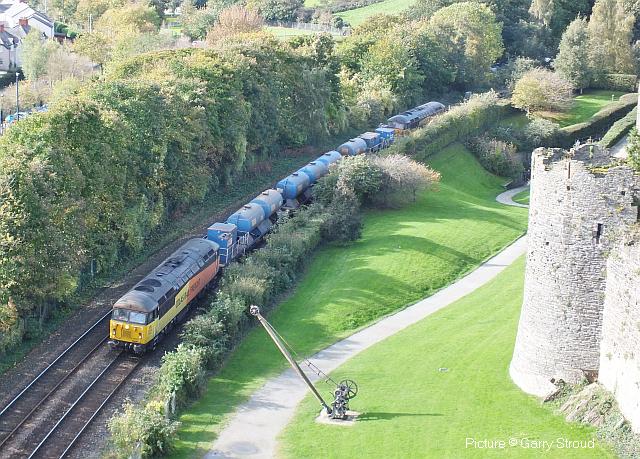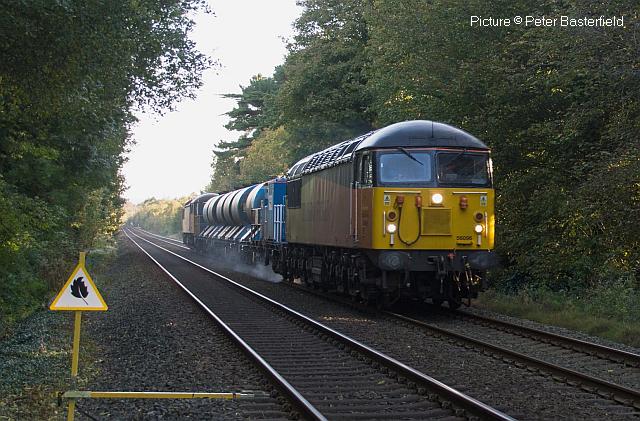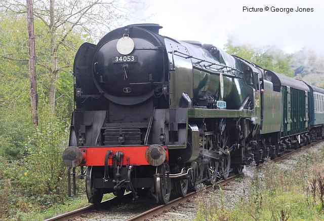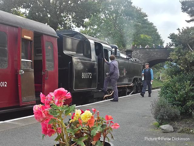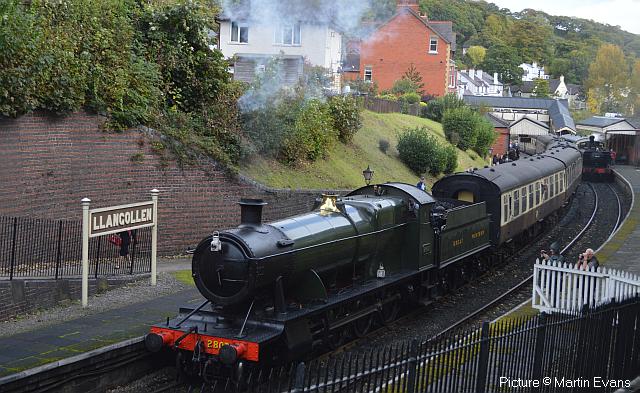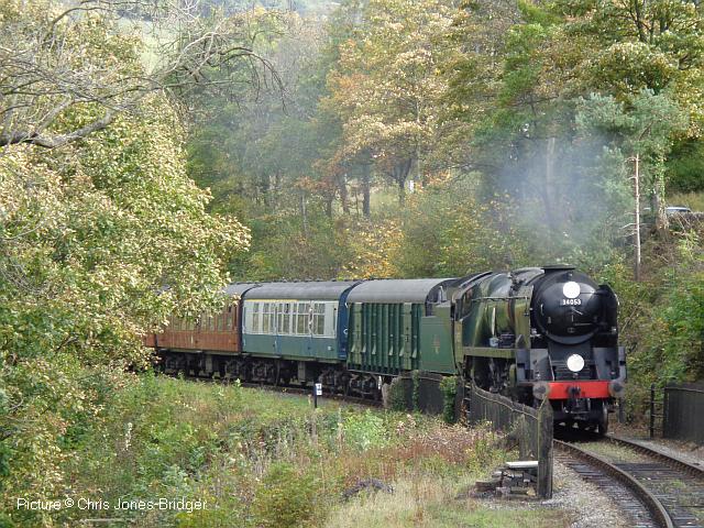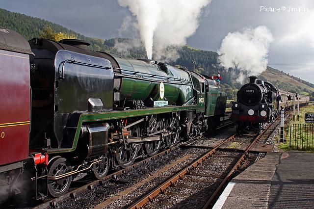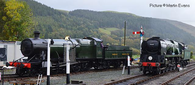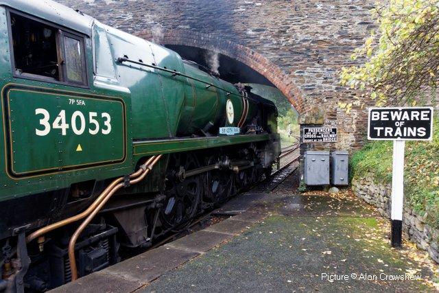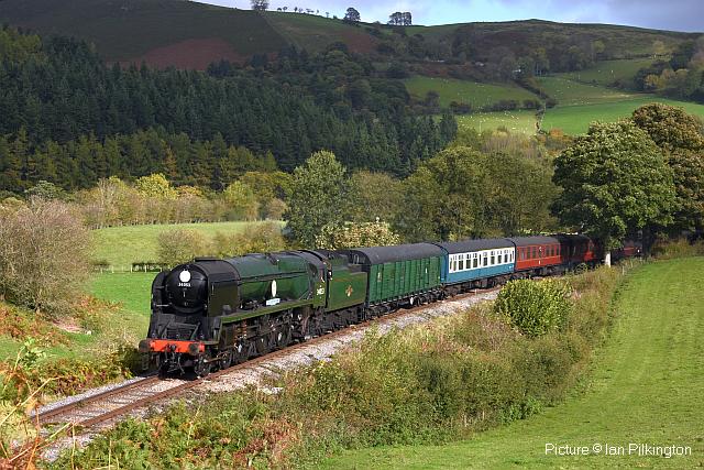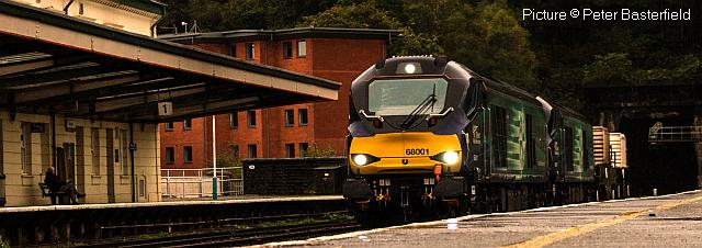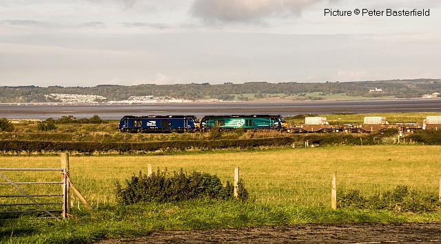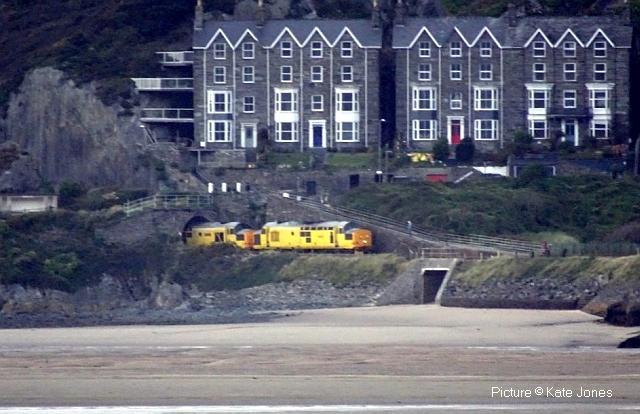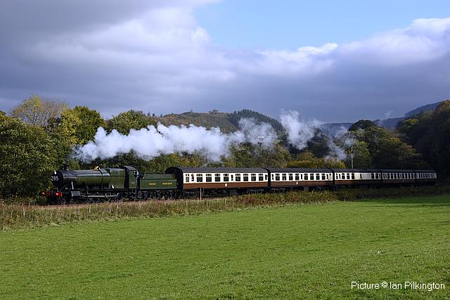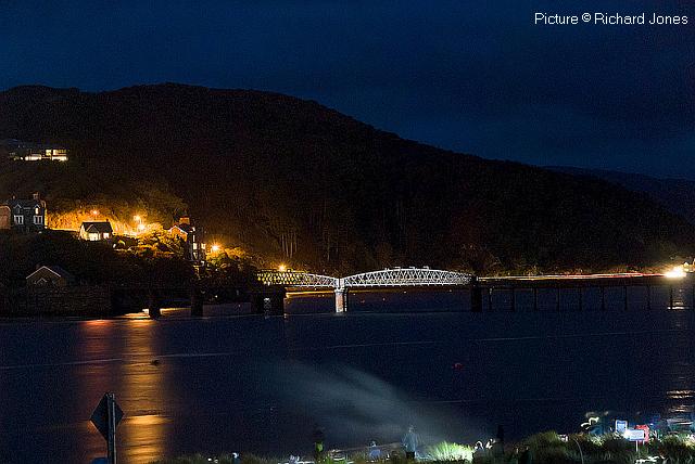 ![]() On Saturday 14 October 56 105, with 56 096 at the rear passing Conwy town walls and Castle with the return Holyhead to Shrewsbury Rail Head Treatment Train. Picture by Garry Stroud. Cambrian Corner Barmouth 150 special![]() 2017 marks the 150th anniversary of the opening of Barmouth Bridge, the longest wooden viaduct in the country. Pathfinder Tours celebrated this by organising a loco-hauled excursion with the traditional name 'The Cambrian Coast Express' from Bristol at Pwllheli and back on 10 October. 67 030 hauled the train to Shrewsbury where 97 304 John Tiley and 97 303 took over for the run over the ERTMS-signalled Cambrian line where only specially equipped traction is allowed. We pick up the train approaching Morfa Mawddach, as seen from Ian Wright's hillside workplace. ![]() On the causeway approaching Barmouth bridge (Ian Wright). ![]() Crossing the bridge (Kate Jones). ![]() The classic shot of the train leaving the bridge with the Cader Idris Massif behind (Richard Jones). ![]() John Rawlings scaled the heights of Moel y Gest to capture the train approaching Porthmadog, with the new by-pass road in view. ![]() Approaching Porthmadog (John Rawlings). ![]() The view from the Welsh Highland Heritage Railway car park. Picture by George Jones who writes: ' Reported in section from Harlech at 13:50 it could be seen stopped way down the line towards Minffordd whilst the Up service train worked by 158 820 ran into the station and was held in the loop. It came forward at 14:00, reported 2 minutes late on Real Time Trains. Overcast weather didn't do much for the pictures but at least the rain held off. The last coach just cleared the crossing and the length of the train caused a sizeable road traffic tail back.' ![]() Portrait of the locomotives (George Jones). Some might have expected the two West Coast Railway Class 37s that have been fitted for ERTMS to be in action, but Pathfinder Tours use DB Cargo as traction provider rather than West Coast, whose two locos have yet to work any revenue-earning trains over the Cambrian as far as we know. ![]() Porthmadog station (John Rawlings). ![]() The last coach, still carrying the roof-boards for the more usual working with this set of carriages, the Torbay Express. The chocolate-and cream coaches are quite authentic for the Cambrian, as the British Railways version of the 'CCE' from Paddington did sport this heritage livery for a while, although generally only a portion of the the 1950s version served the Pwllheli line, another portion running to Aberystwyth. ![]() Passing the site of the former Black Rock Halt (Ken Robinson). ![]() The return train, now with 97 303 leading, approaching Talsarnau station, having accelerated hard to around 50mph (Ken Robinson). ![]() Emerging from the short tunnel between Barmouth station and the bridge (Kate Jones). Above the locos can be seen the steep path which forms the link for pedestrians and cyclists to and from the pathway on the bridge. This emerges on to the busy road at a point where there is no pavement on that side, and very restricted view of approaching traffic, especially when approaching from Barmouth town centre. Since 2013 the Barmouth Viaduct Action Group has been campaigning for a new level, safe path which would cross under the railway using the existing bridge seen in the picture, and run around the foreshore to pass under the concrete viaduct opposite the 'Last Inn.' Anyone having watch the Group's video might wonder why this wasn't done years ago. ![]() Approaching Morfa Mawddach (Kate Jones). ![]() Newtown at 20:11 (Richard Jones). ![]() Back at Barmouth on Saturday 14 October, with pictures by Richard Jones, who writes 'For the anniversary weekend Network Rail had installed LEDs on the inside of the two arched spans. It didn't show the outline of the bridge; It would've been better if they'd have been run across the top of both, to show the arched nature of those structures. Instead, it just looked like fairy lights on the inside of it. It was also spotlit from the headland, but that light was very dim, barely brighter than torchlight. 'It's a pity it wasn't lit from Penrhyn Point. I'm sure the Fairbourne Railway would have obliged. They ran shuttle trains to the point, and had two locos in steam. When the 158 crossed on the 2J23 16:09 Birmingham International to Pwllheli, its driver gave the horn plenty of use, and was answered back by one of the Fairbourne steam locos. It must have been a spectacle for that unit's passengers. 'A laser was projecting scrolling text and graphics on a rock face above the harbour, with details about the bridge, and in both Welsh and English. It also projected outline images of a steam locos, 158s, an EMU with pantograph up, the Network Rail logo, and the Arriva Trains Wales logo. That was particularly well-designed. Later in the evening it displayed an animated journey as it filmed from the front of a train as it ran down the tracks, including entering and exiting a tunnel. I imagine that these are standard sequences that can be downloaded and run on any projecting laser display.' ![]() The Firework Display. Many more of Richard's pictures on his Flickr site. Peter Basterfield's view![]() 9 October's 6D43 Crewe - Valley flasks at LLanfairfechan with 68 032 and 68 017 Hornet. ![]() The Rail Head Treatment Train in action at Glan-y-Mor Elias crossing on 9 October - with temporary sign warning to drivers. ![]() Wednesday 11 October, and flasks in the rain at Bangor with 68001 and 68 017. Llangollen's 'Along SW Lines' GalaFriday 13 October ![]() Bulleid Light Pacific 34053 Sir Keith Park waits to depart Llangollen with the 9.30am service to Corwen (Martin Evans). ![]() GW 2-8-0 2807 departs from Llangollen with the 1.15pm service for Corwen (Martin Evans). ![]() Pannier tank 6430 arriving at Glyndyfrdwy with the auto coach (Martin Evans). ![]() The two visiting locomotives 34053 and 2807 are captured at Carrog (Martin Evans). ![]() 6430 & auto tra