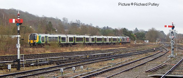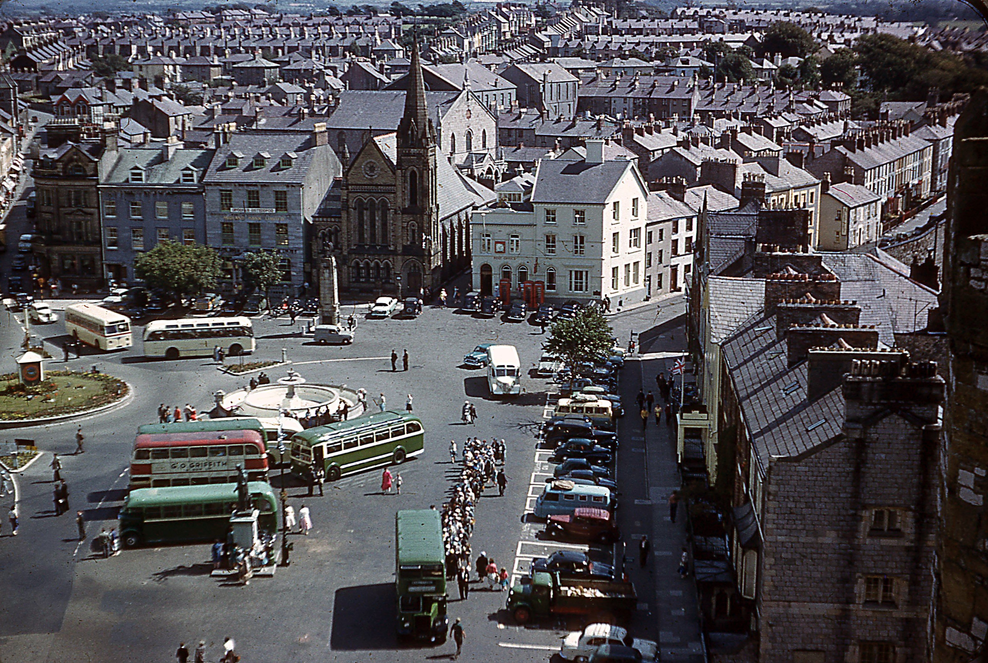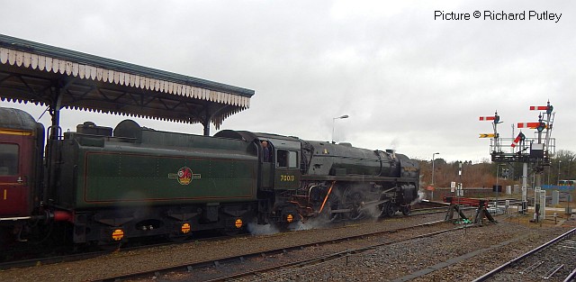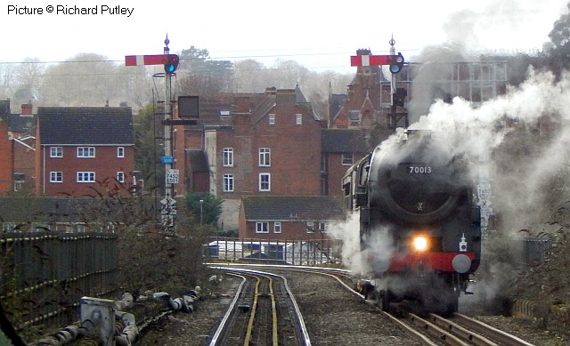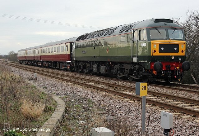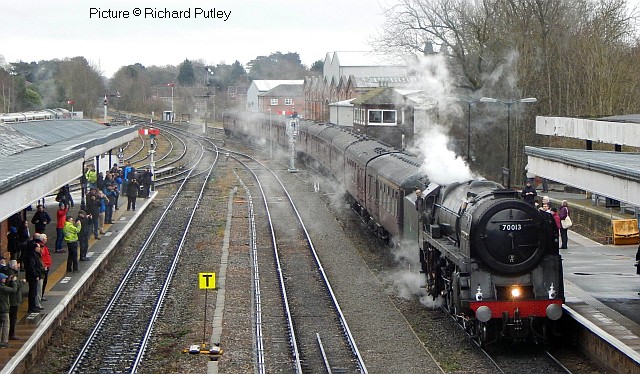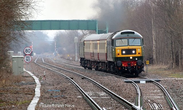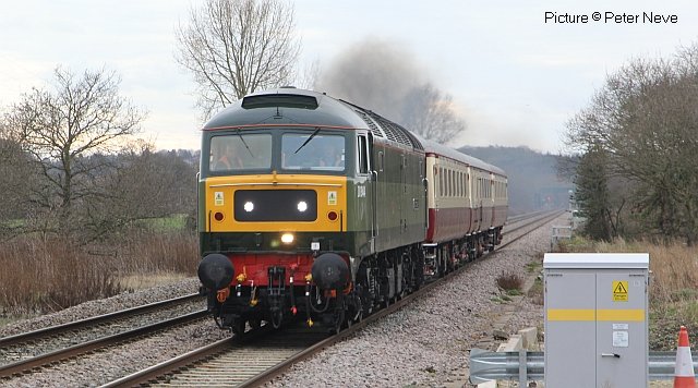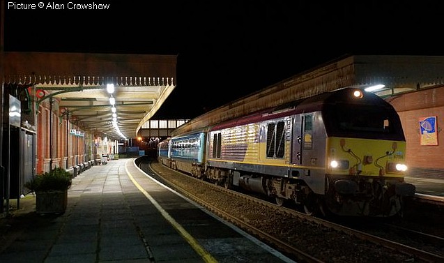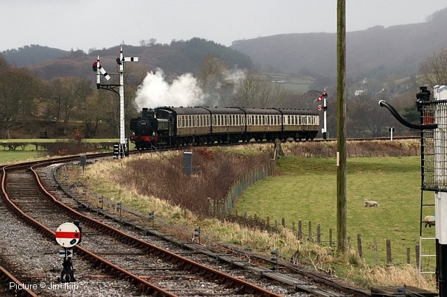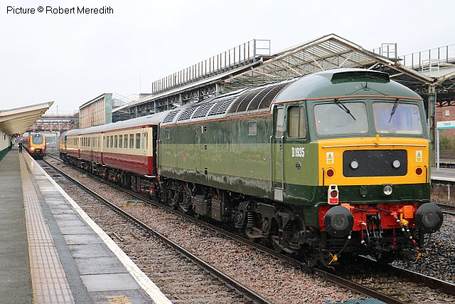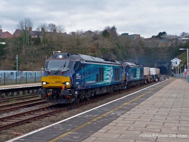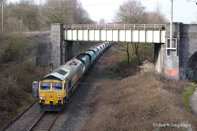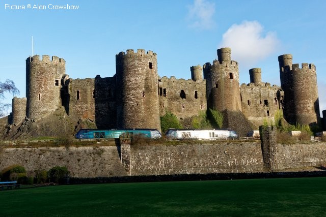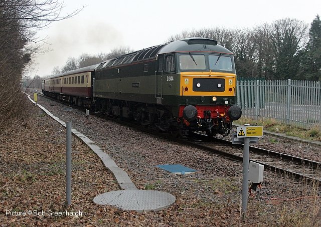 ![]() 67 016 calls at Colwyn Bay with the Holyhead - Cardiff Premier Express, 12 February. Picture by Alan Crawshaw. Flask scenes![]() 68 033 (to be named Courageous) and 68 034 (to be named Victorious) passes Bangor with the 6K41 Valley to Crewe flasks on 5 February (Rowan Crawshaw). ![]() 68 018 Vigilant and 68 017 Hornet passing Conwy Castle with the flasks for Valley on the morning of 12 February. Both are in DRS livery - the sun is reflecting off 017 (Alan Crawshaw). Locomotive Services in action![]() On 6 February, D1944 passes Chester station with a Locomotive Services route-learning run from Crewe to Bescot ... ![]() ... with sister loco D1935 on the rear (Robert Meredith). ![]() With snow flurries in the air and freezing temperatures, Class 47 D1944 Craftsman restarts after a signal check at Rossett Junction on Tuesday 6 February. The train was following closely behind a southbound service train, which was still in the single line section between Rossett and Wrexham when it reached the junction. Picture by Peter Neve. ![]() Southbound at Rossett, 6 February (Bob Greenhalgh). Sister loco D1935 is at the rear of the train. The sign reads 'Caution cess path' - presumably because there is no surfaced path for staff alongside the line at this point. The function of the other post is a mystery. ![]() Northbound at Green Lane on the following day, 7 February, now running solo (Bob Greenhalgh) ![]() Broad Oak crossing, 7 February (Peter Neve). Frodsham developmentsThe signals and points at Frodsham Junction signalbox were taken out of service over the weekend of 10-11 February, the block section is, for the time being, Helsby Junction to Norton. All the signals will be replaced by new colour-light ones, which are now in position but 'bagged over' in preparation for future two-way working of the line to Halton Junction. The signalbox will re-open on 19 February to control the new signals. By next year it is hoped that a regular train service will use this line, connecting Chester with Liverpool. Nostalgia Corner![]() 47 532 on the midday boat train to Holyhead overtakes 47 284 on an engineers train at Rhyl on 30 April 1984 (Dave Sallery). ![]() A battered postcard souvenir of a memorable stay at Penmaenmawr Youth Hostel in the 1980s. Originally built as a convalescent home for a company or organisation (can anyone remember which?) there is no trace of it today; it has been replaced by a sewage works. Nor is there any trace of the Class 45-hauled Freightliners which passed by during our stay. ![]() Ken Millward sends us this photograph taken by his uncle Gwilym Robinson from Caernarfon Castle, possibly in the early 1960s. Entering the square at the top left is one of the ten North Western Road Car Company Leyland Tiger Cubs with Willowbrook bodies (776 - 775) which were delivered in 1959 with coach seating and cream livery for long-distance services. Perhaps it is working route X74 Manchester - Pwllheli. Otherwise, Crosville vehicles predominate, along with a white Bedford OB of Whiteways of Waunfawr, a company for which the late Bill Rear, railway author and contributor to this site, once worked as a part-time driver. Can anyone add more bus identification? A larger version might help. Freightliner - clarification![]() Thanks to everyone who has written about the above picture by Greg Mape in the last issue, in particular the wonky caption for which the editor was solely responsible. Firstly, the train seen passing below the Styal line on 5 February is the Cheshire Lines Committee line from Glazebrook to Godley Junction, not a Midland Railway one as we claimed. The train would soon join the former Midland Main Line at Cheadle Heath, although there is no actual junction there now as the lines from Manchester Central and Stockport Tiviot Dale to Cheadle Heath no longer exist, although part of the Midland line from Manchester has been revived as Metrolink. Secondly, the train cannot be from Garston, as that is served by trains of Freightliner's box wagons. Most likely 66 613 is working train 6H02, empty hoppers from Lostock Works to Tunstead, a flow which has been in the hands of EWS / DB since privatisation, but appears to have been recently taken over by Freightliner, using their own wagons. We can recommend the 8A Rail website for information about trains on this line, and others in the area. Llangollen re-starts - report by Jim Ikin![]() The Llangollen Railway's new season began on Saturday 10 February with a 'one engine in steam' timetable; that engine being pannier tank 6430, seen above drifting into Carrog with the second train of the day ... ![]() ... and arriving at Carrog. The signalbox is presumably 'switched out' ![]() On the return trip approaching Berwyn ... ![]() ... whilst canoeists appear to be expecting high water on the side of the Horseshoe Falls! ![]() Down at Llangollen for the departure of the last train of the day. Note: There was an error in our item on bus travel in the last issue. It should have read: A route T3 departure departs Llangollen at 16:35 - arriving Ruabon 16:50. The next available train is the 16:56 for Holyhead, or an hour's wait for the next southbound train. Corwen Central progress - report by George Jones![]() The winter's weather continues to frustrate major works on the Llangollen Railway's Corwen Central station site but a lot of smaller jobs continue to be tackled by the volunteers to progress the platform construction.The west end of platform 2 has been formalised and a start made on the installation of heritage style spear fencing - this is new build material rather than recovered fencing. This will secure access to the mobility impaired ramp which is under construction from what will be the stub end of platform 1. Them muddy state of the works site is evident. ![]() As seen from Green Lane in Corwen, the stop block at the end of the headshunt is now fully aligned and fenced in on the retaining wall, with a range of plants bedded in to eventu